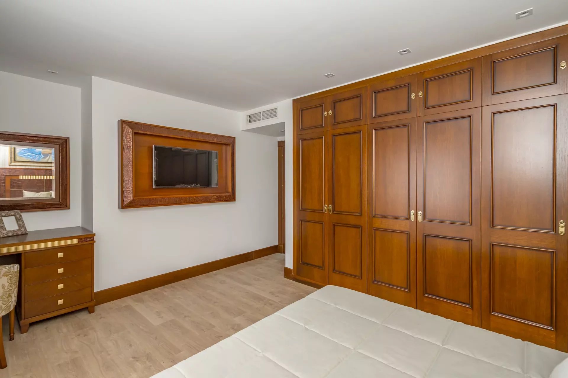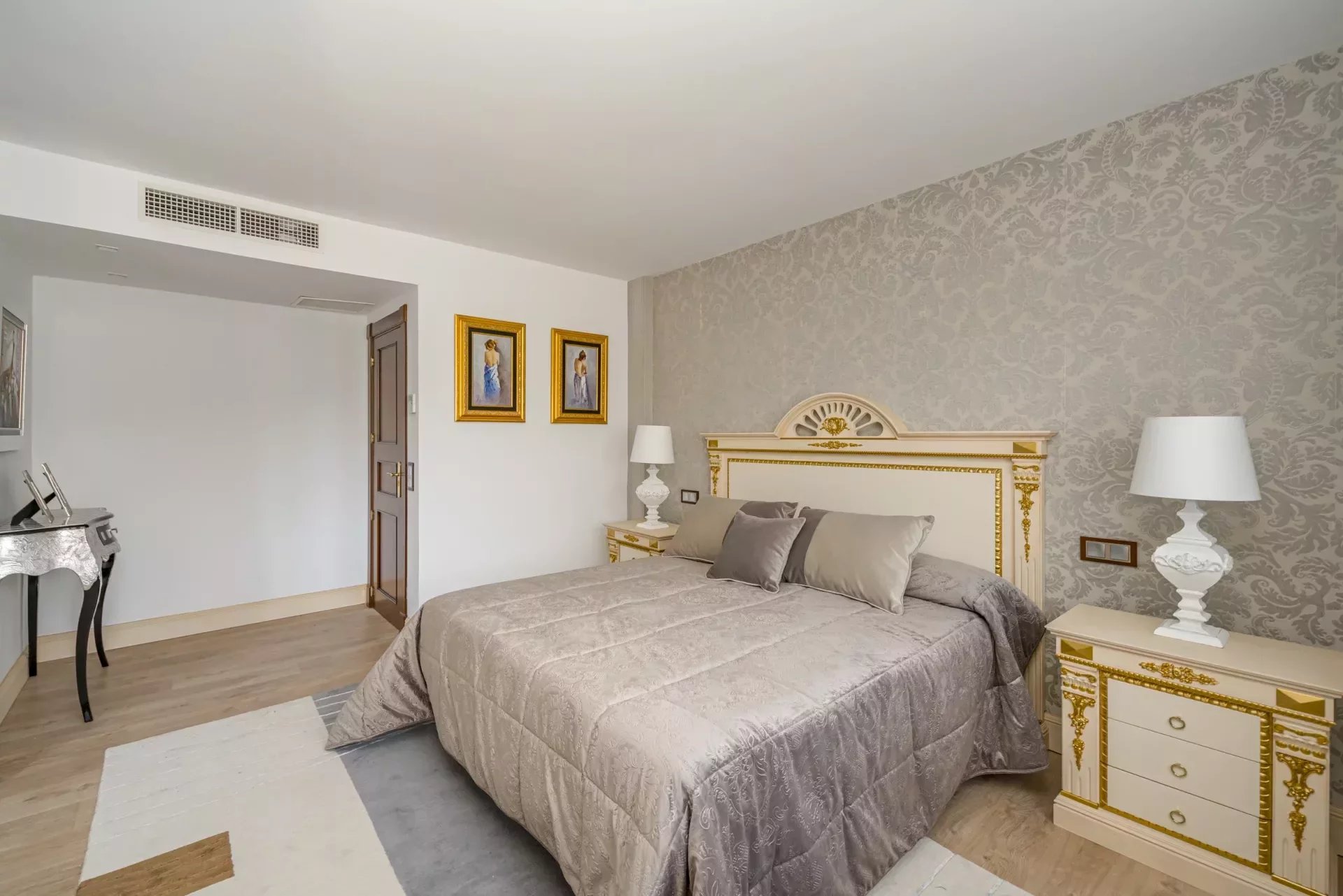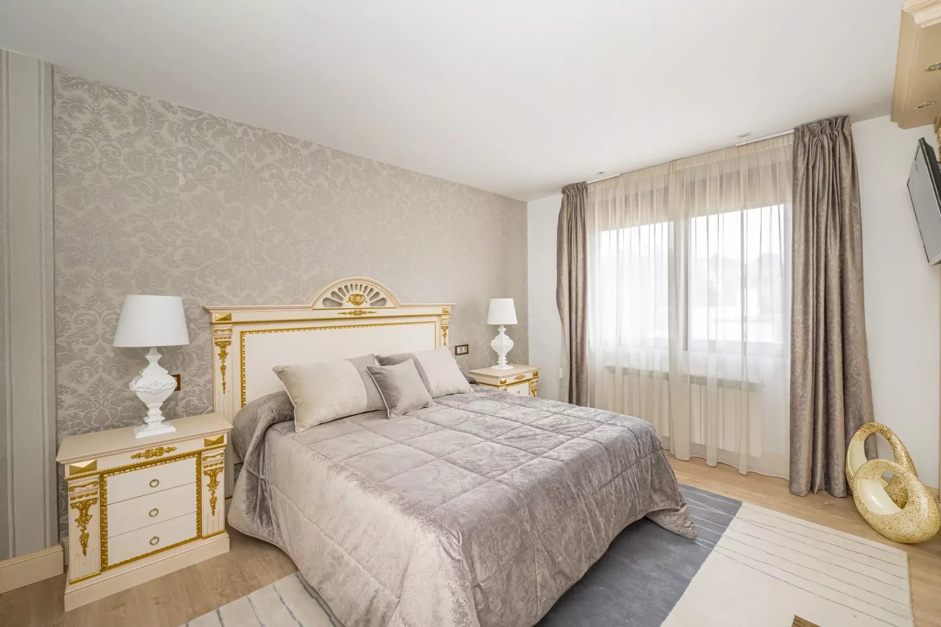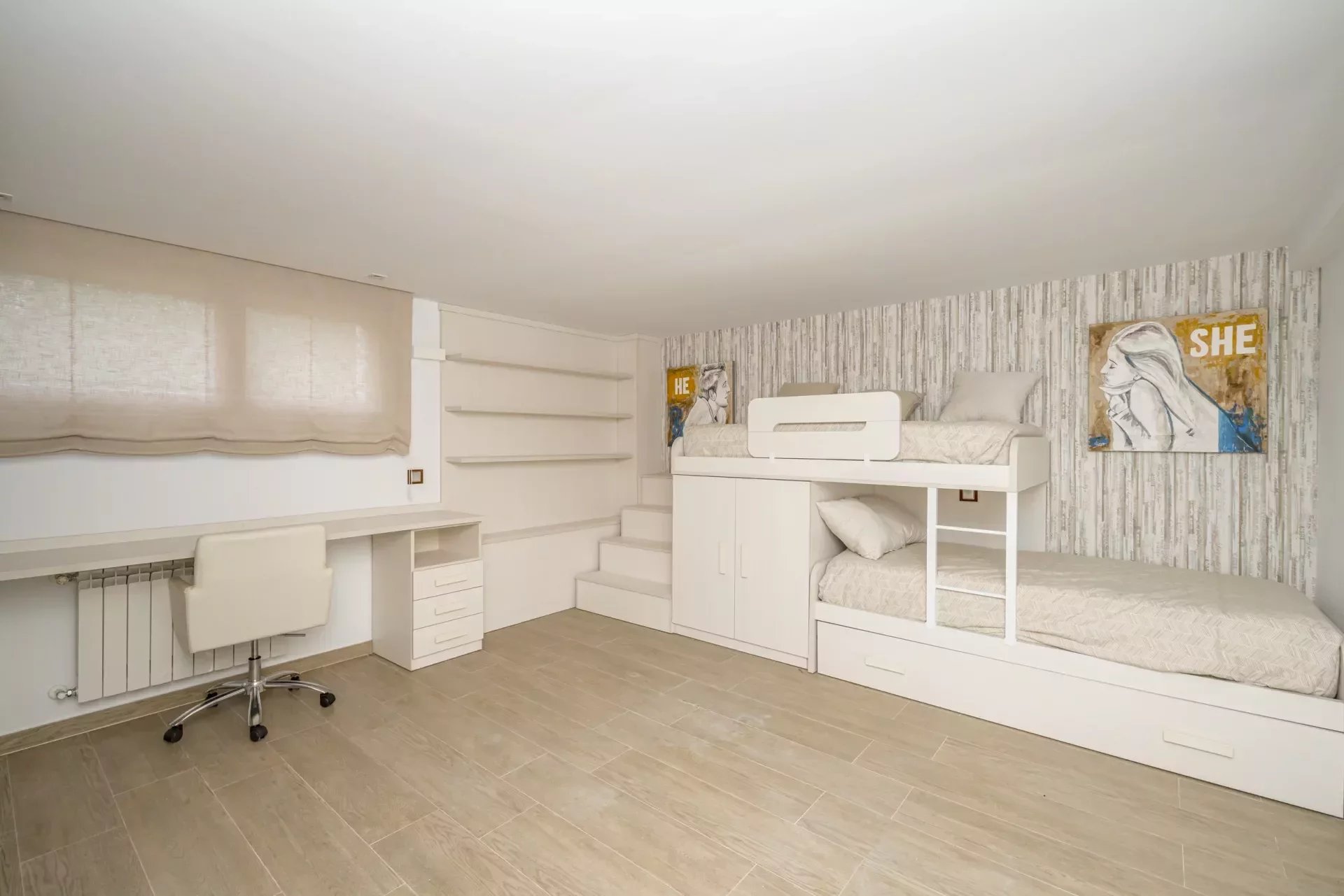 On the upper floor, going up the stairs, bright thanks to its large windows, we find a hall that distributes 3 bedrooms. The master bedroom, with dressing room, vanity area and bathroom with jacuzzi bath, as well as double washbasin and a shower tray.