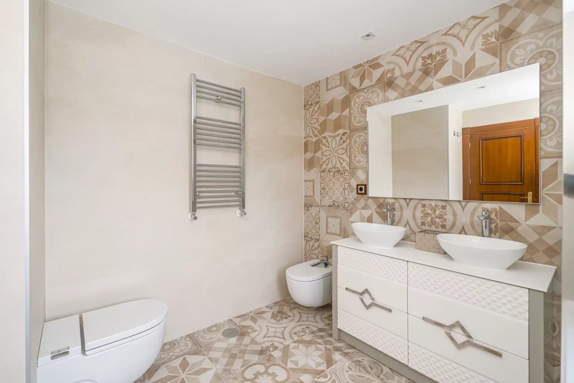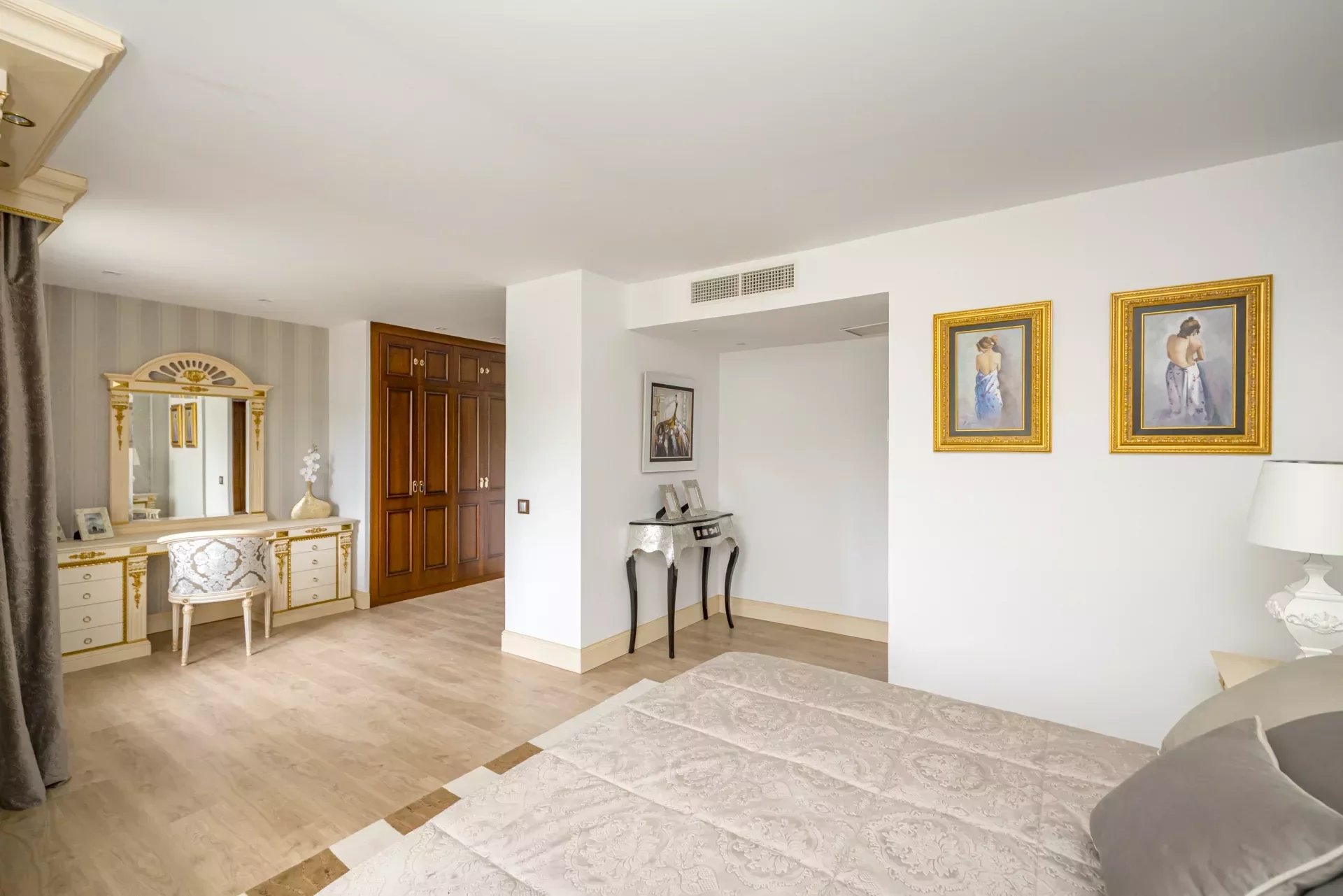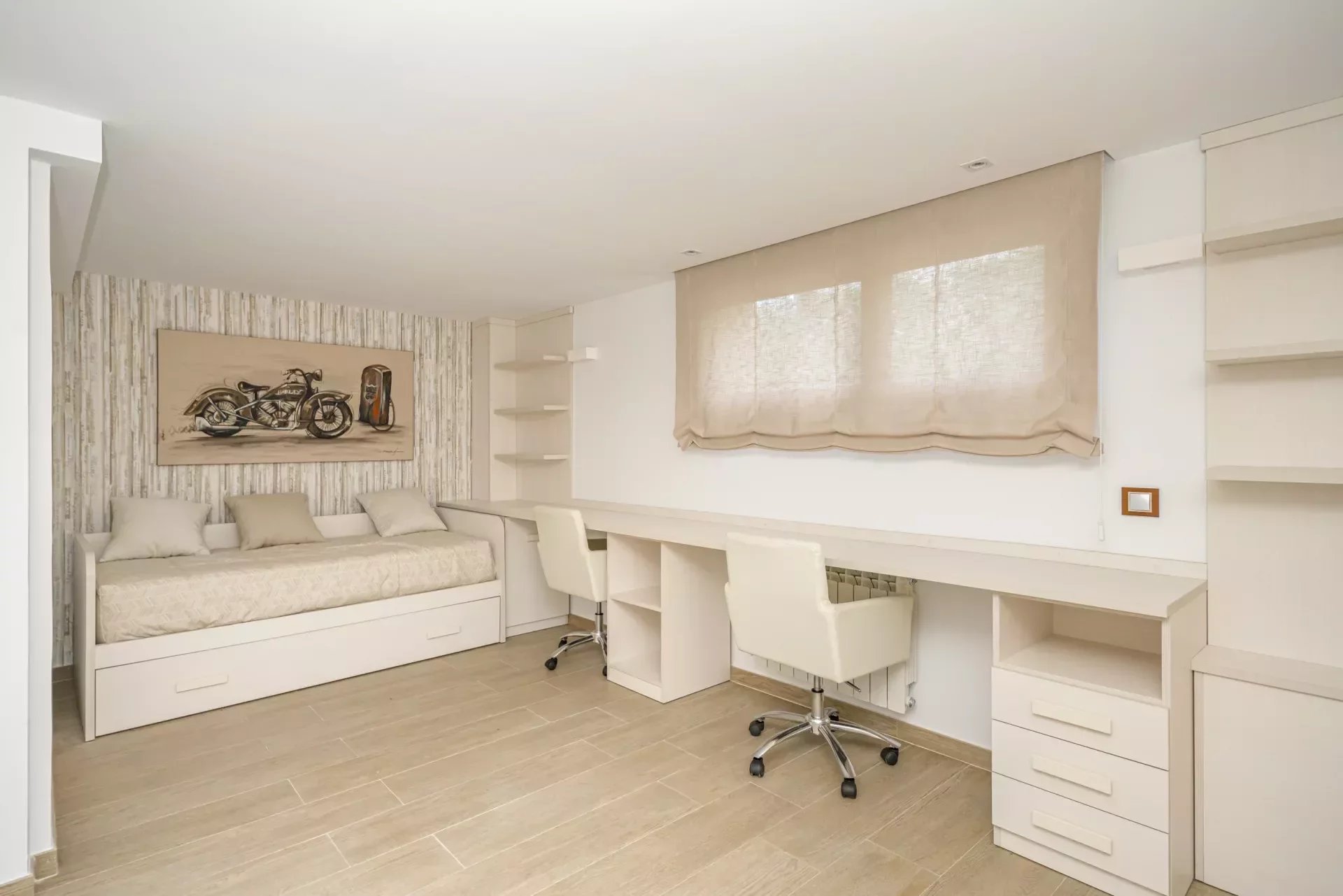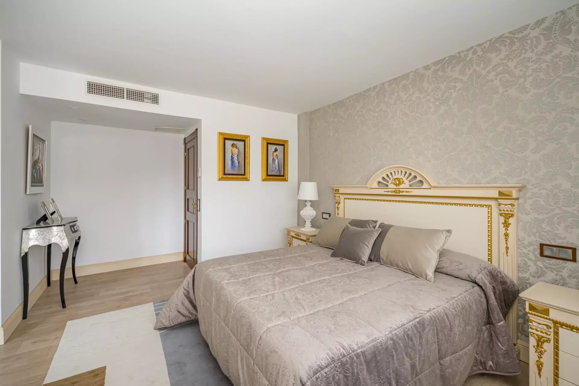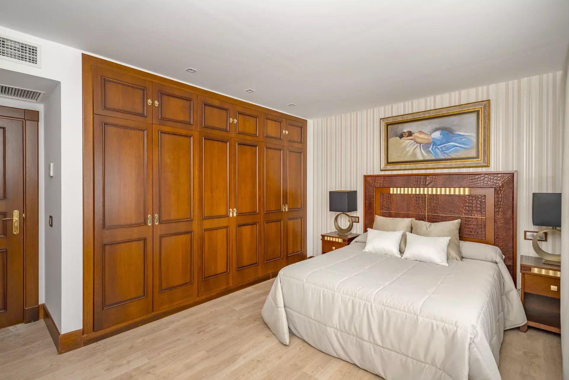 On the upper floor, going up the stairs, bright thanks to its large windows, we find a hall that distributes 3 bedrooms. The master bedroom, with dressing room, vanity area and bathroom with jacuzzi bath, as well as double washbasin and a shower tray.
