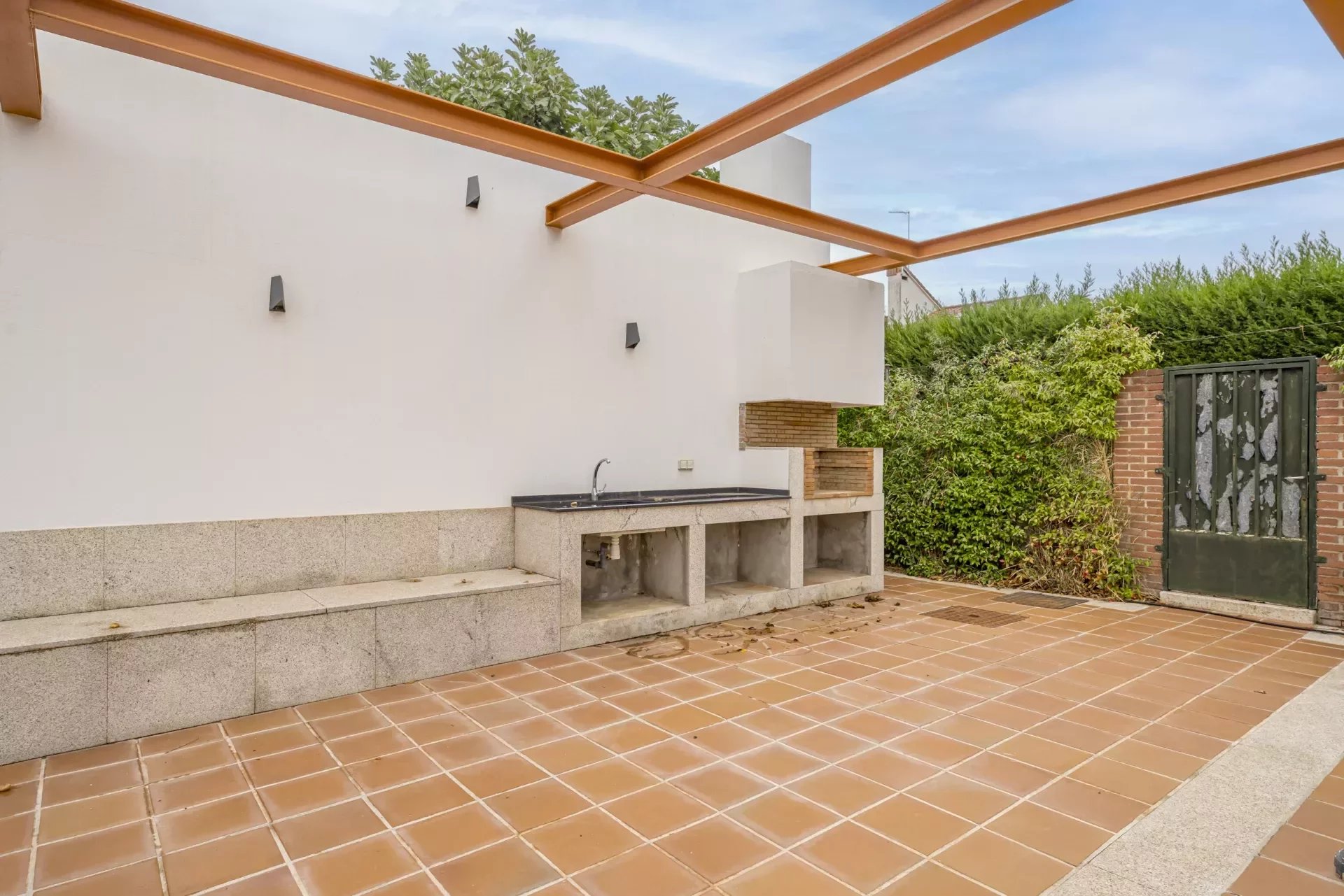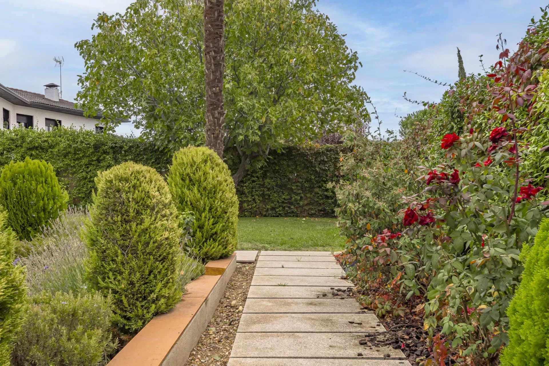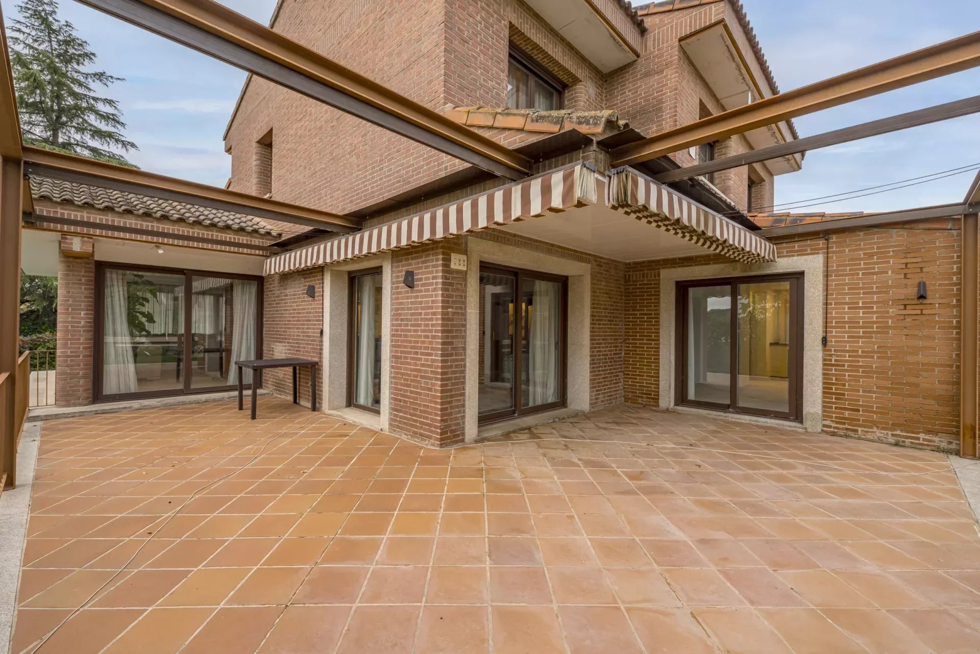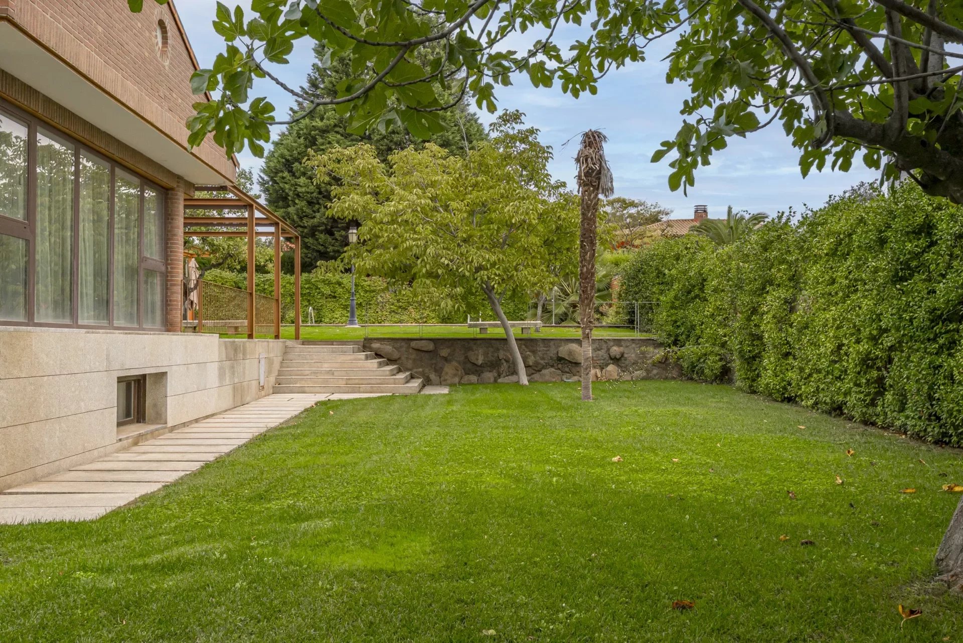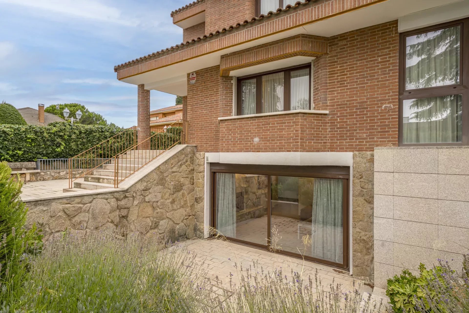 Barnes Madrid, presents this impressive property with a large entrance surrounded by outdoor gardens and ample parking for two cars.