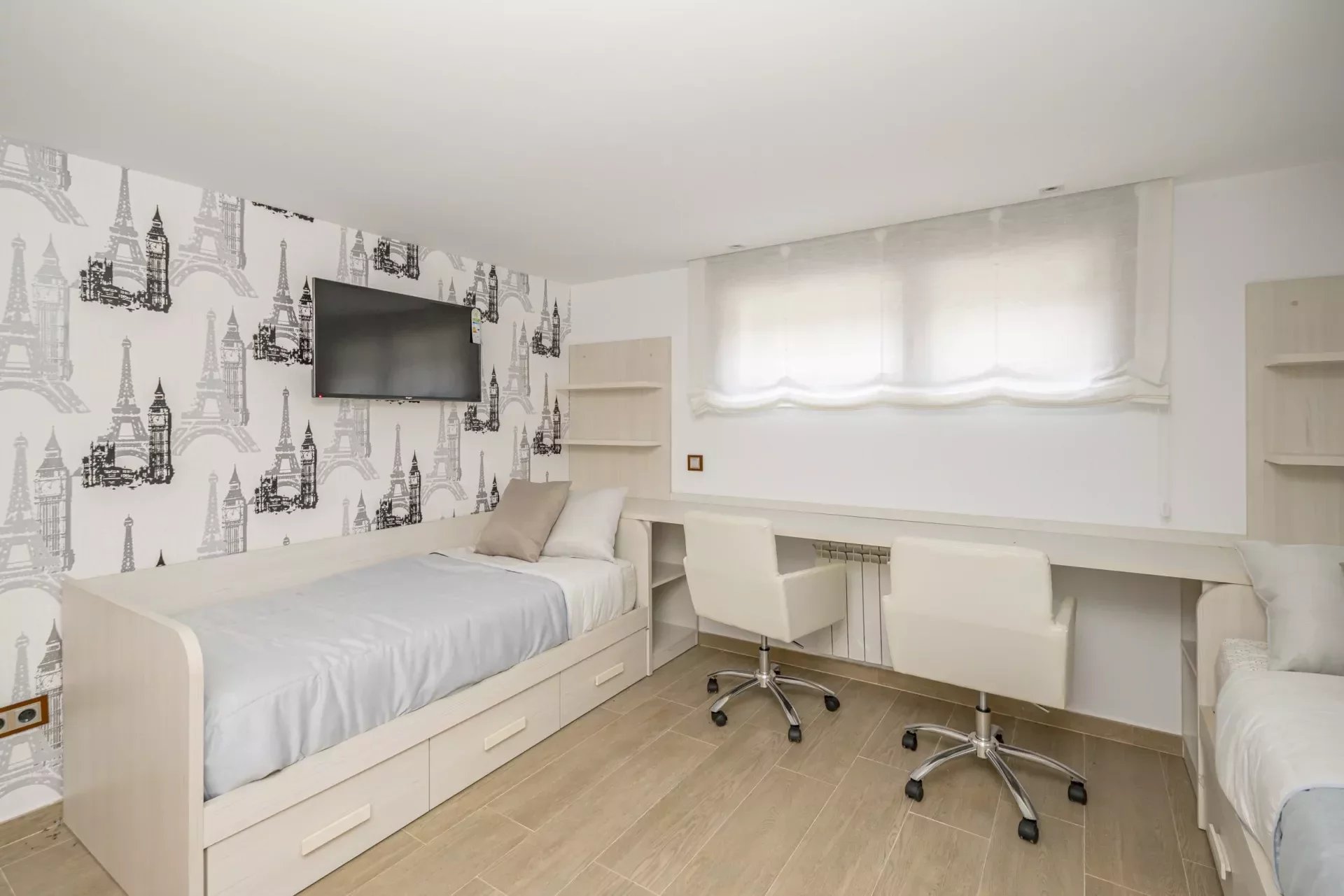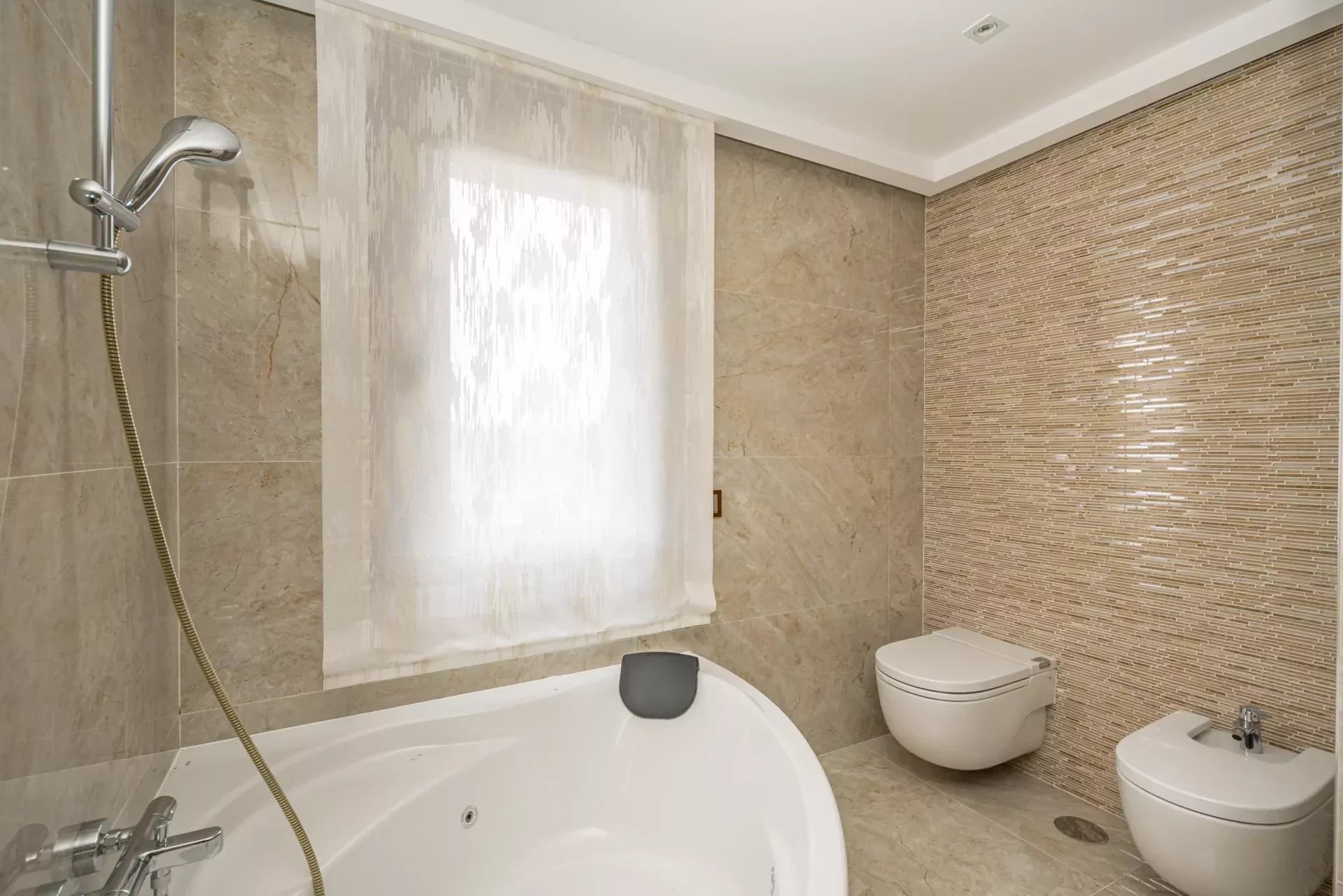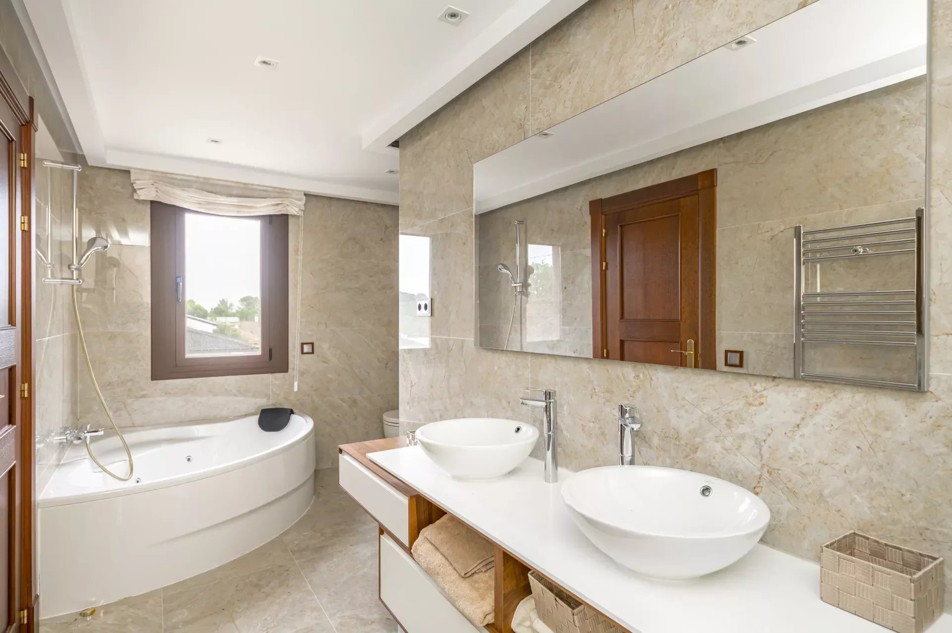 The second and third bedrooms are comfortably sized and share a large bathroom, which also has a jacuzzi bathtub and a walk-in shower. The bedrooms have C5 wooden flooring in the bedrooms which adds warmth.