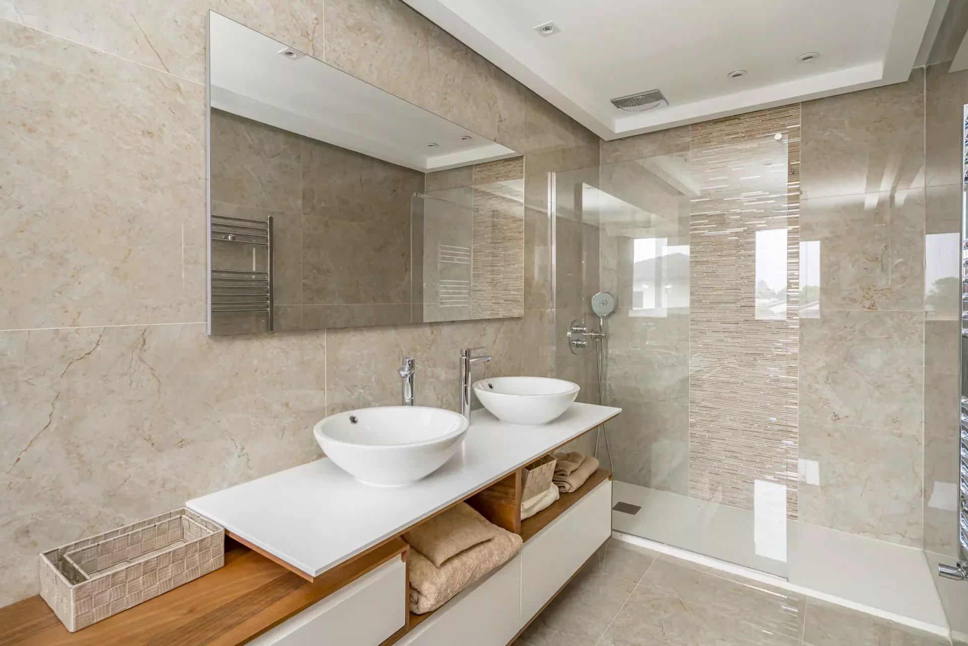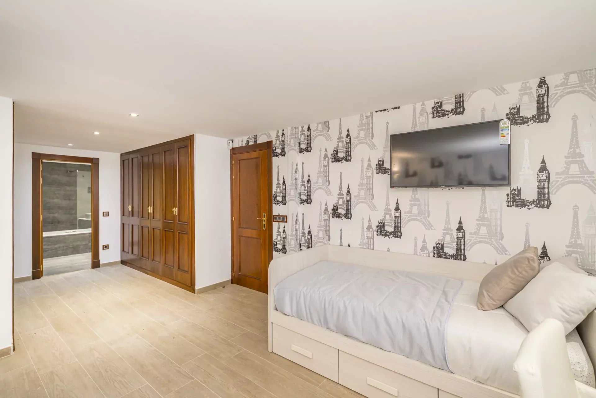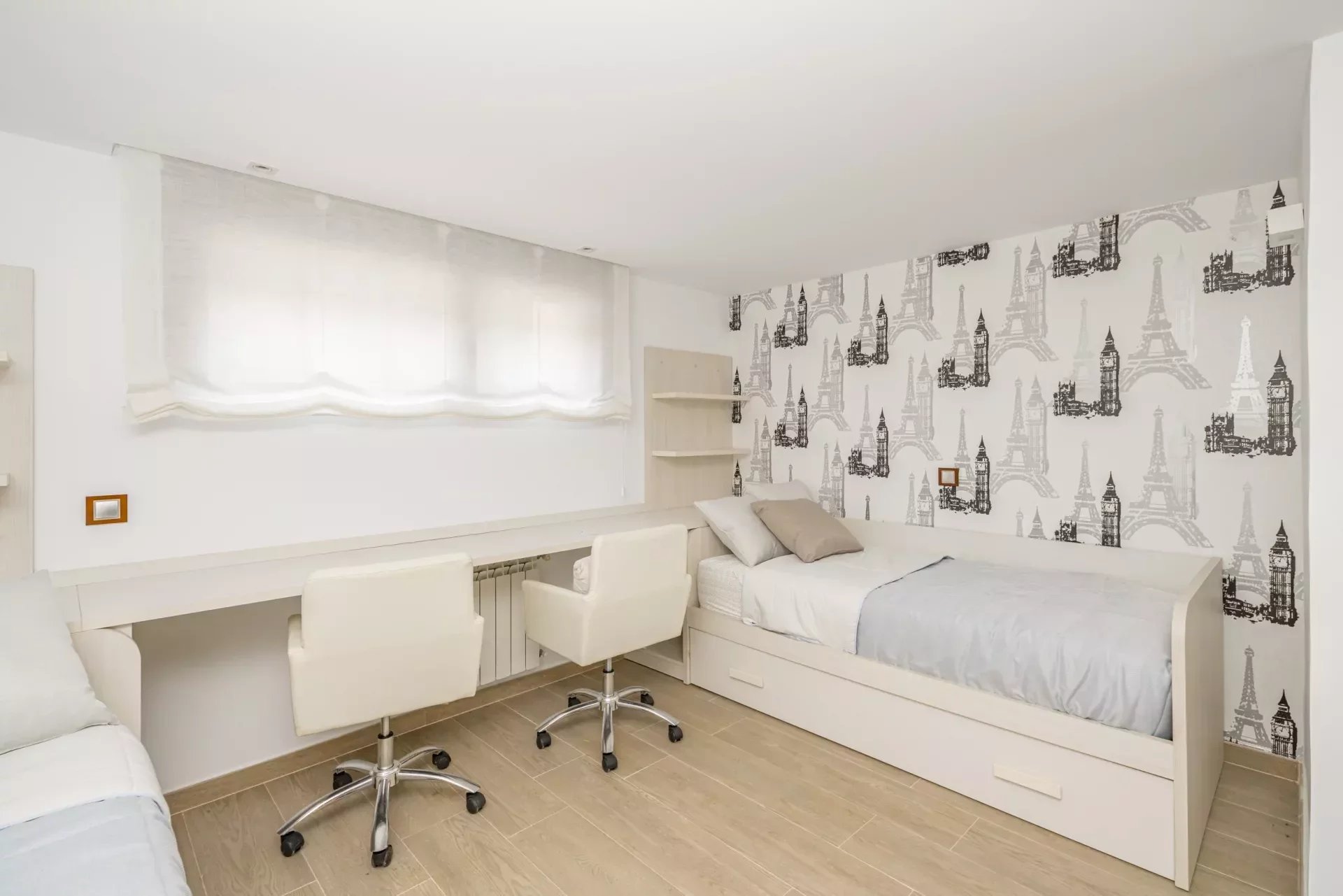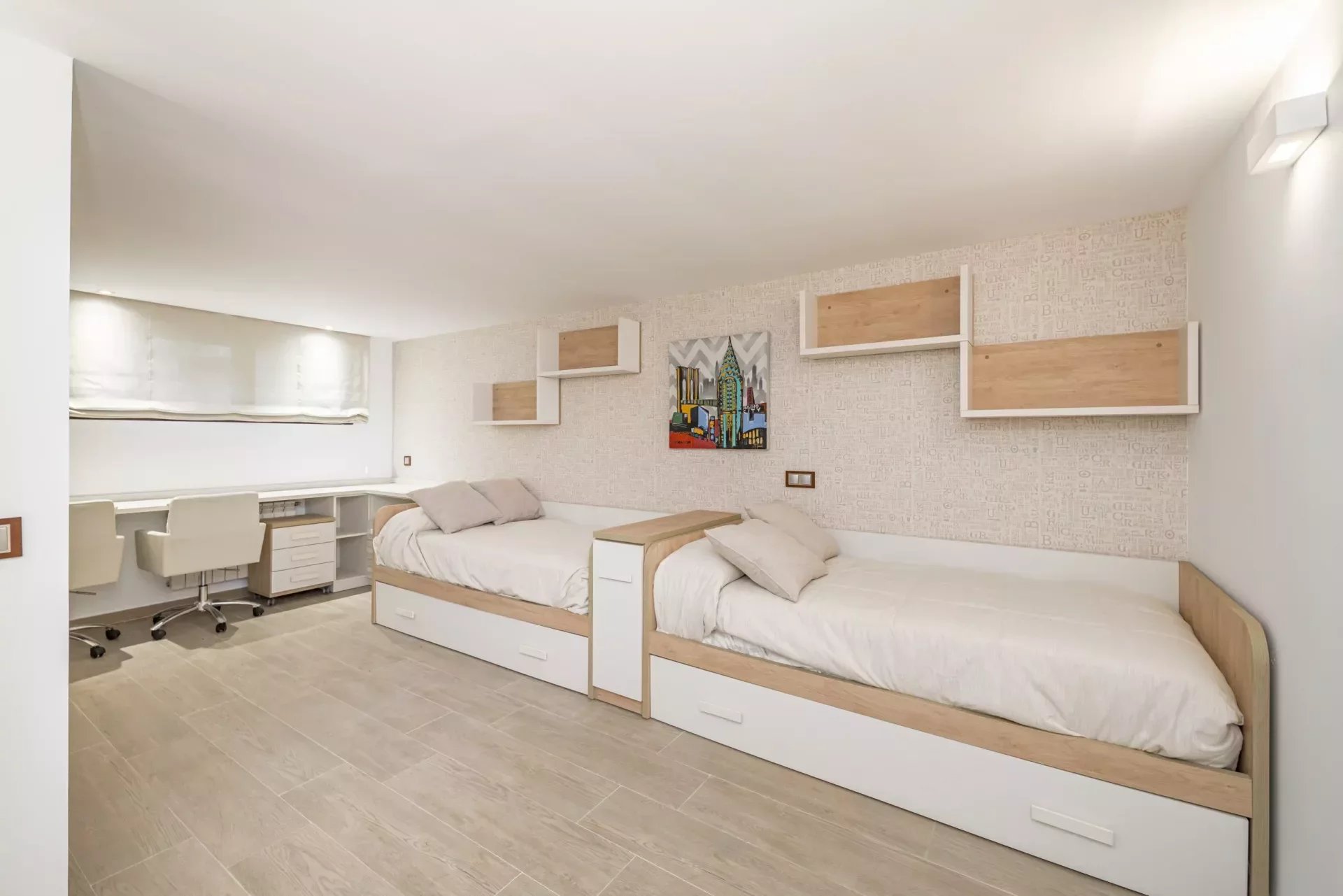 The second and third bedrooms are comfortably sized and share a large bathroom, which also has a jacuzzi bathtub and a walk-in shower. The bedrooms have C5 wooden flooring in the bedrooms which adds warmth.