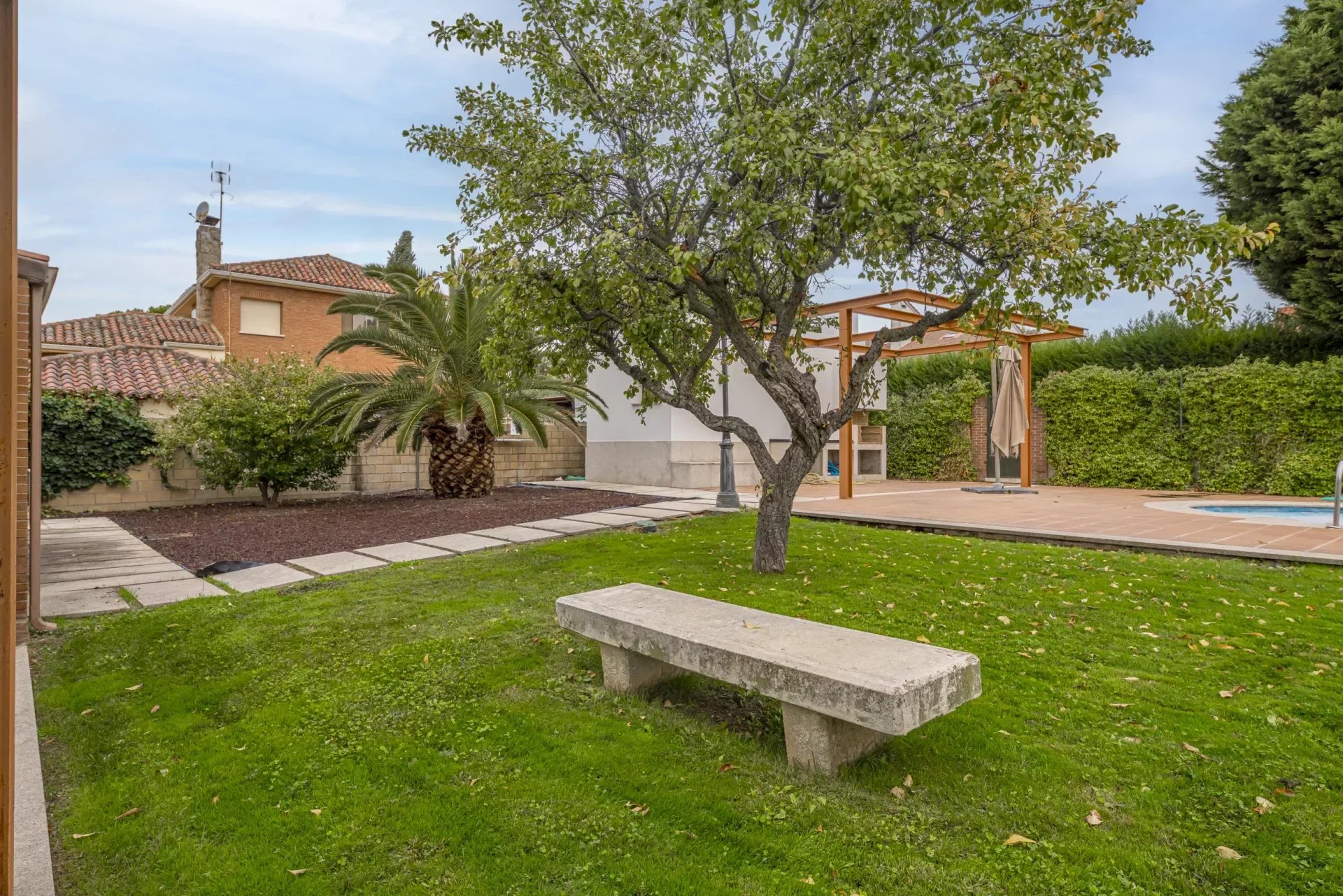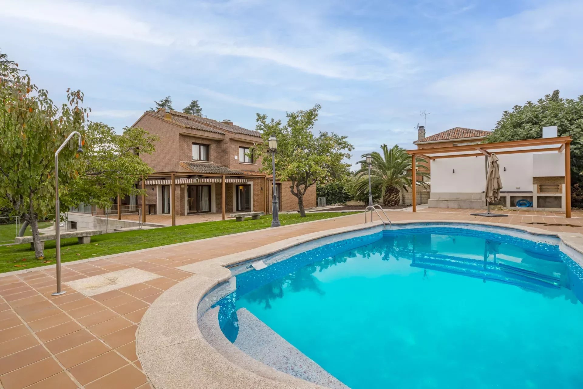 The house has a large swimming pool, barbecue area, storage room and bathroom for that area, terraces and gardens full of ornamental plants and trees.