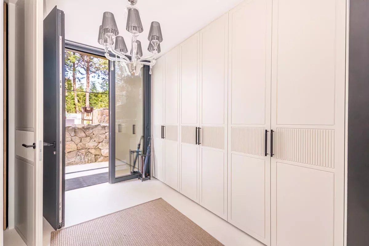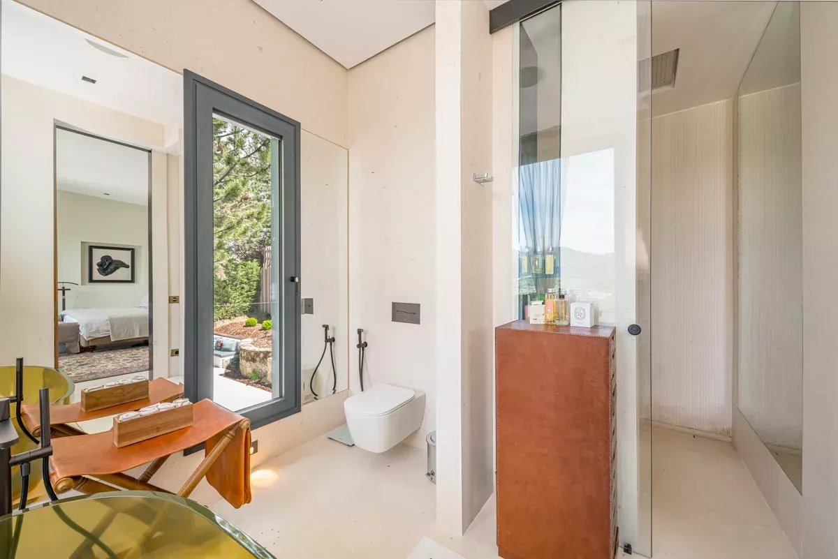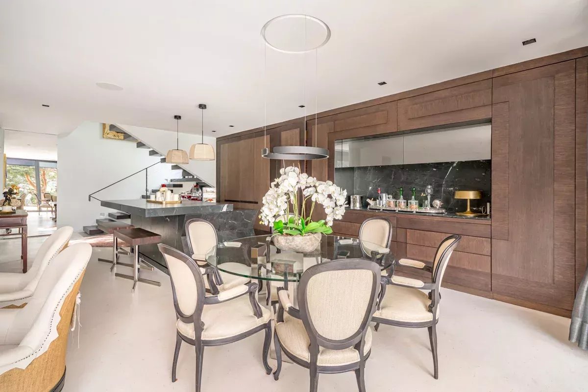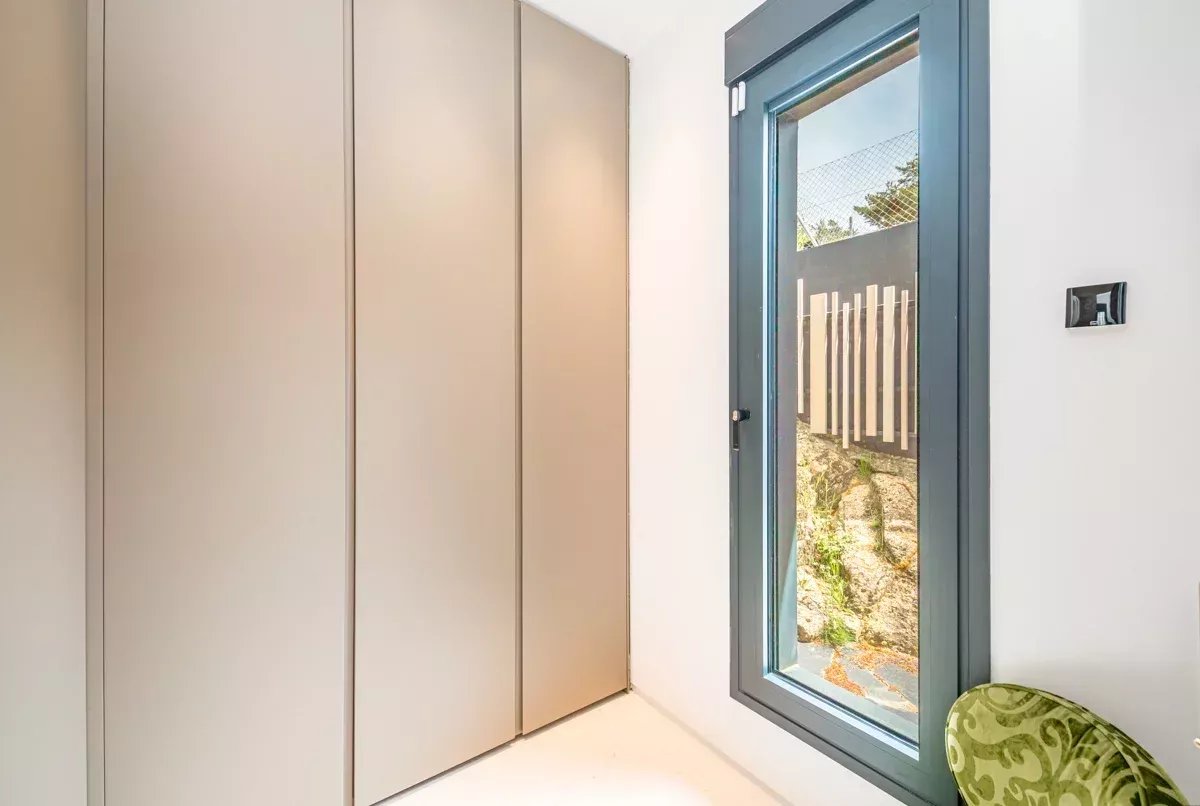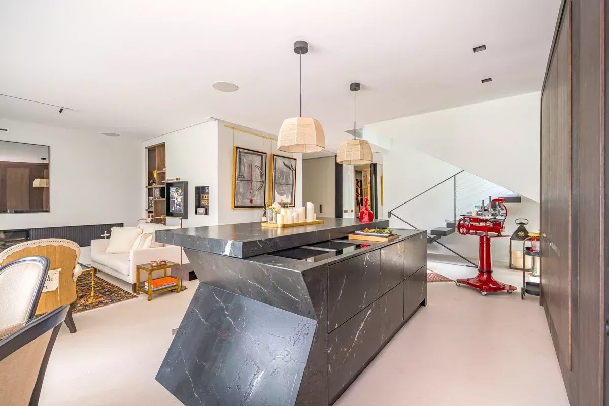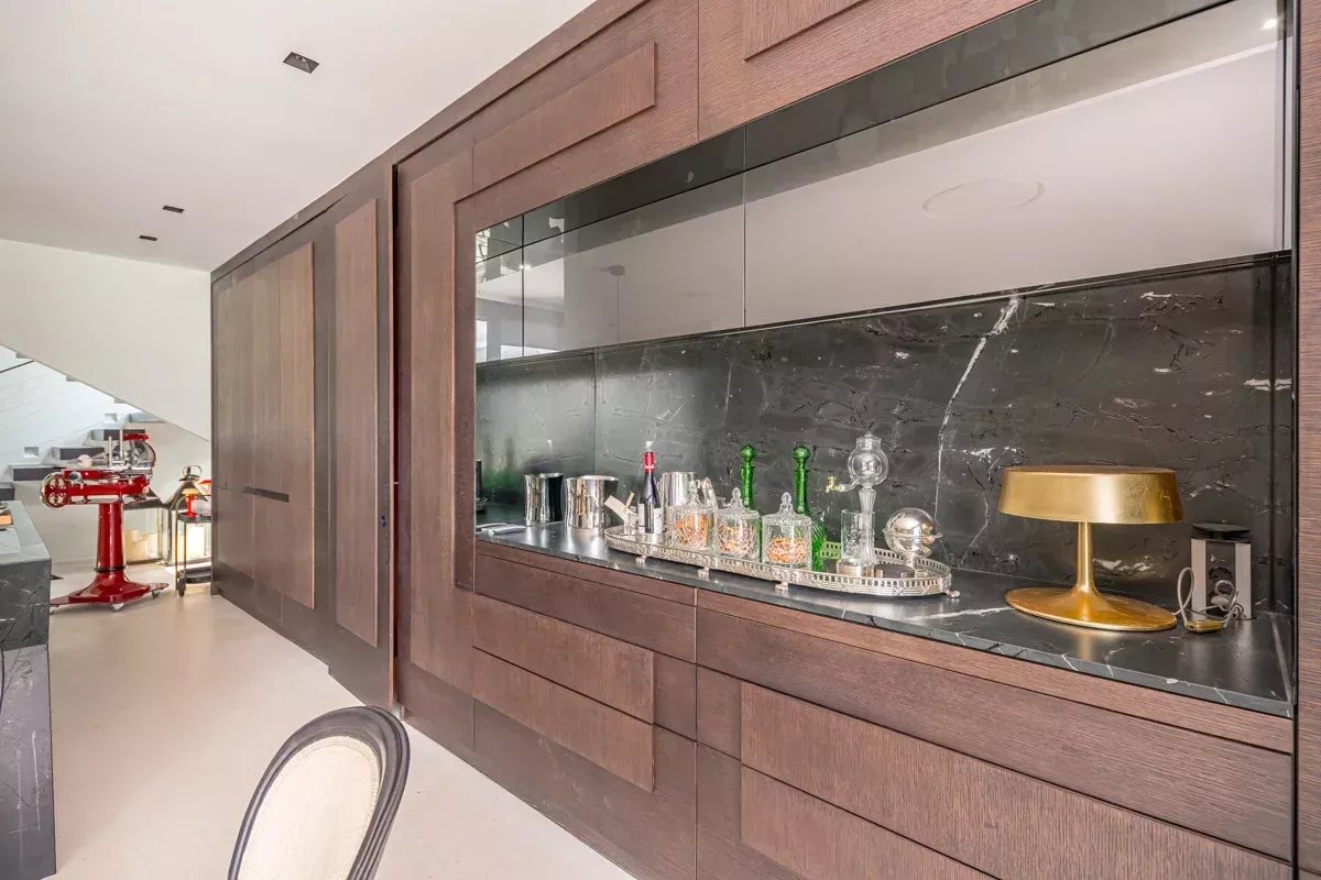 Spread over several floors and connected by a private elevator, this exclusive villa features aerothermal climate control, underfloor heating, Mitsubishi air conditioning, and maximum efficiency in water pressure and consumption. The bespoke oakwood kitchen is fitted with nine Miele appliances and boasts an impressive solid granite island.
