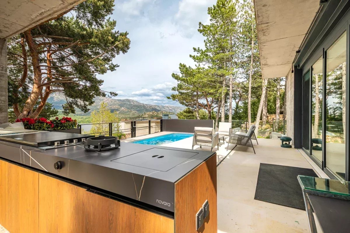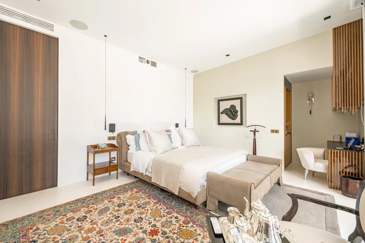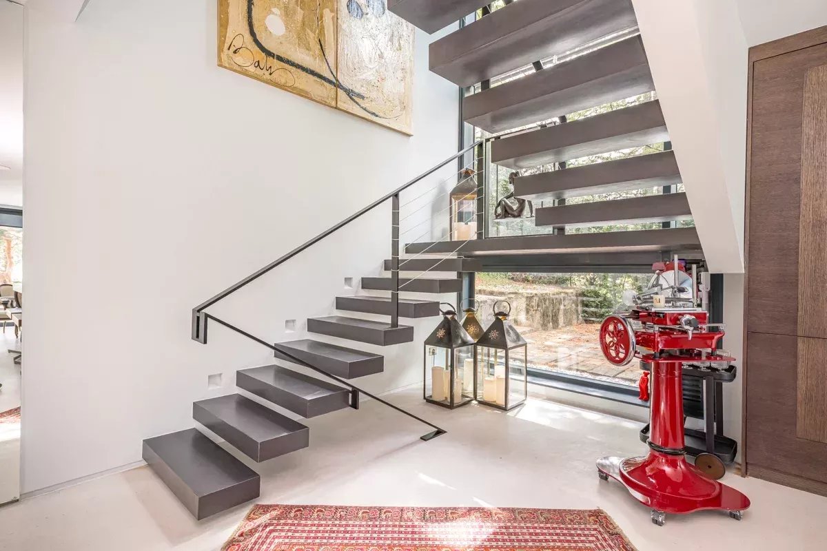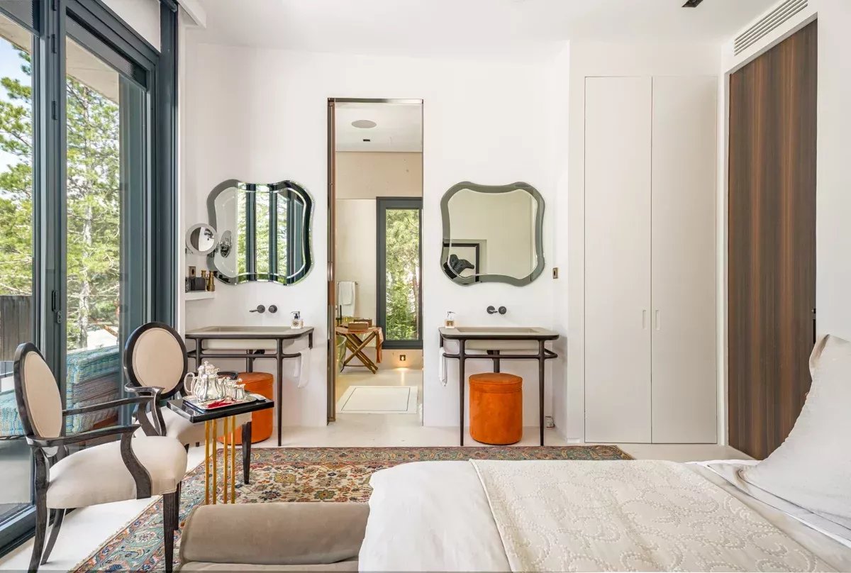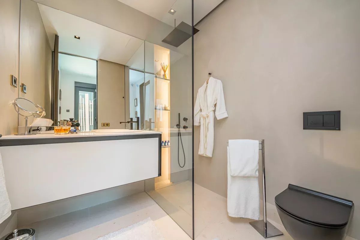 Spread over several floors and connected by a private elevator, this exclusive villa features aerothermal climate control, underfloor heating, Mitsubishi air conditioning, and maximum efficiency in water pressure and consumption. The bespoke oakwood kitchen is fitted with nine Miele appliances and boasts an impressive solid granite island.