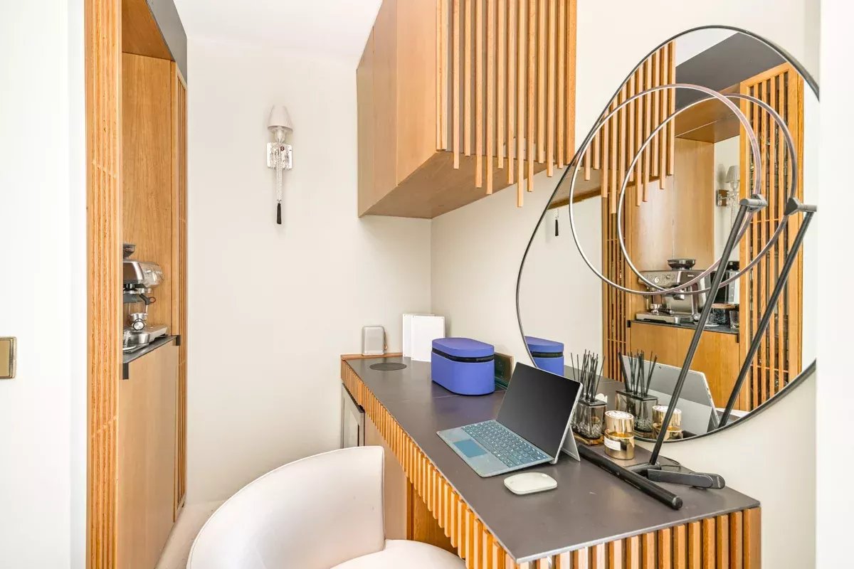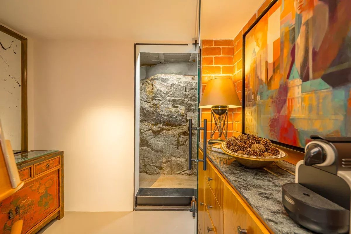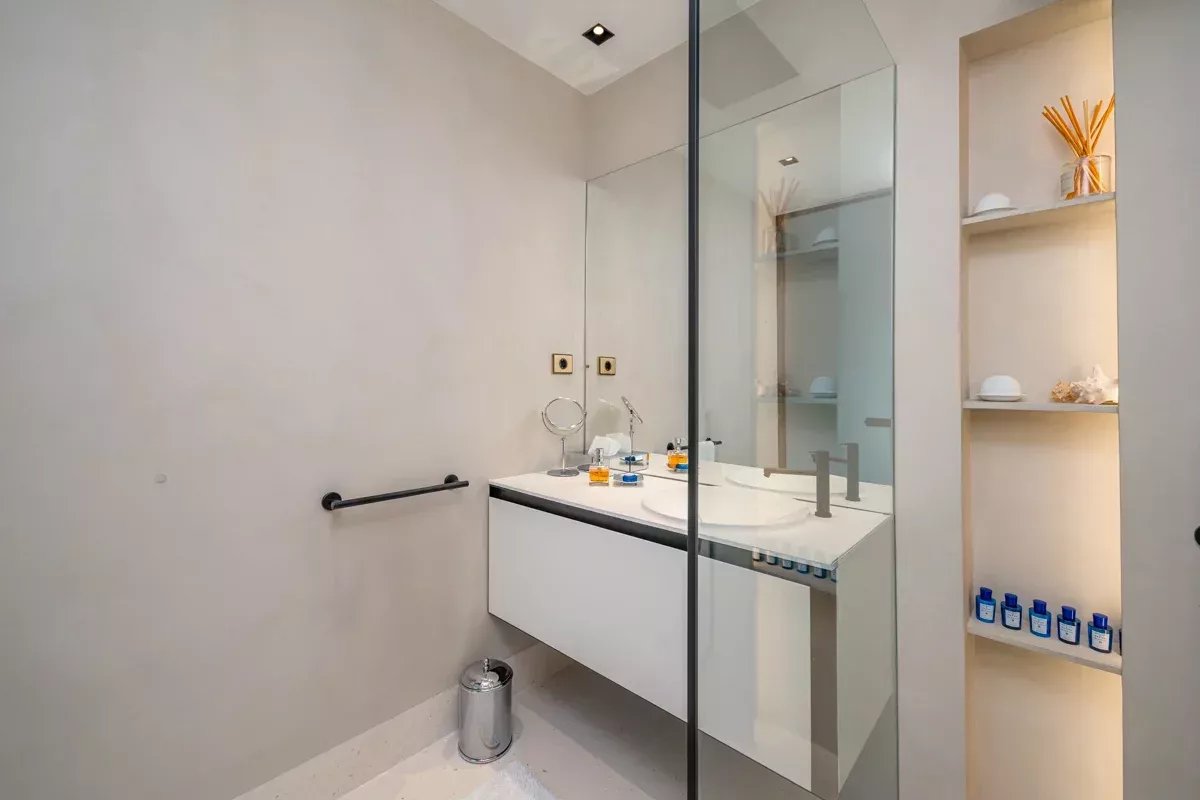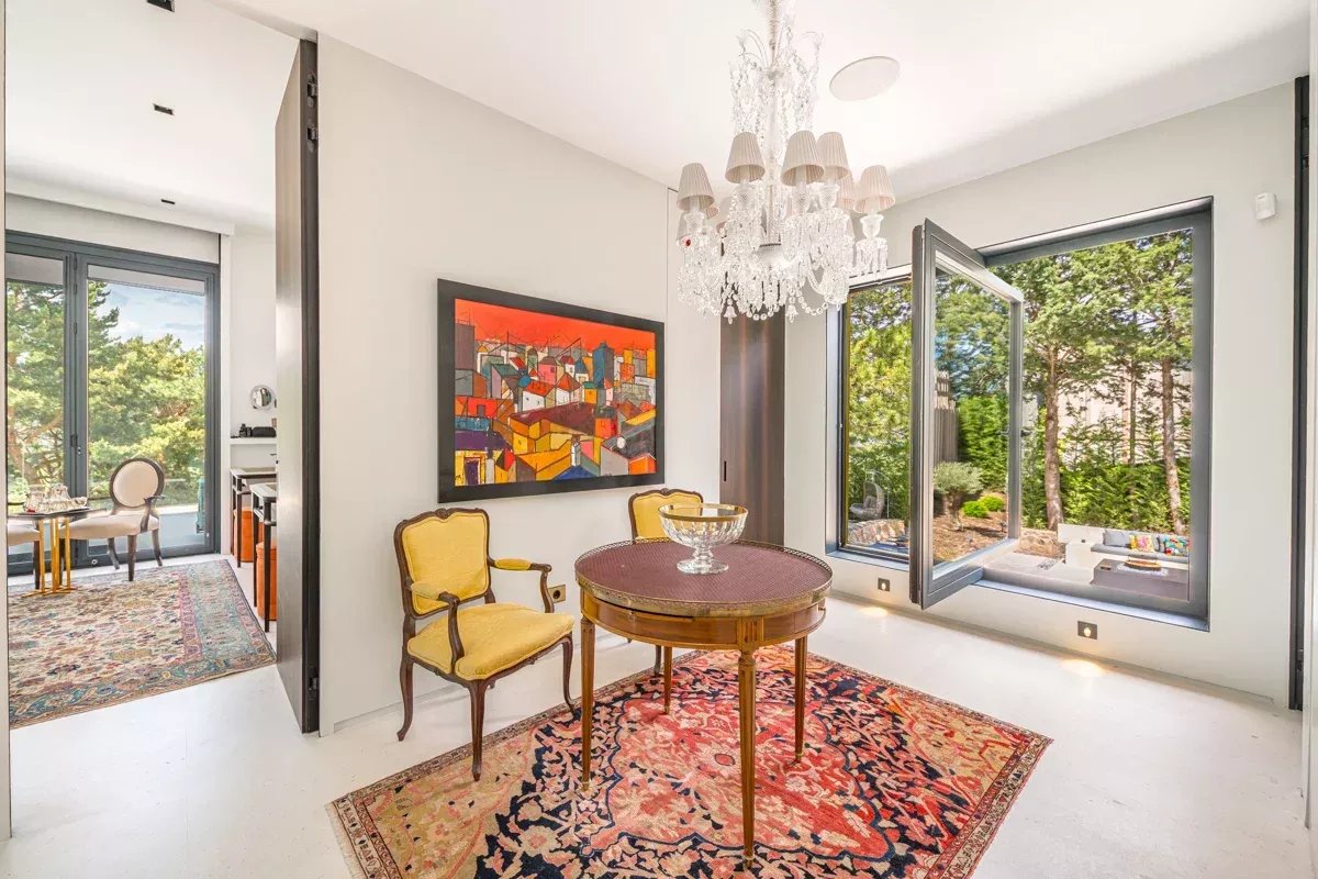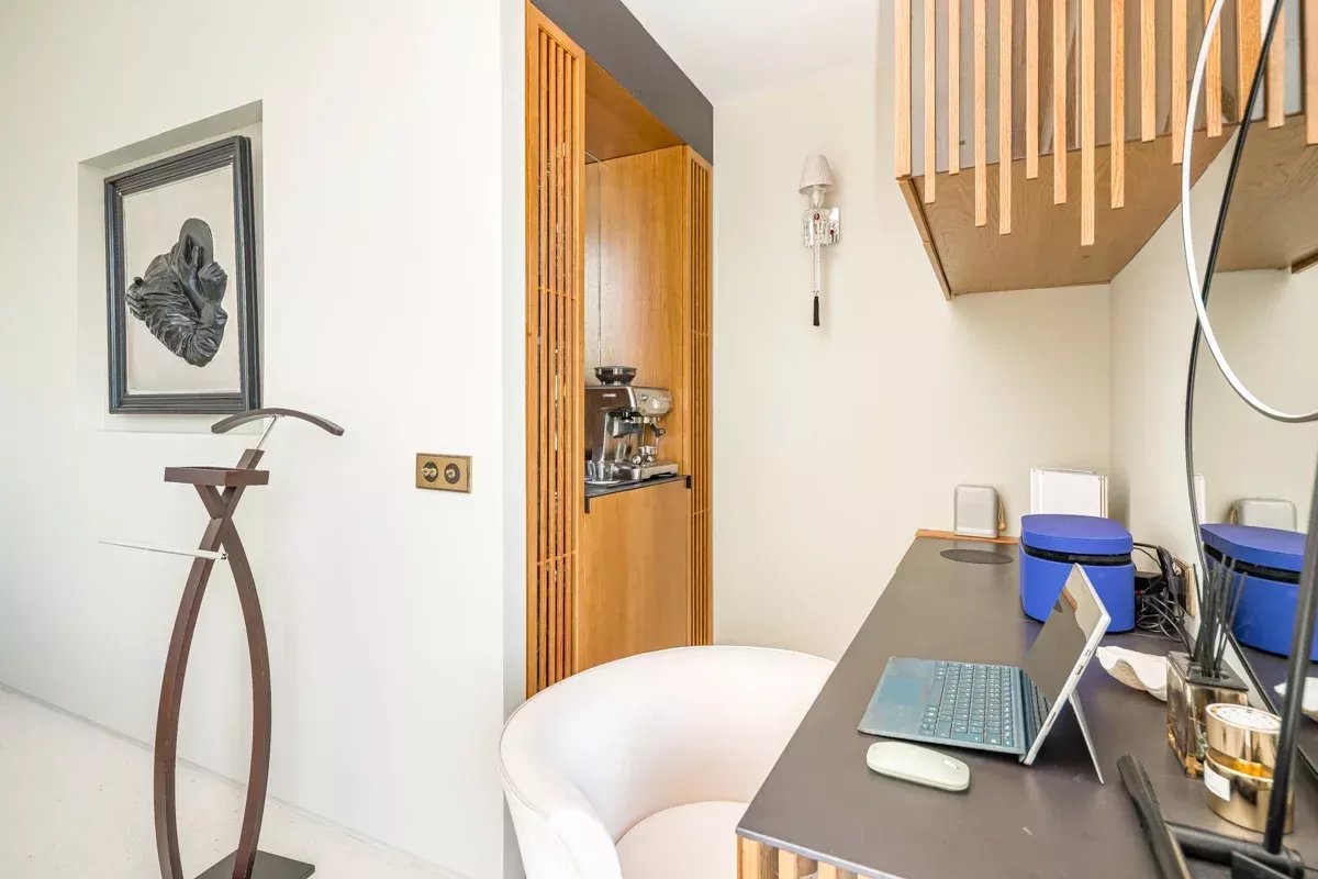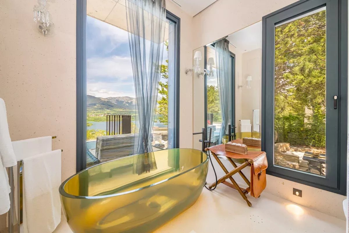 Spread over several floors and connected by a private elevator, this exclusive villa features aerothermal climate control, underfloor heating, Mitsubishi air conditioning, and maximum efficiency in water pressure and consumption. The bespoke oakwood kitchen is fitted with nine Miele appliances and boasts an impressive solid granite island.