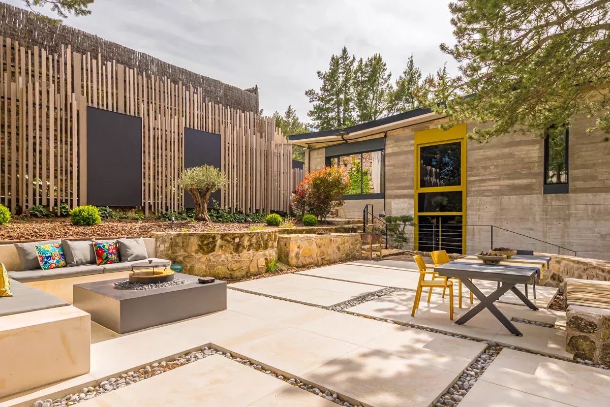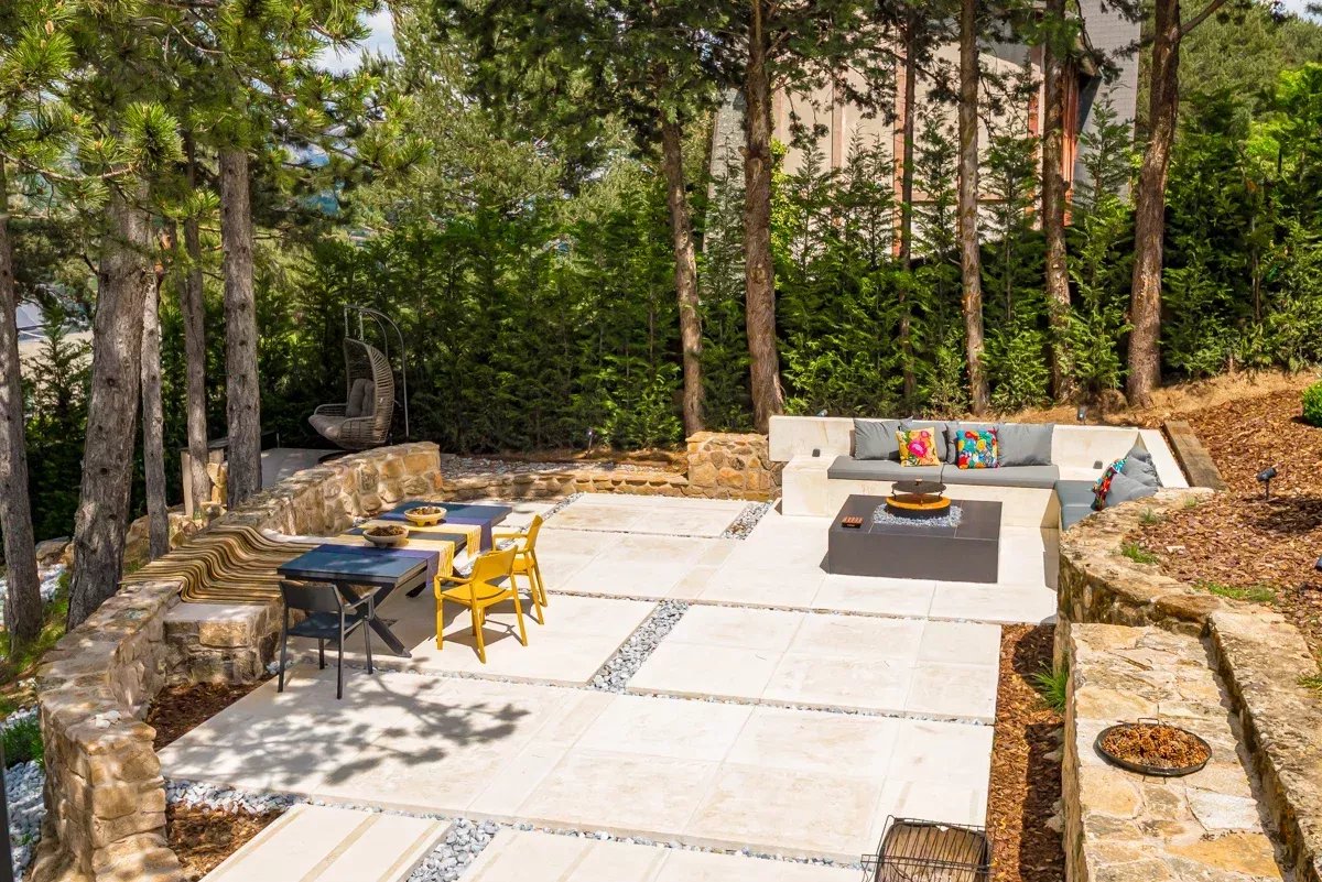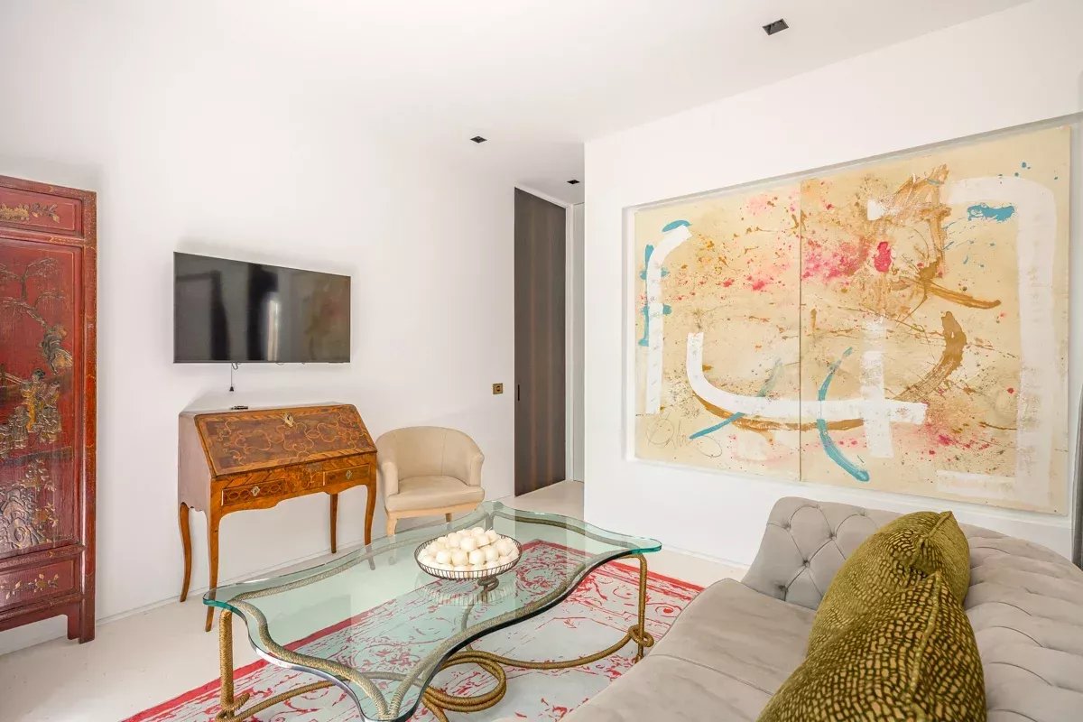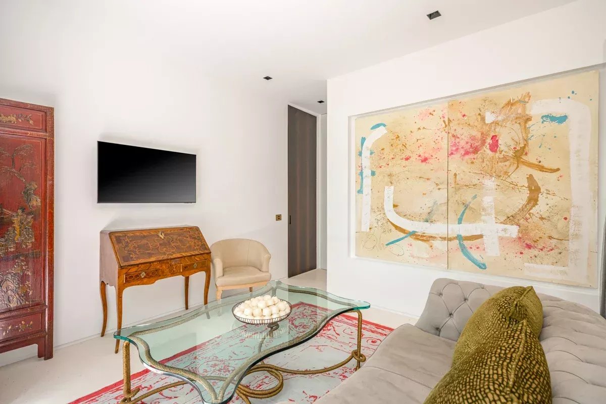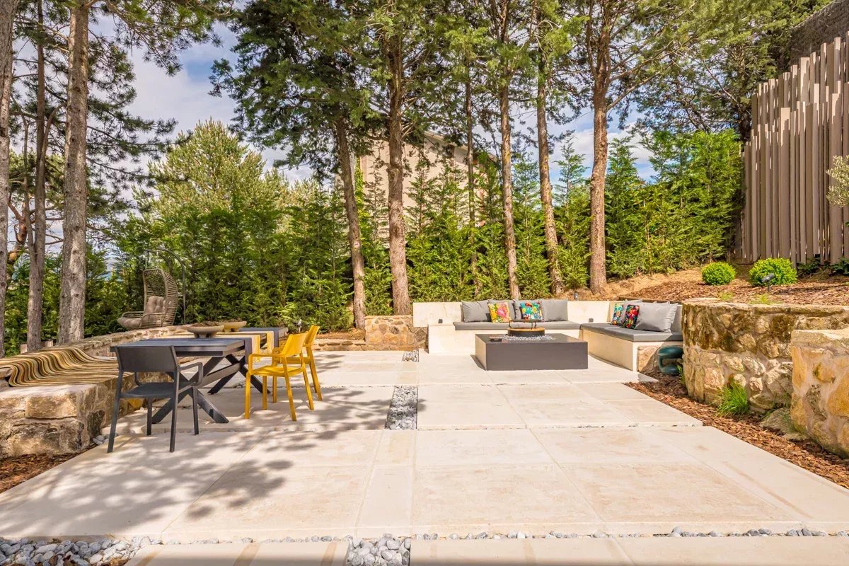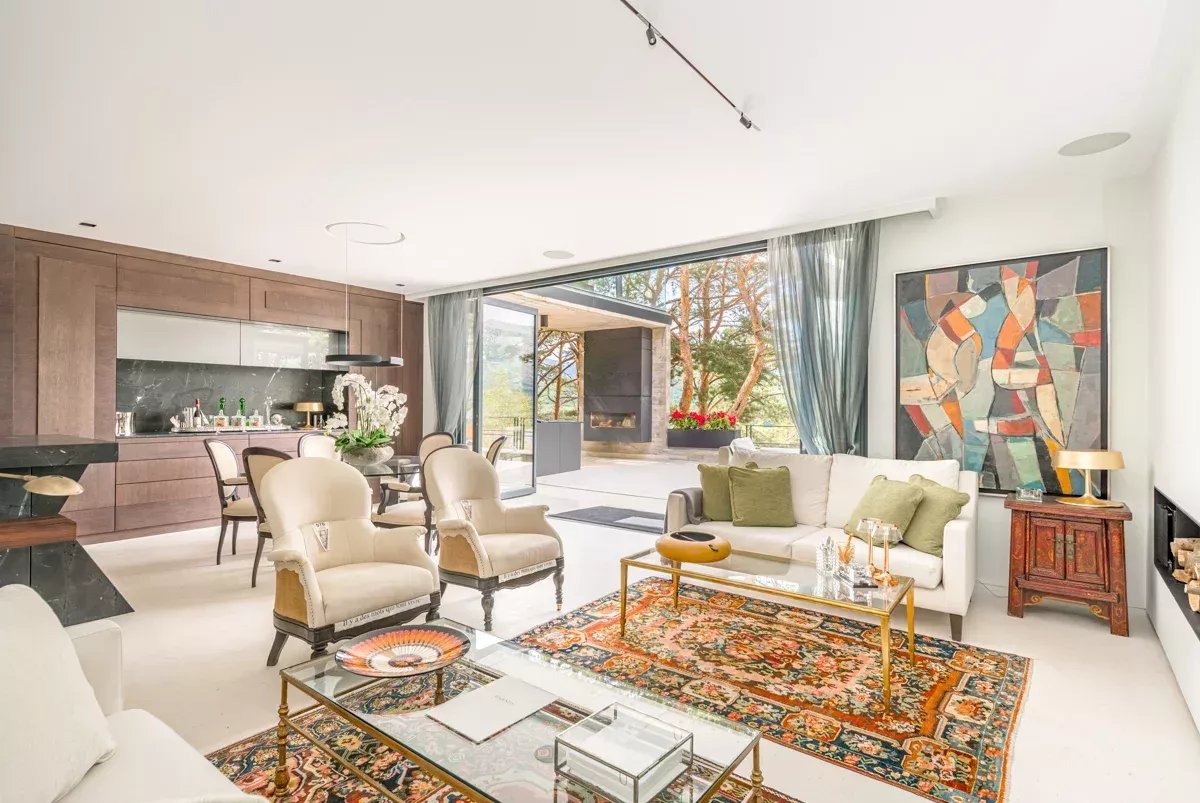 Enjoy a pool with jacuzzi, a lounge area with a nautically inspired outdoor kitchen, gas fireplaces, a professional B&W/Sonos sound system, and a landscaped garden with century-old olive trees, bespoke lighting, and an automatic irrigation system.
