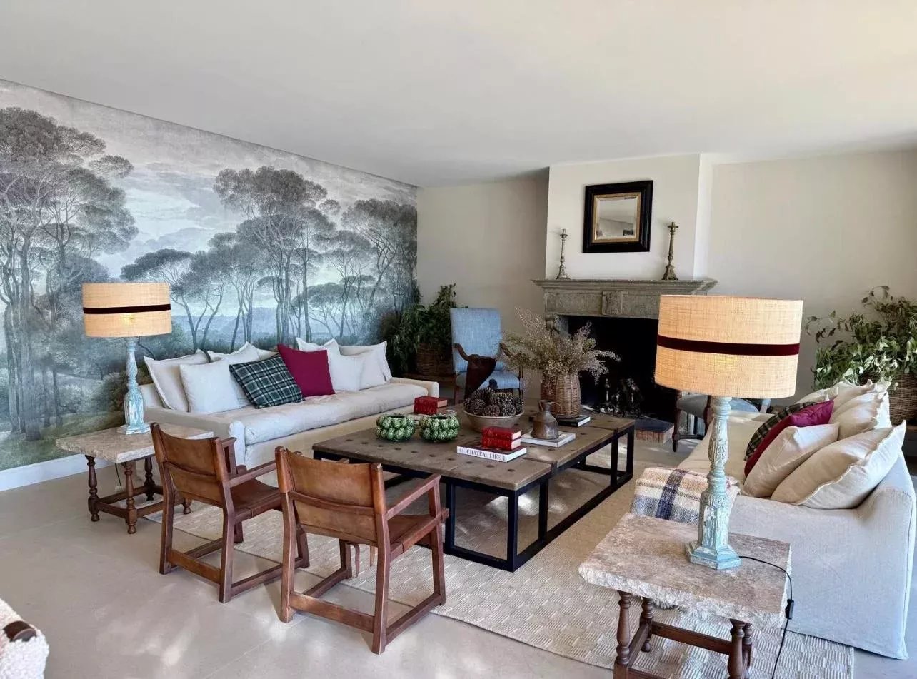 The luxurious residence features four spacious en-suite bedrooms, including a standout master suite with a private sitting area and fireplace—ideal for cozy moments. The social area offers a large living-dining room with a characterful antique fireplace.