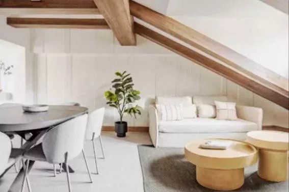 Natural light floods every corner of the penthouse thanks to its orientation and Velux-style skylights, bringing a warm and spacious atmosphere to every room. The open-plan kitchen flows seamlessly into the living and dining area, creating a bright and welcoming space, perfect for both everyday living and entertaining.