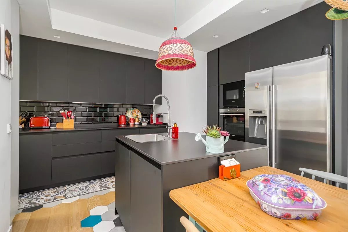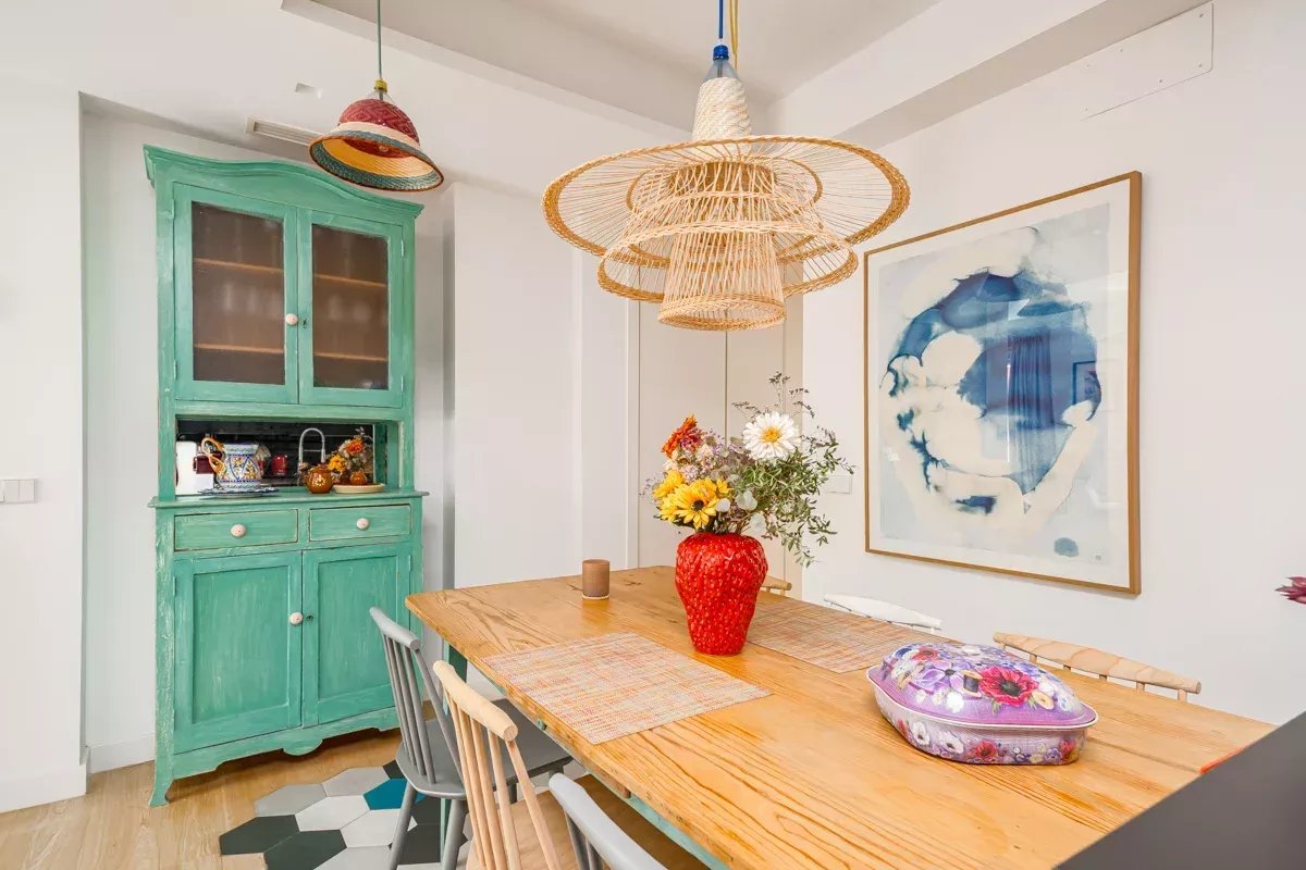 From its windows, one enjoys views of a garden and the Lista neighborhood, offering privacy and tranquility. The open-plan kitchen integrates seamlessly with the dining area, creating a functional and inviting space.