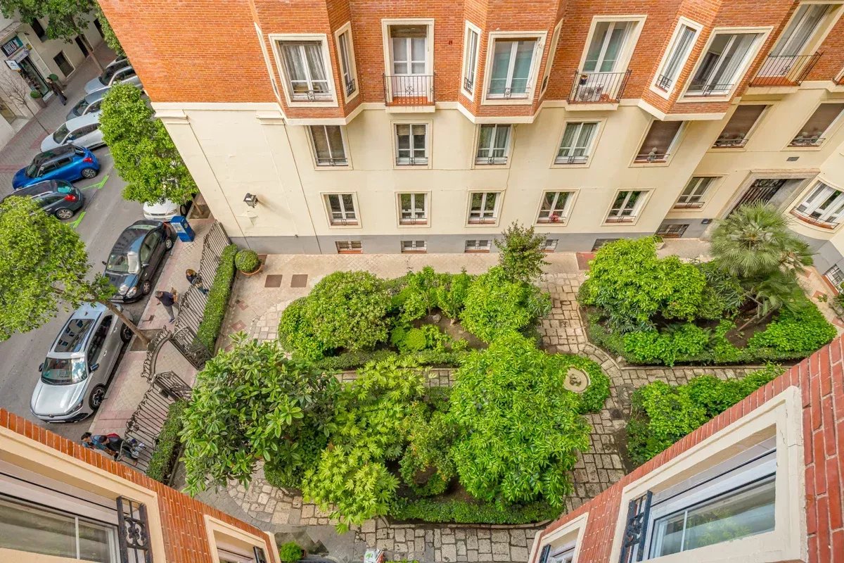 This elegant apartment is situated in a building inspired by classic Parisian architecture, particularly reminiscent of the style found on Rue Saint-Germain-des-Prés. It is accessed through two towers and a lush central courtyard, offering a residential experience that combines history, design, and comfort.