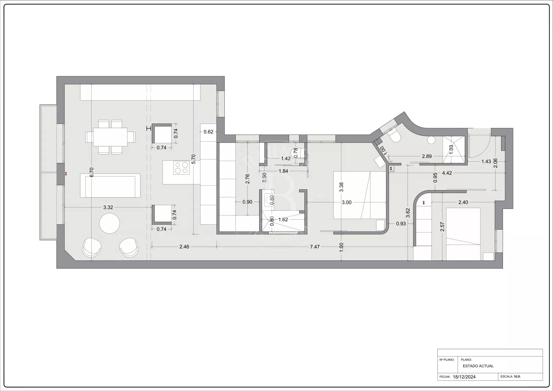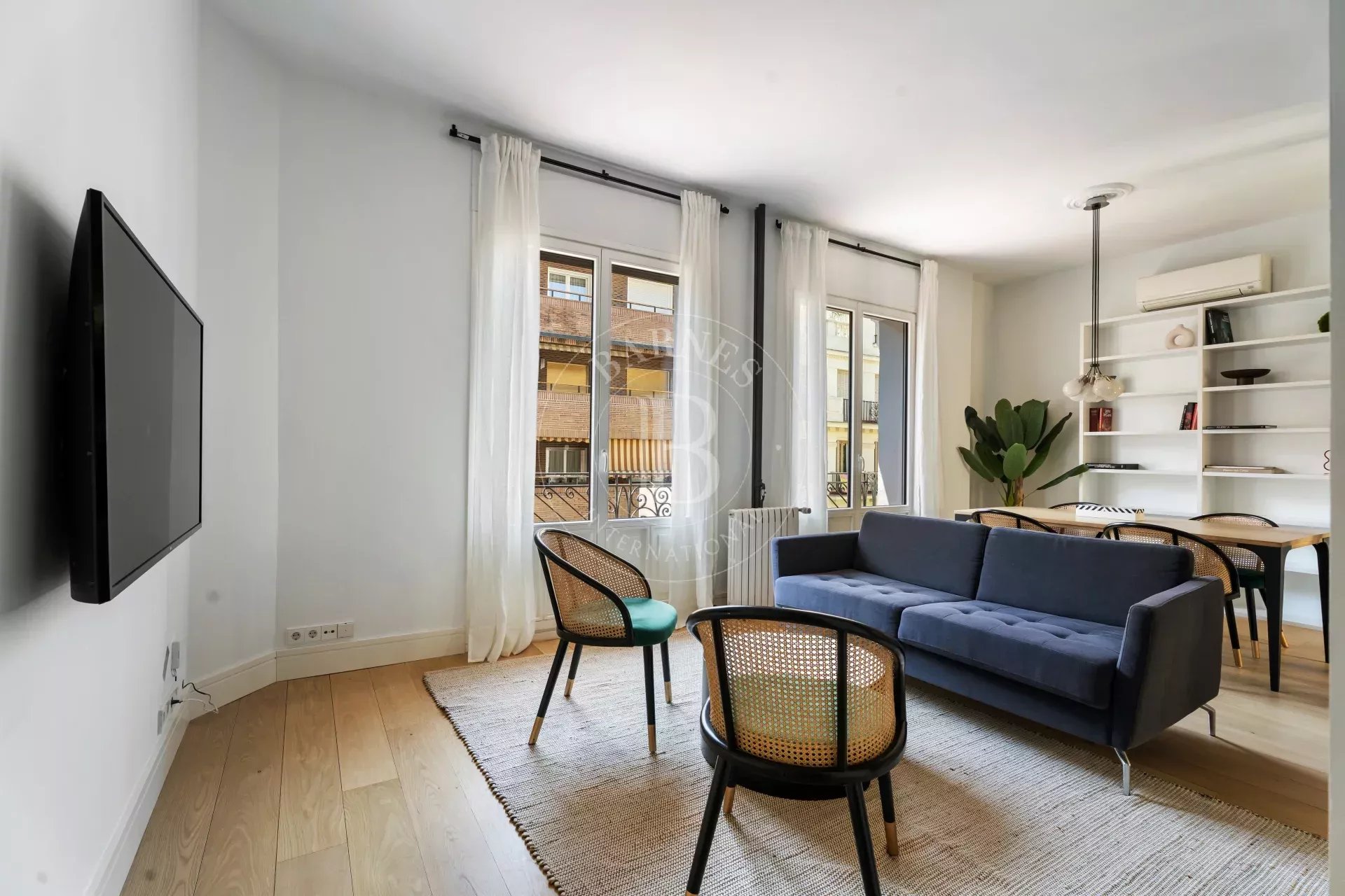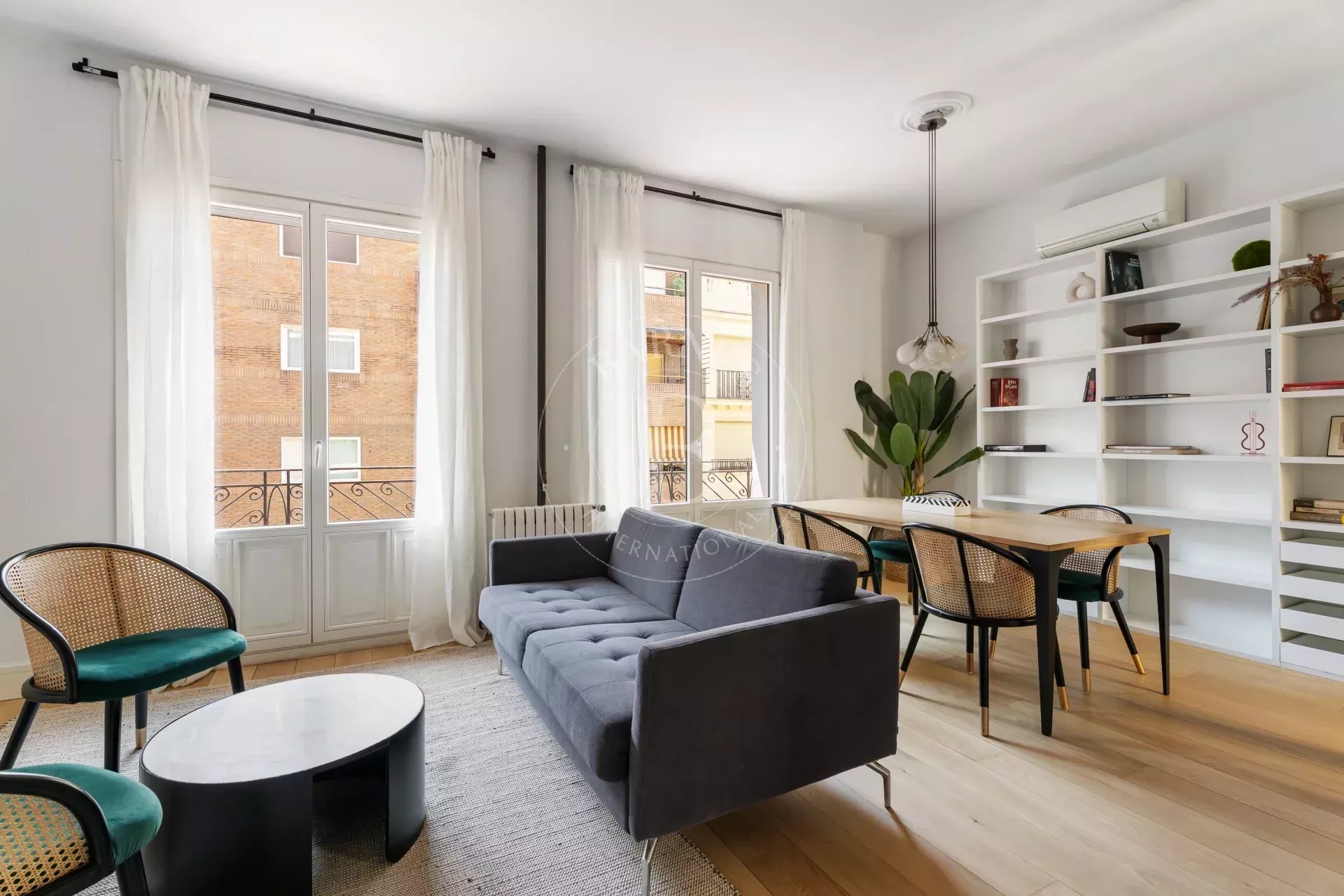 BARNES Madrid presents this bright and elegant 112 m² exterior flat, located on a high floor of a classic building with a lift and concierge service. The property stands out for its functional layout and great potential to adapt to different lifestyles. It has two large bedrooms and two bathrooms, as well as a spacious living area that allows for the integration of an open-plan kitchen or the maintenance of the current layout, thus offering the possibility of customising the space according to the preferences of the future owner.
