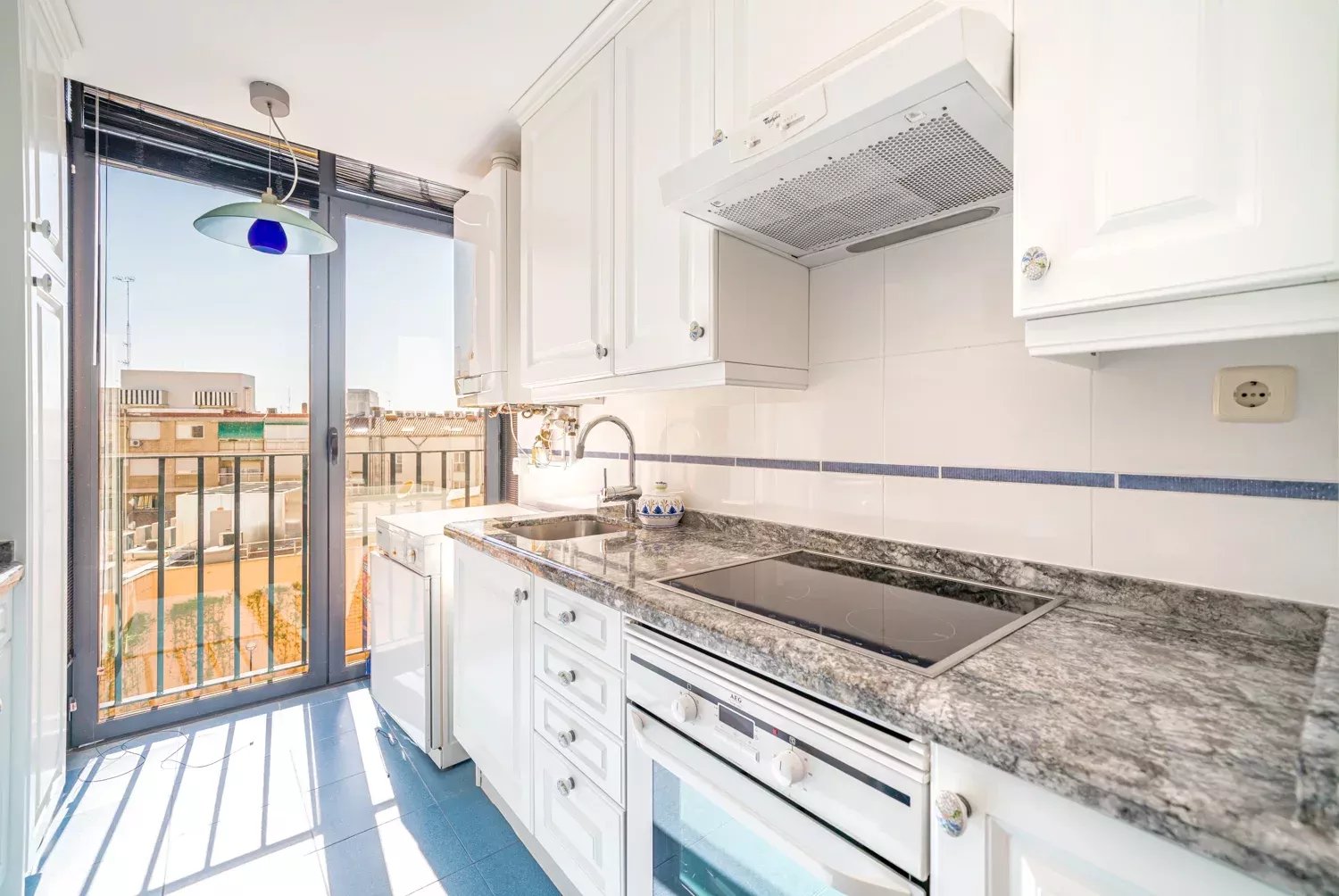 This is a unique interior-exterior apartment: it doesn’t face enclosed courtyards but opens up to breathtaking panoramic views over central Madrid. From the very first moment, natural light becomes the true protagonist. It pours in through the balconies and large windows and bathes every corner of the home in direct sunlight, creating a warm, bright, and serene atmosphere throughout the day. It feels like a suspended bubble above the city, a space where calm and beauty meet in perfect balance.