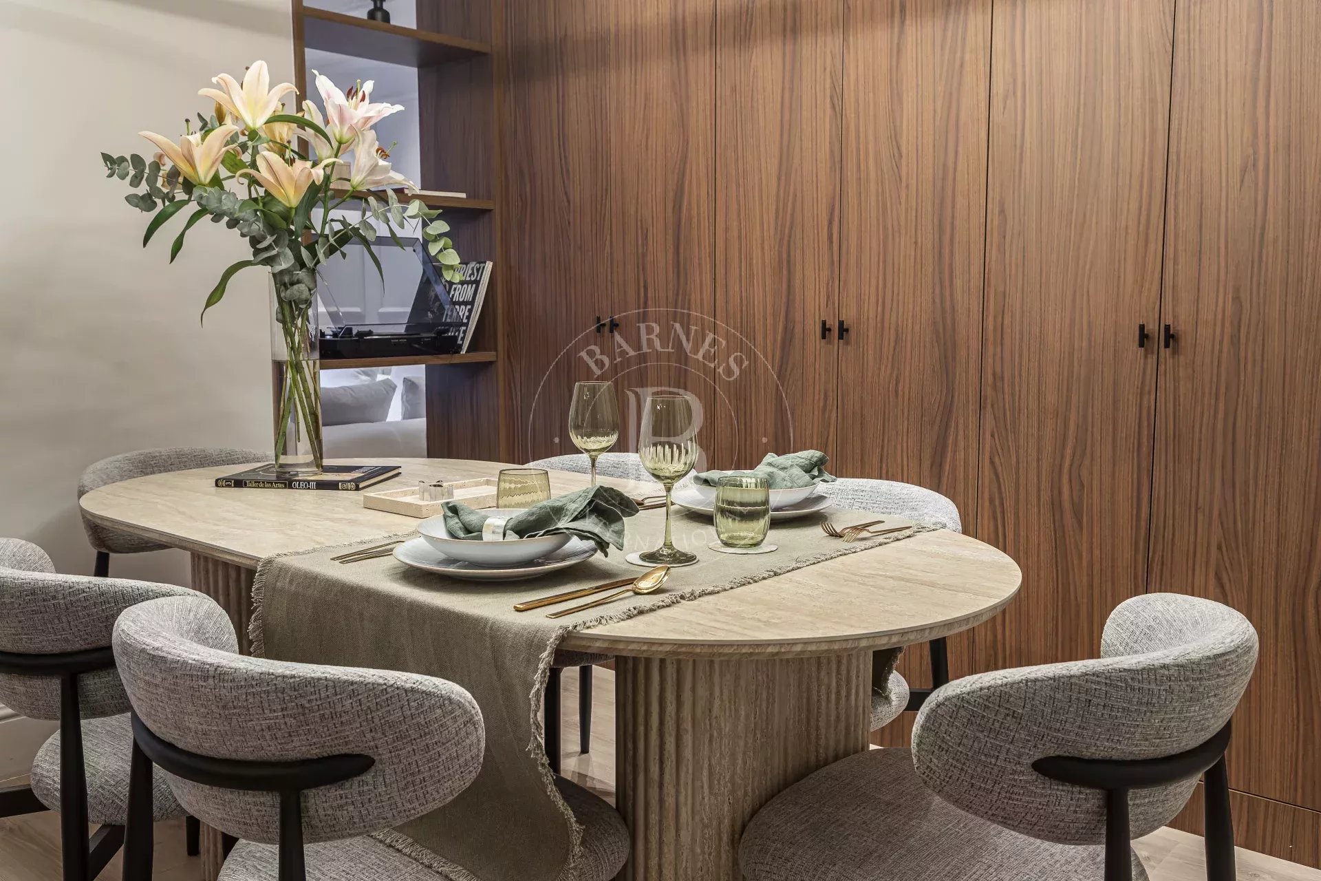 The sleeping area consists of three bedrooms, all with fitted wardrobes, two full bathrooms and a guest toilet. The natural wood floors and quality finishes give the whole apartment an elegant and welcoming atmosphere.