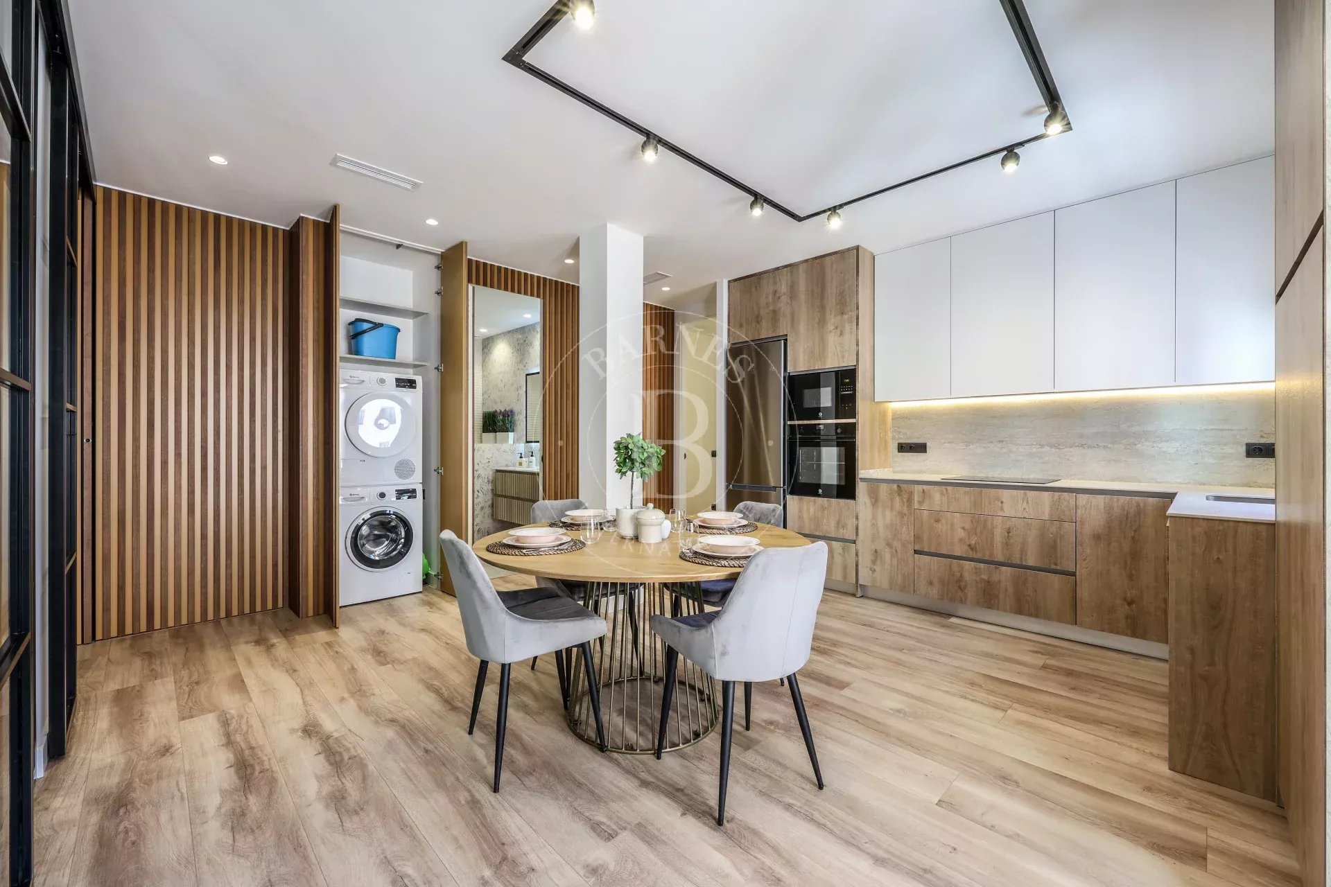 The spacious living and dining area stands out for its natural light, thanks to large exterior-facing windows that create a warm and sophisticated atmosphere. The kitchen, open yet visually separated through clean architectural lines, comes fully equipped with top-of-the-line appliances and premium finishes.
