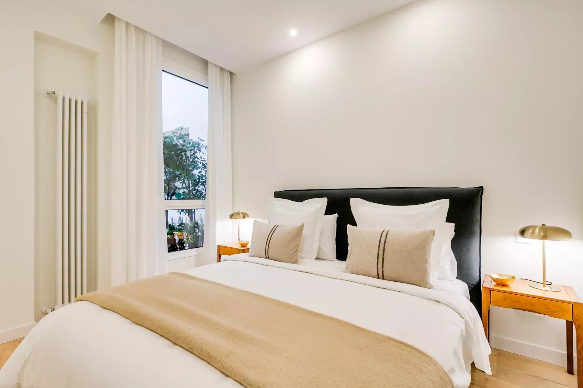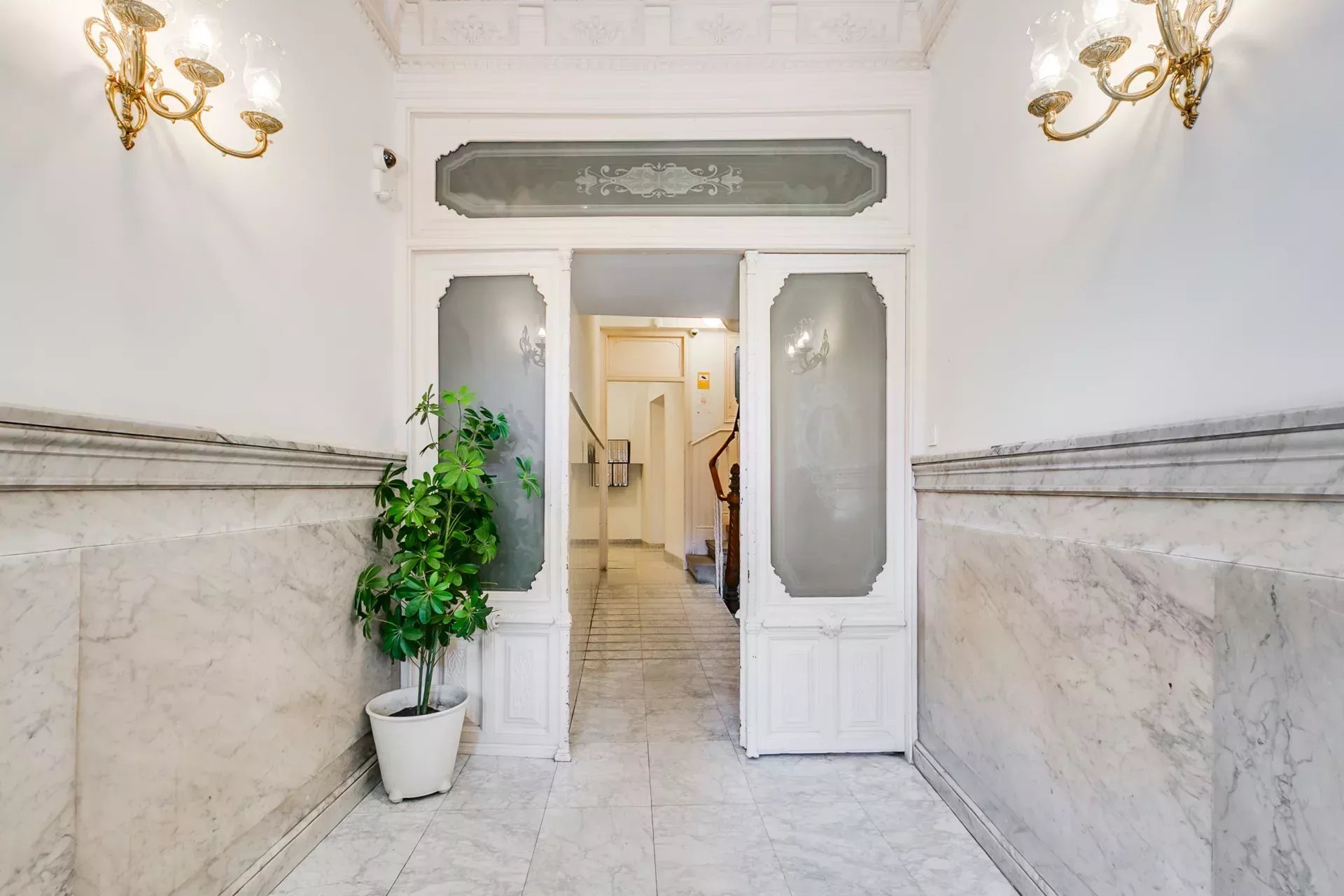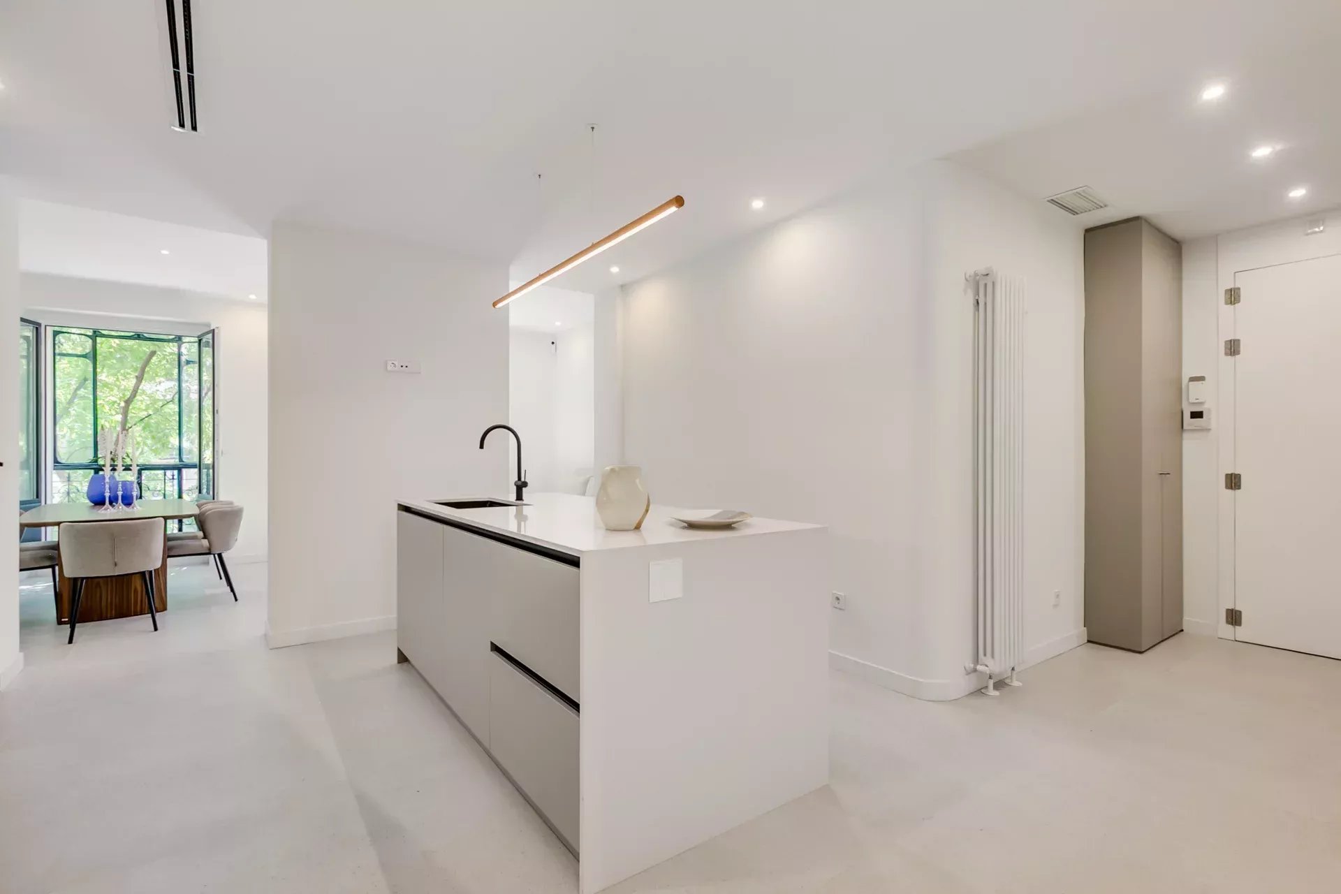 The renovation has preserved the property’s original character while enhancing it with modern details: Porcelanosa large-format floors in common areas and natural wood in bedrooms, designer radiators, ducted air conditioning with room-by-room control, and individual gas heating.