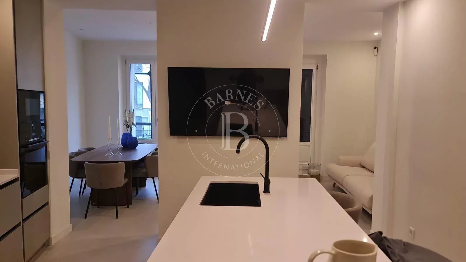 Located on a first floor with the height of a second, this property combines the charm of a historic building with a comprehensive contemporary renovation featuring high-end materials and meticulous attention to detail.