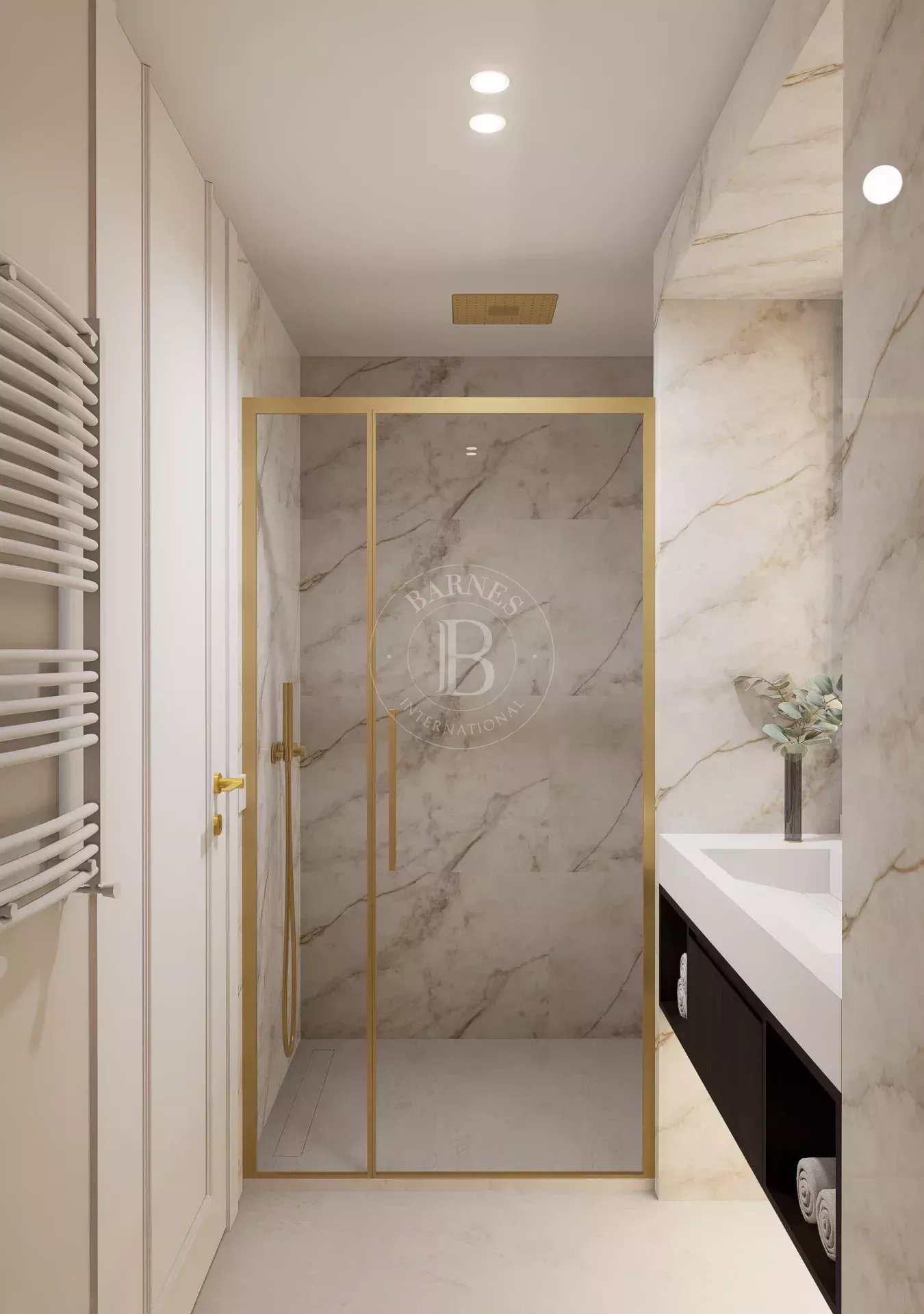 The master suite, designed as an intimate and bright retreat, includes a dressing room that provides comfort and spaciousness. Each room has been designed to ensure fluidity, comfort, and elegance, thanks to the careful selection of fine materials and contemporary design.