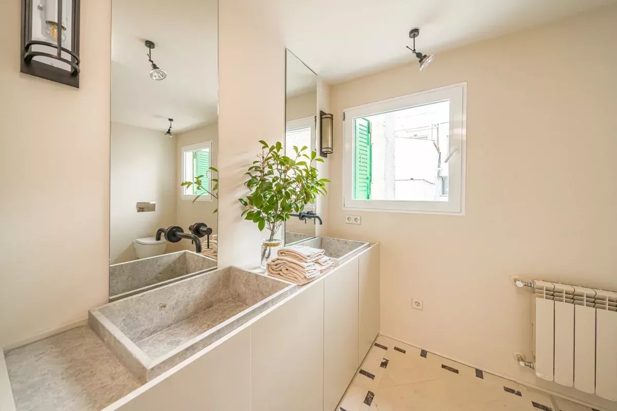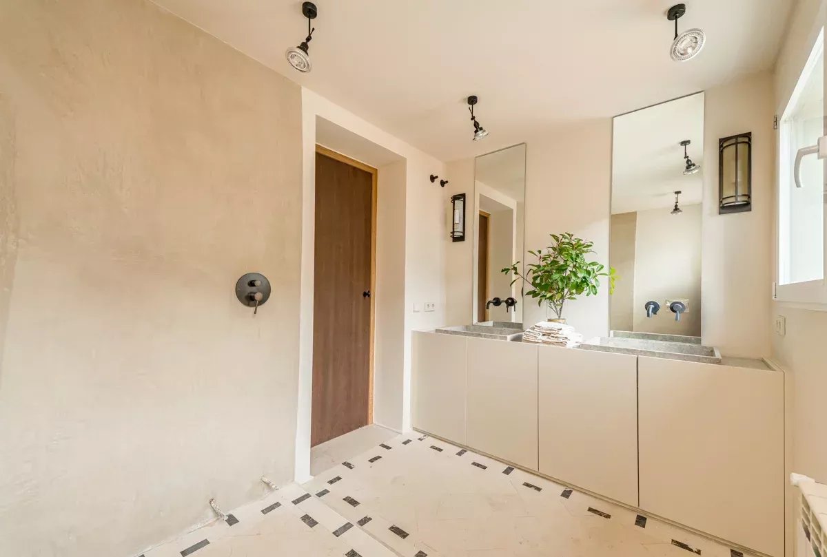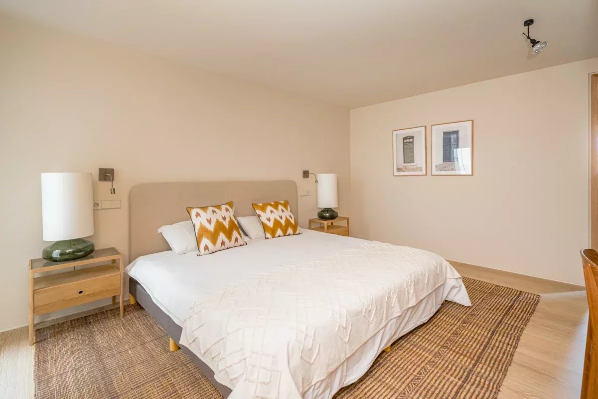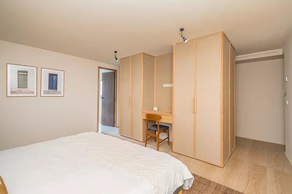 The two en-suite bedrooms stand out for their generous size, custom built-in wardrobes, and bathrooms clad in natural stone, offering an atmosphere of comfort, privacy, and sophistication in every detail.