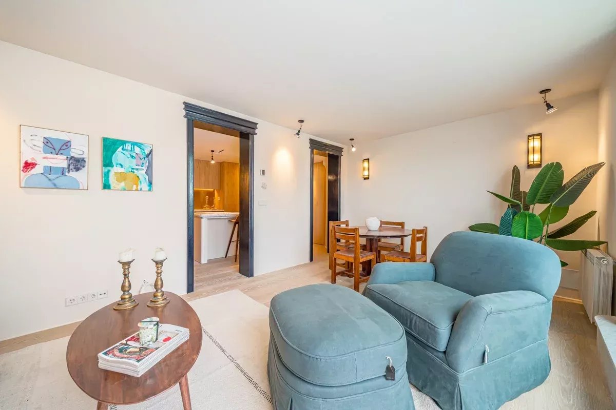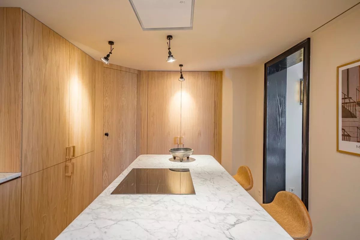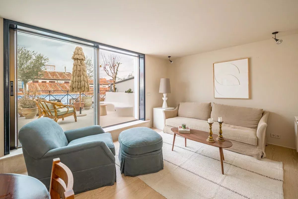 Designed by interior designer Tristan Domecq, this luxurious residence boasts a refined selection of natural materials and top-quality finishes. The terrace flows seamlessly into a bright living-dining area, creating an ideal space for both relaxation and entertaining.