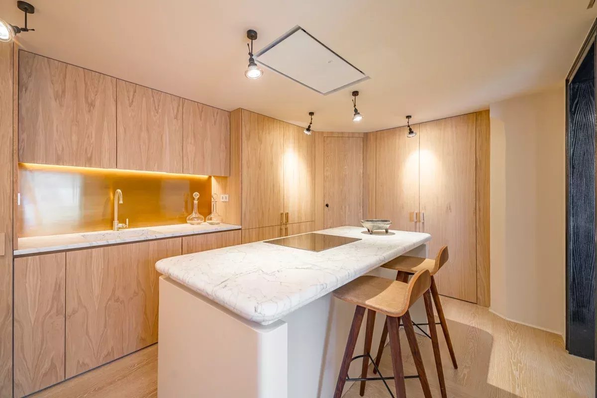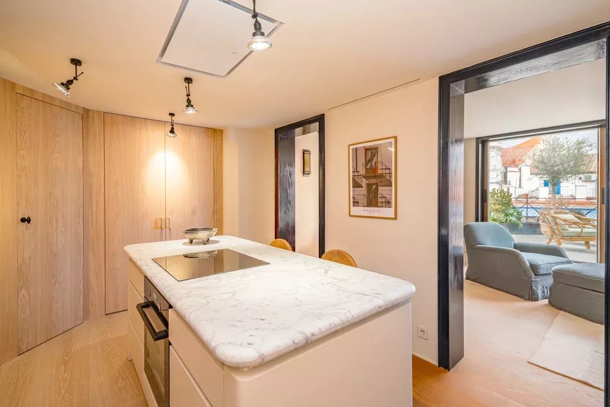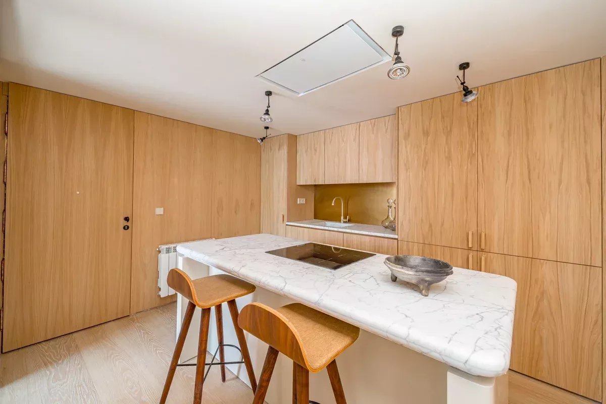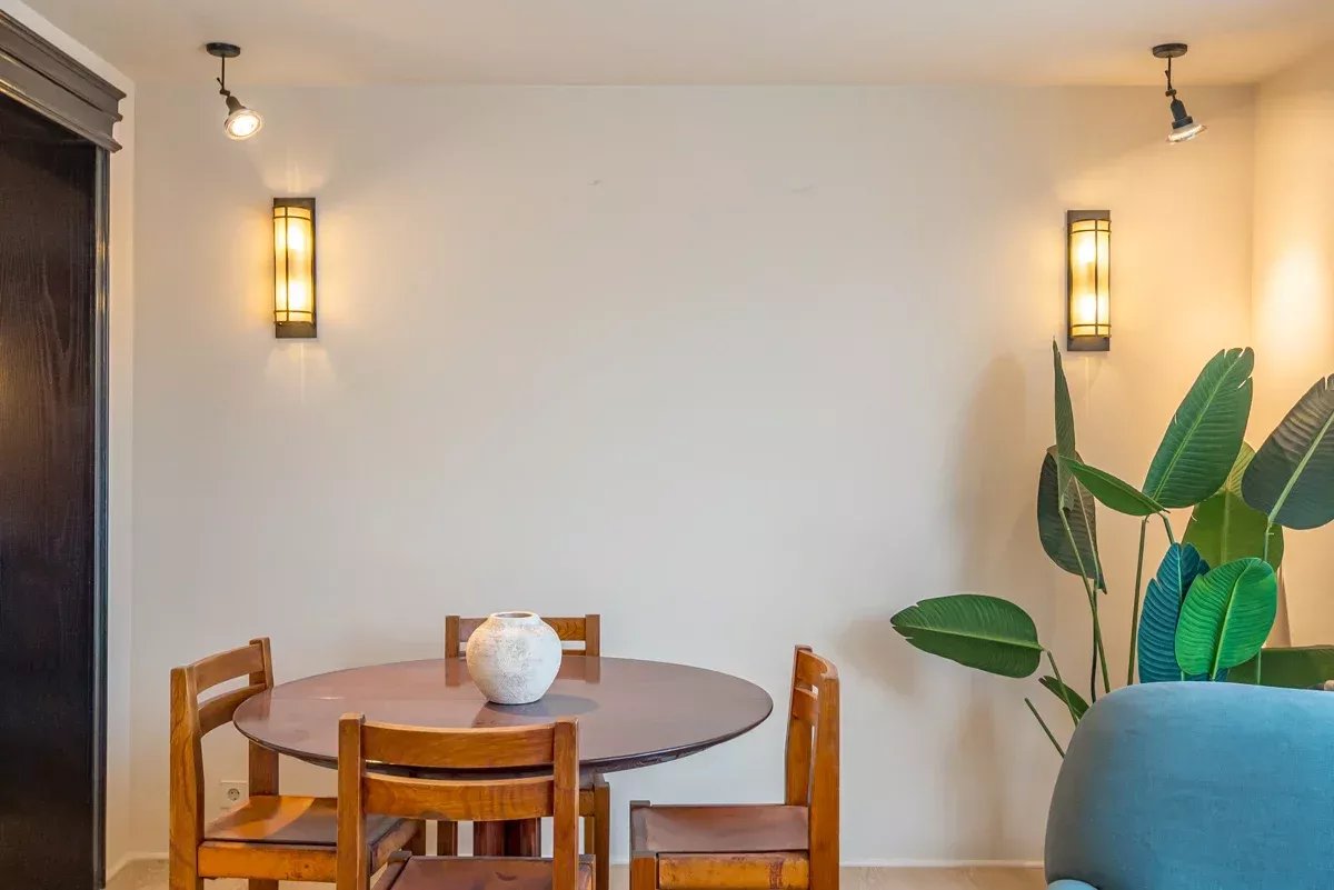 Designed by interior designer Tristan Domecq, this luxurious residence boasts a refined selection of natural materials and top-quality finishes. The terrace flows seamlessly into a bright living-dining area, creating an ideal space for both relaxation and entertaining.
