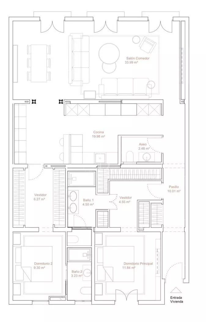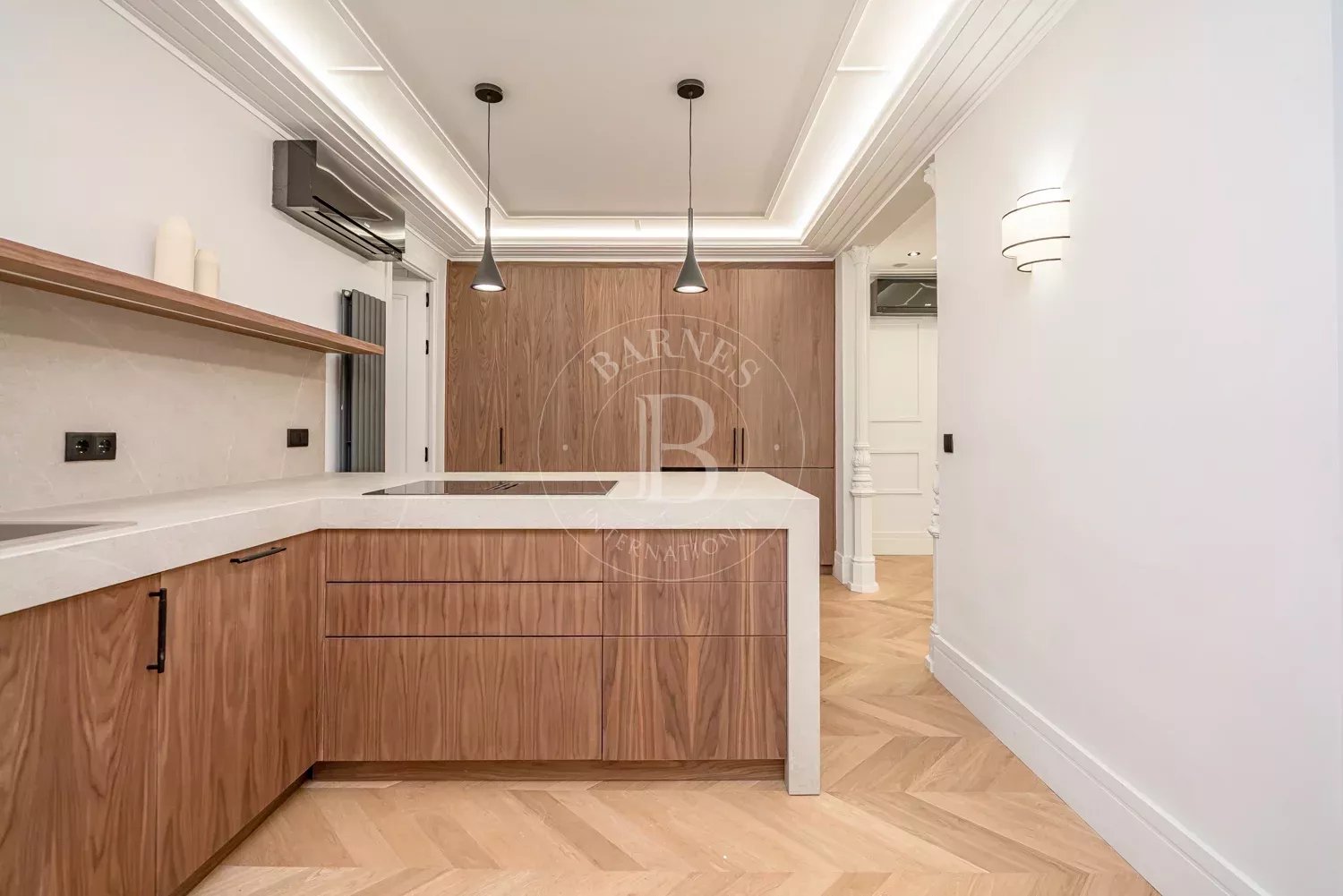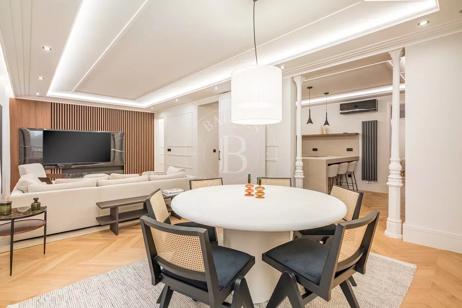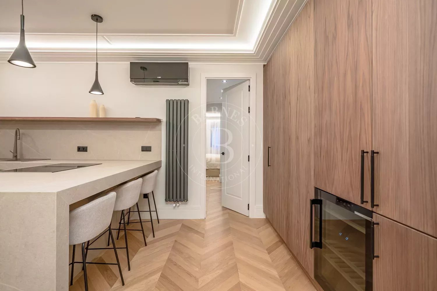 This elegant renovated residence stands out as a high-end property located on one of Madrid’s most iconic addresses. Situated on a third floor and offering an approximate surface area of 150 sqm, the apartment is distinguished by its excellent layout, abundant natural light and carefully curated interior design. The fully exterior living area, facing south, opens onto Calle Goya through two classic balconies and a generous bay window that floods the space with natural light throughout the day. The spacious and well-balanced living and dining room flows seamlessly into a semi-integrated kitchen with a contemporary design, fitted with high-quality materials and premium appliances, creating an ideal setting for both everyday living and entertaining.