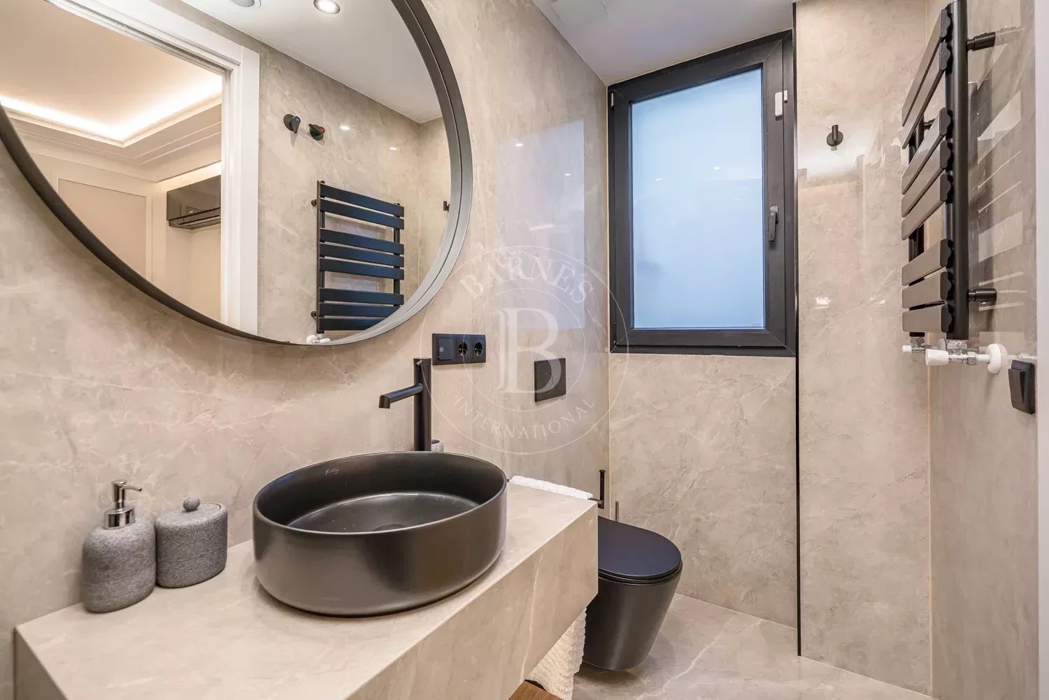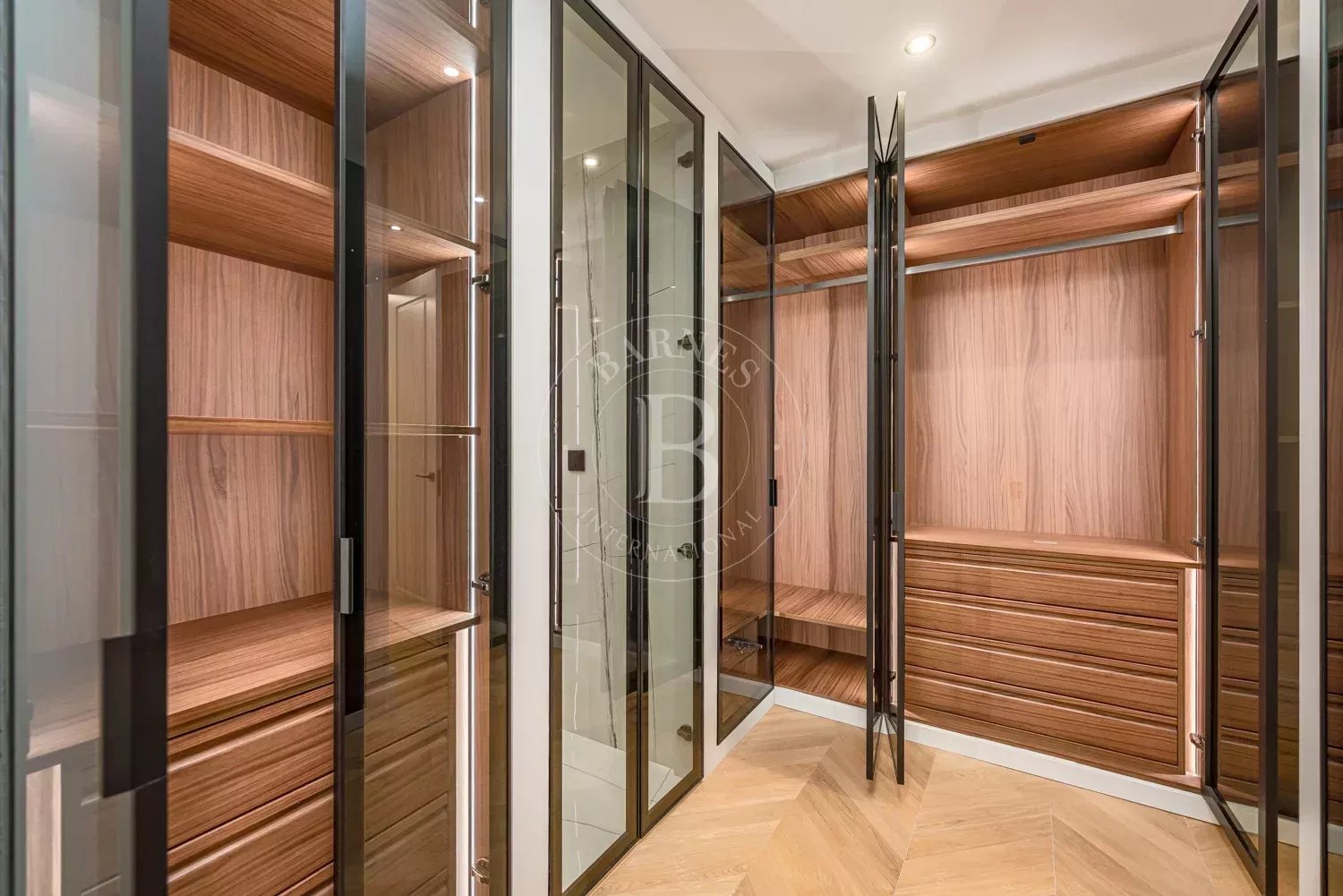 The private area comprises two generous double bedrooms, each with its own en-suite bathroom and dressing room, conceived as true private retreats offering comfort and tranquillity. The property also features a guest powder room and an efficient internal circulation that enhances the overall sense of space and order. The recent renovation, combined with elegant and modern furnishings, allows the apartment to be enjoyed immediately, blending functionality, aesthetics and character in perfect balance.