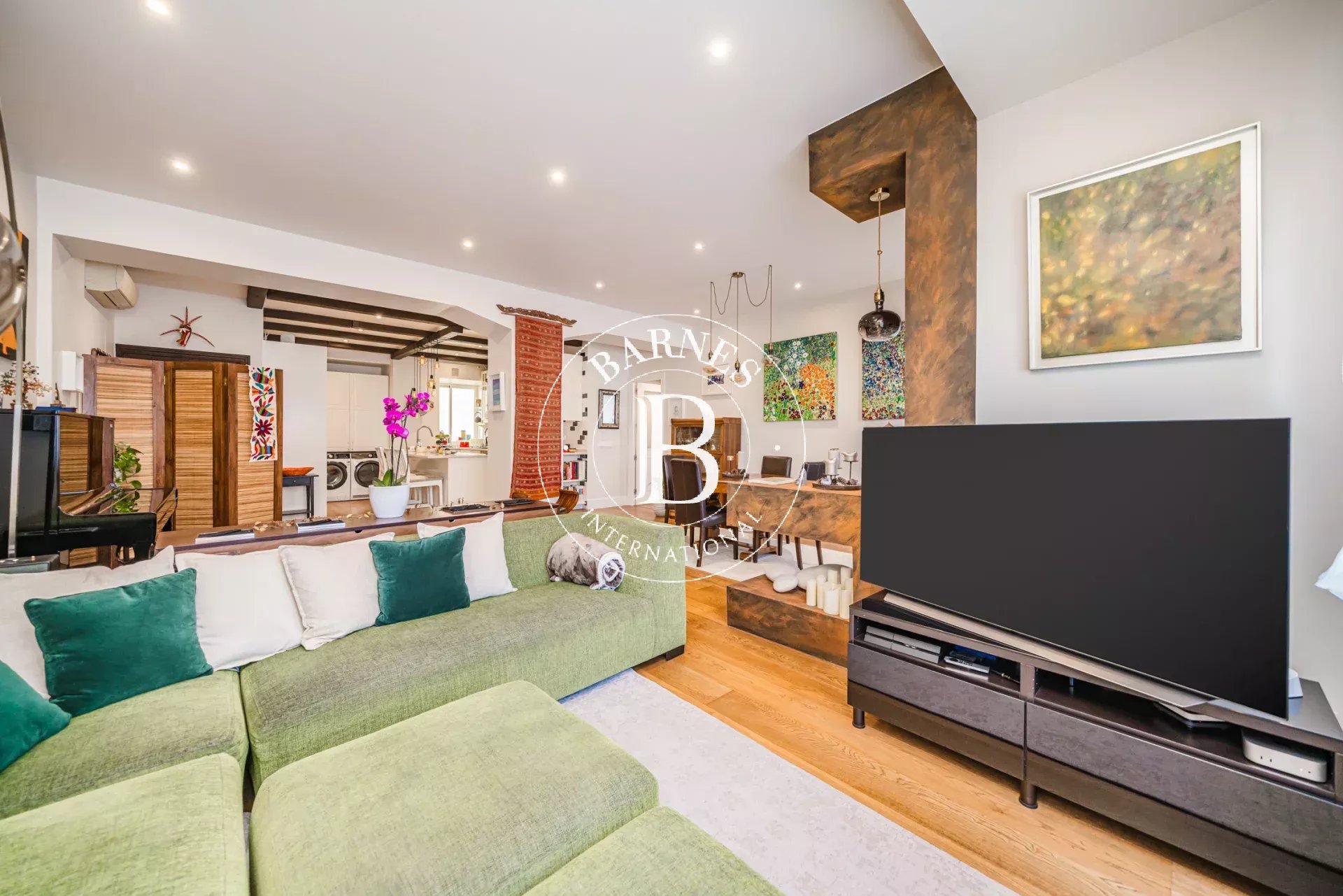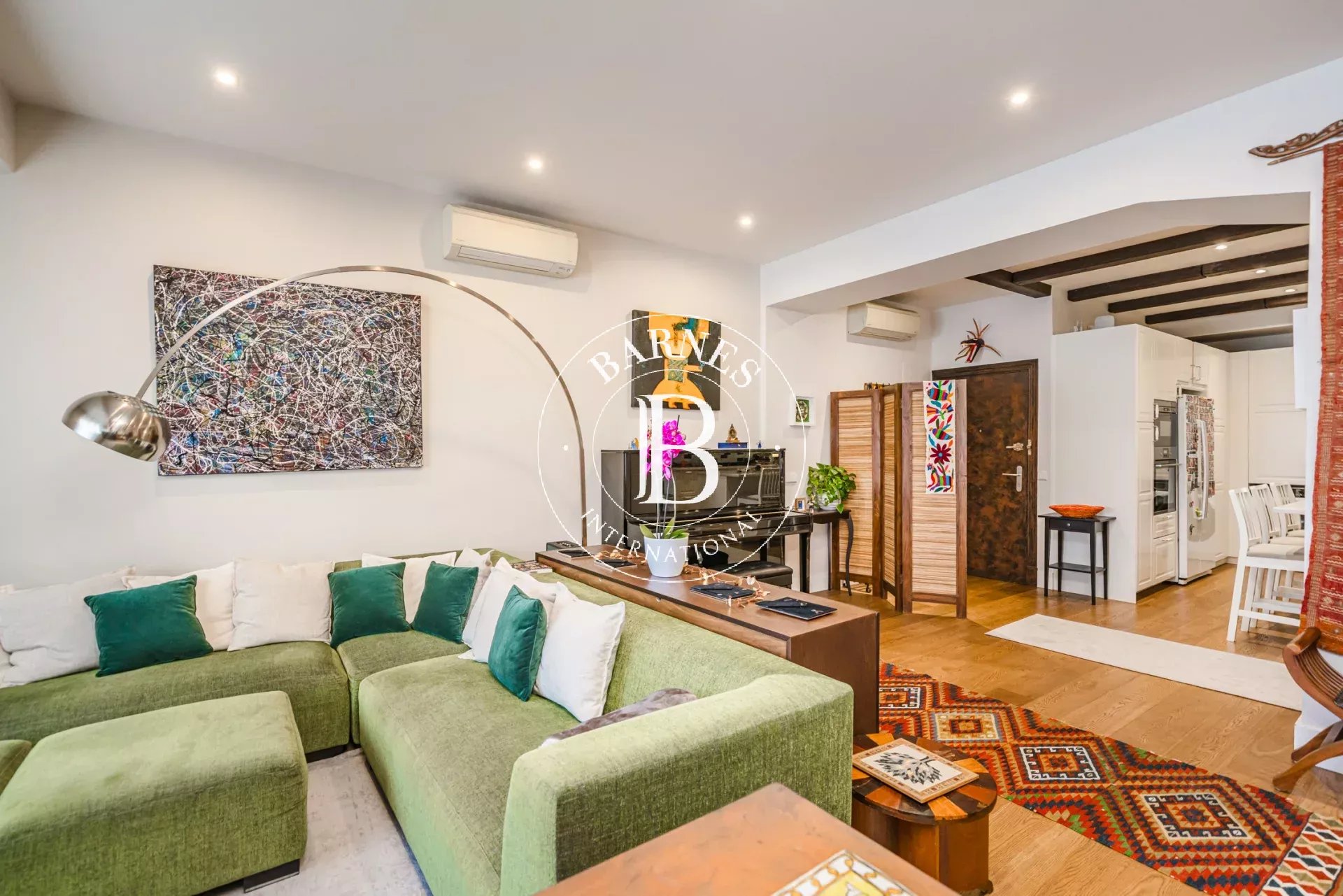 The apartment offers 150 sqm of built area and an excellent layout. It features a spacious open-plan living and dining area, seamlessly integrated with a stunning fully equipped American-style kitchen with a central island, perfect for both everyday living and entertaining.
