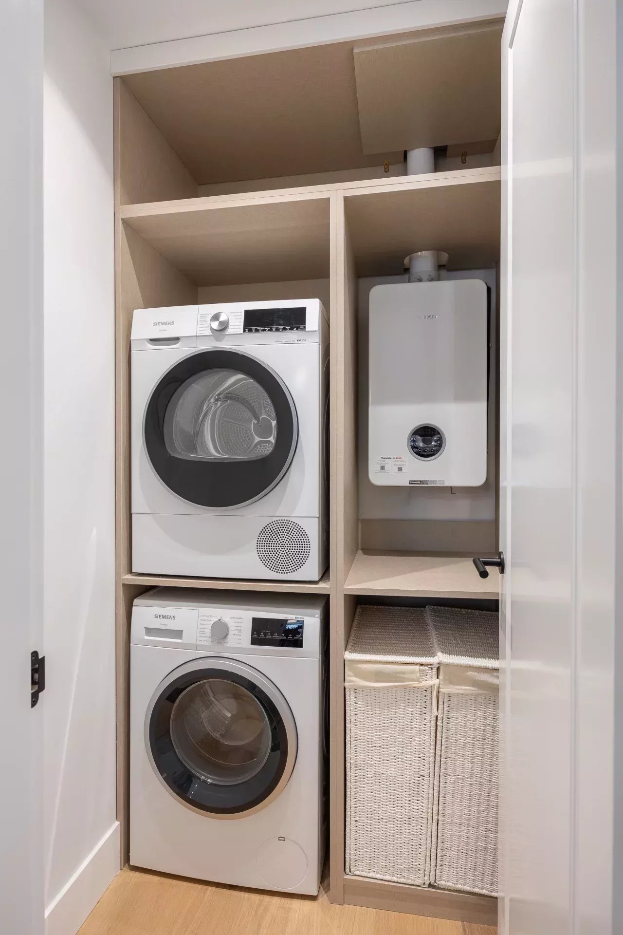 Notable finishes include natural wood flooring, Climalit windows for optimal thermal and acoustic insulation, and centralized ducted air conditioning, ensuring comfort all year round.