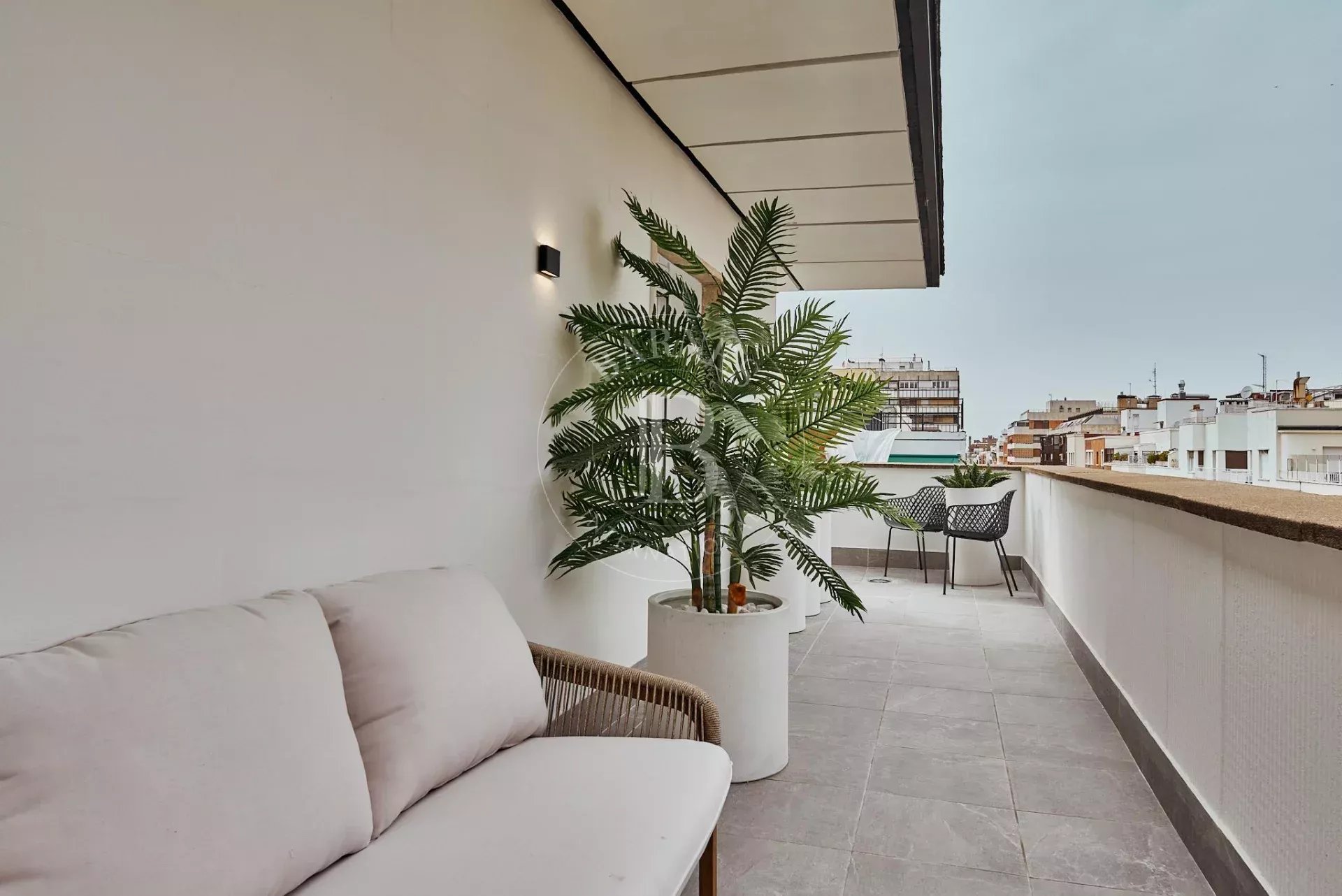 Located on the seventh exterior floor, this property stands out for a truly rare feature in the area: a spectacular 55 m² terrace that opens directly from the living area, transforming the home into a unique space to enjoy outdoor living in the very center of Madrid. Its height, northwest orientation and generous outdoor space provide a pleasant sense of light and privacy.