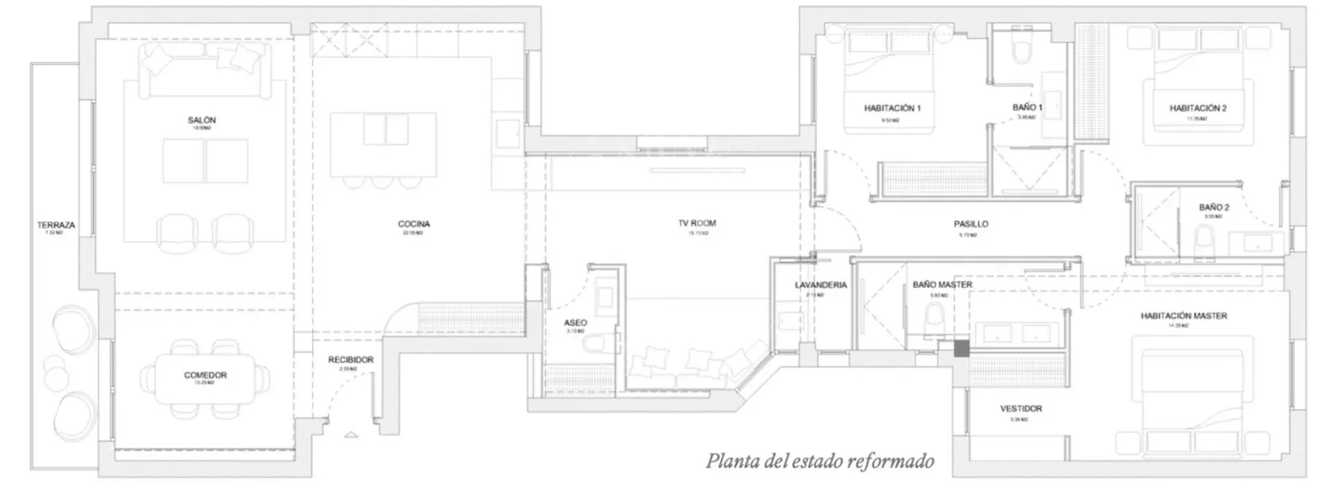 BARNES Madrid presents an exclusive property undergoing comprehensive renovation located in the prestigious Recoletos neighbourhood in the Salamanca district. Situated on the fifth floor, this property stands out for its spaciousness, brightness and carefully designed contemporary interior that combines elegance, functionality and high-quality materials. With a surface area of 171 m², the property will be delivered fully furnished and decorated, offering a sophisticated space that is ready to enjoy.