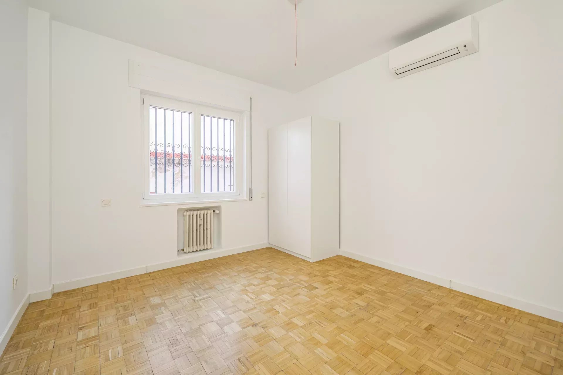 Notable finishes include the original parquet flooring, aluminum windows with thermal break, and modern air-conditioning systems. The reinforced security entrance door adds an extra layer of protection.