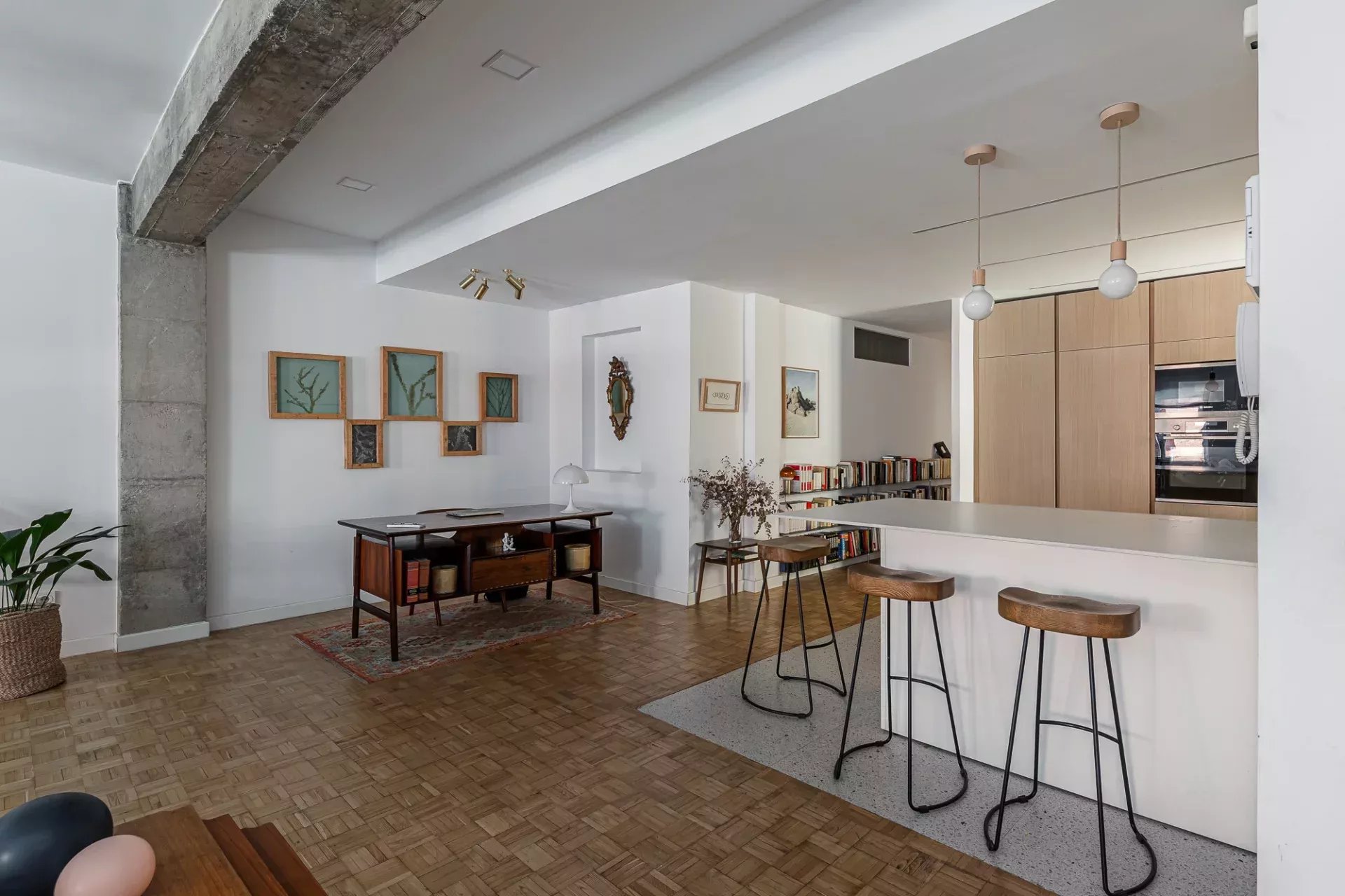 A spectacular loft-style space integrates the living room, dining area, and kitchen into a spacious, light-filled environment—ideal for enjoying with family or entertaining friends.