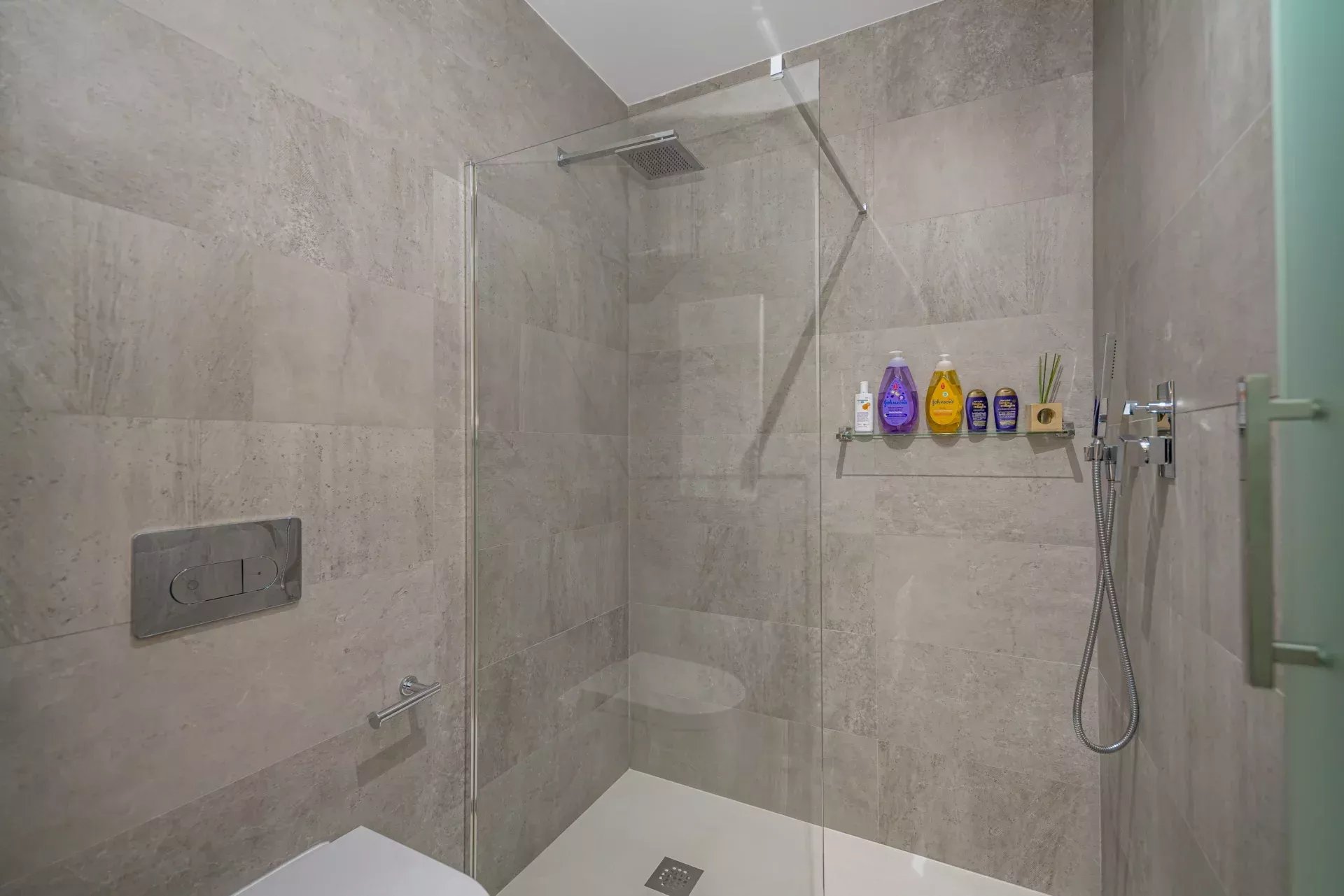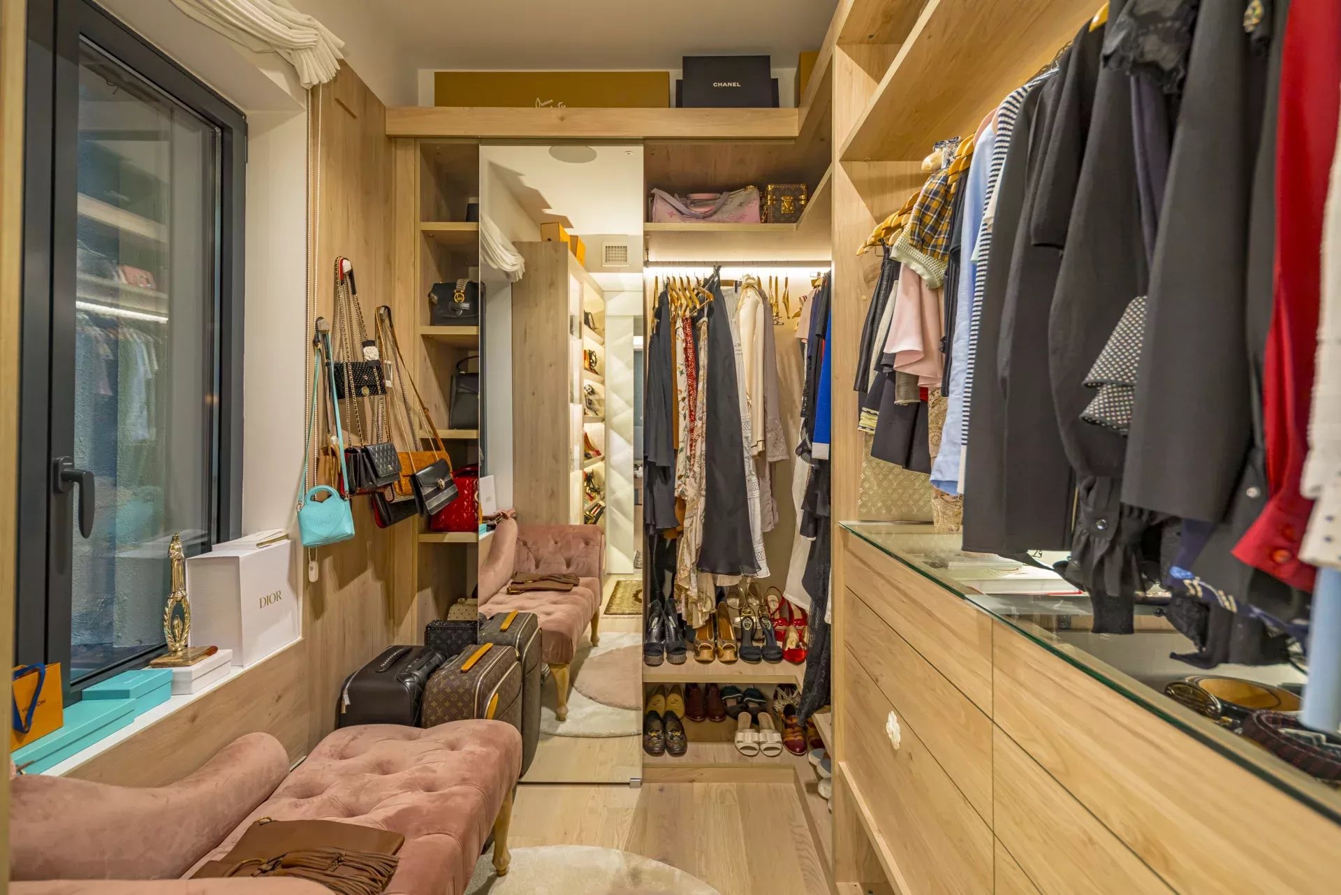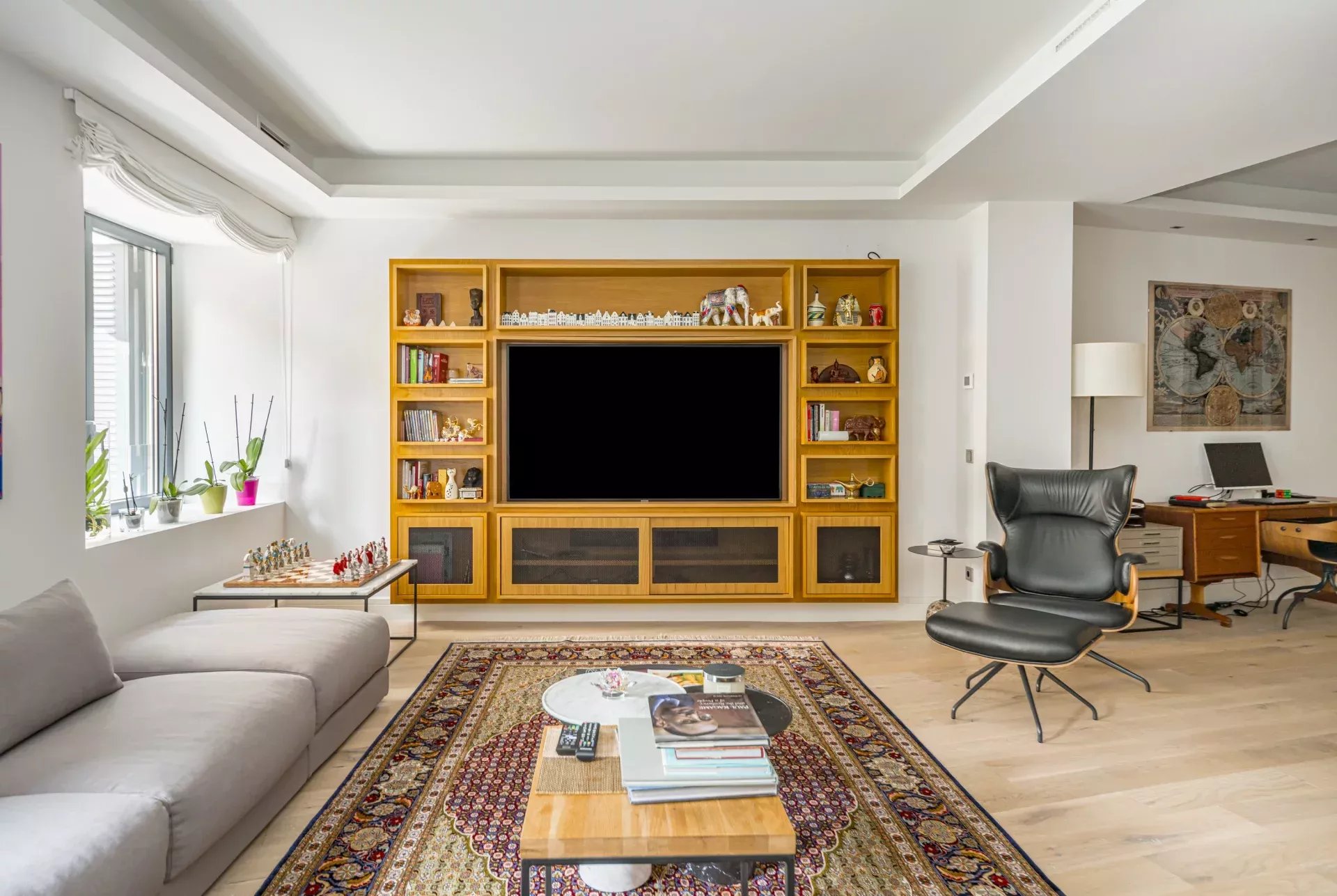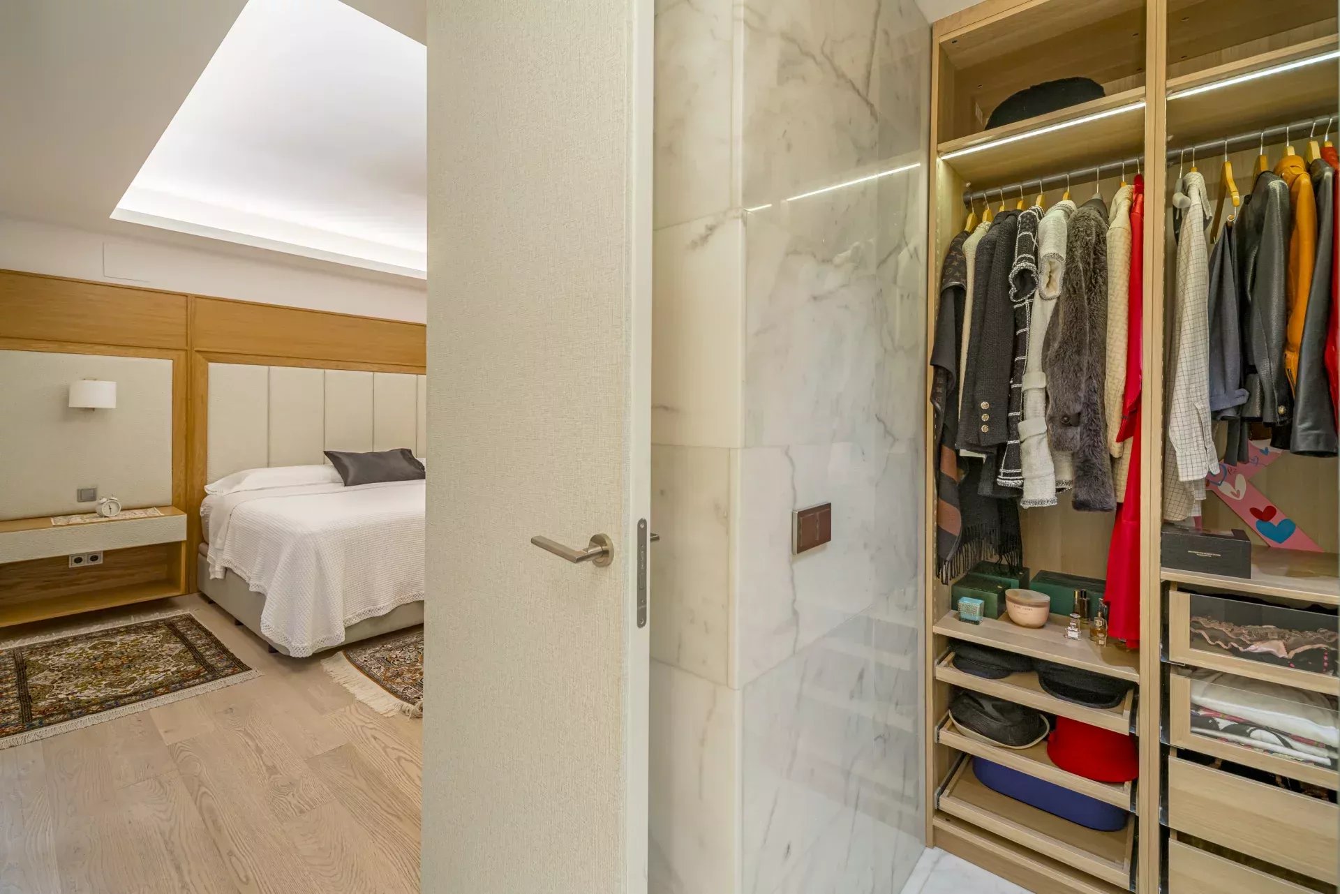 The furnished apartment with home automation technology, consists of 2 bedrooms (formerly 3) with en suite bathroom and a guest toilet. The third bedroom was renovated into a spacious and luxurious dressing room.