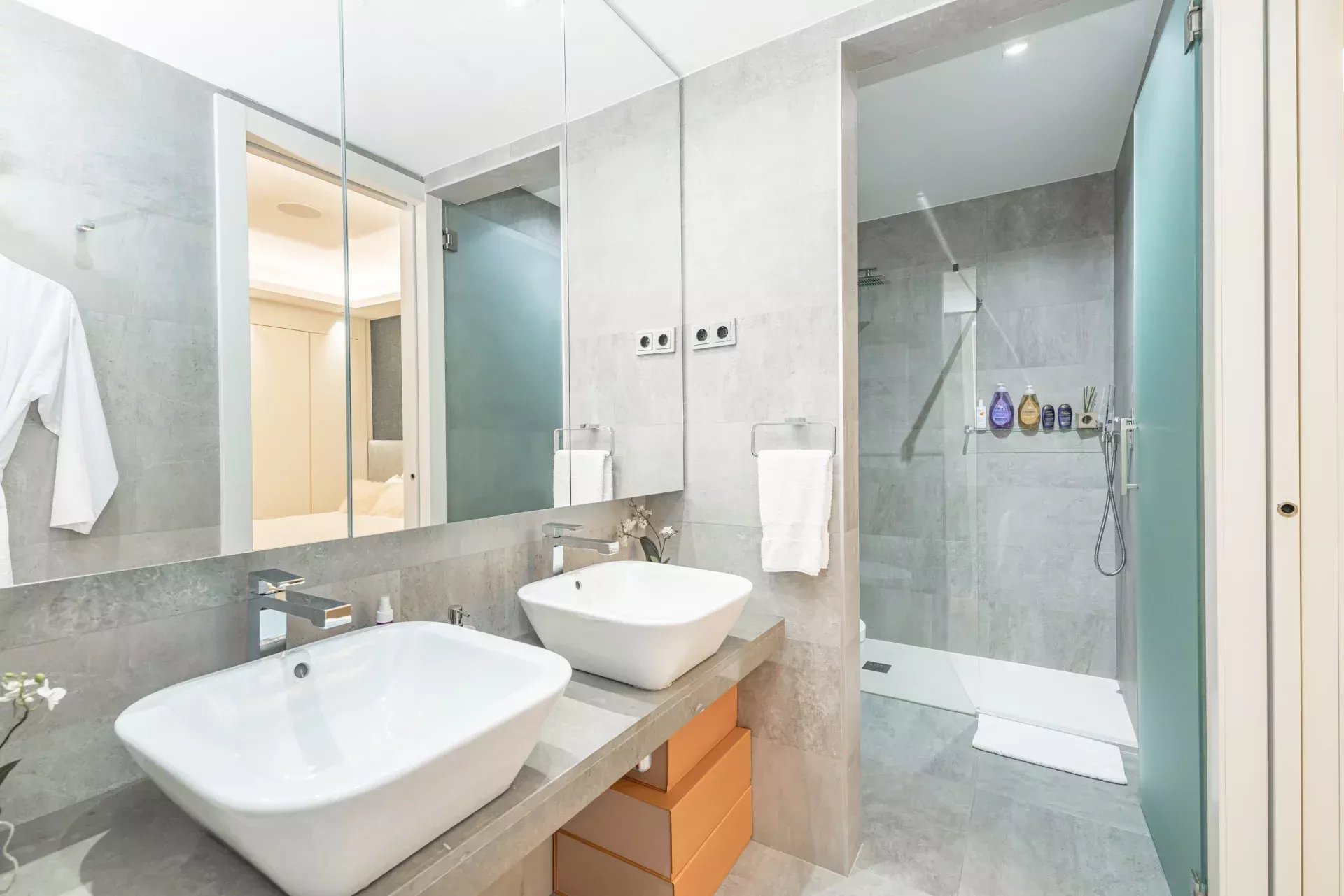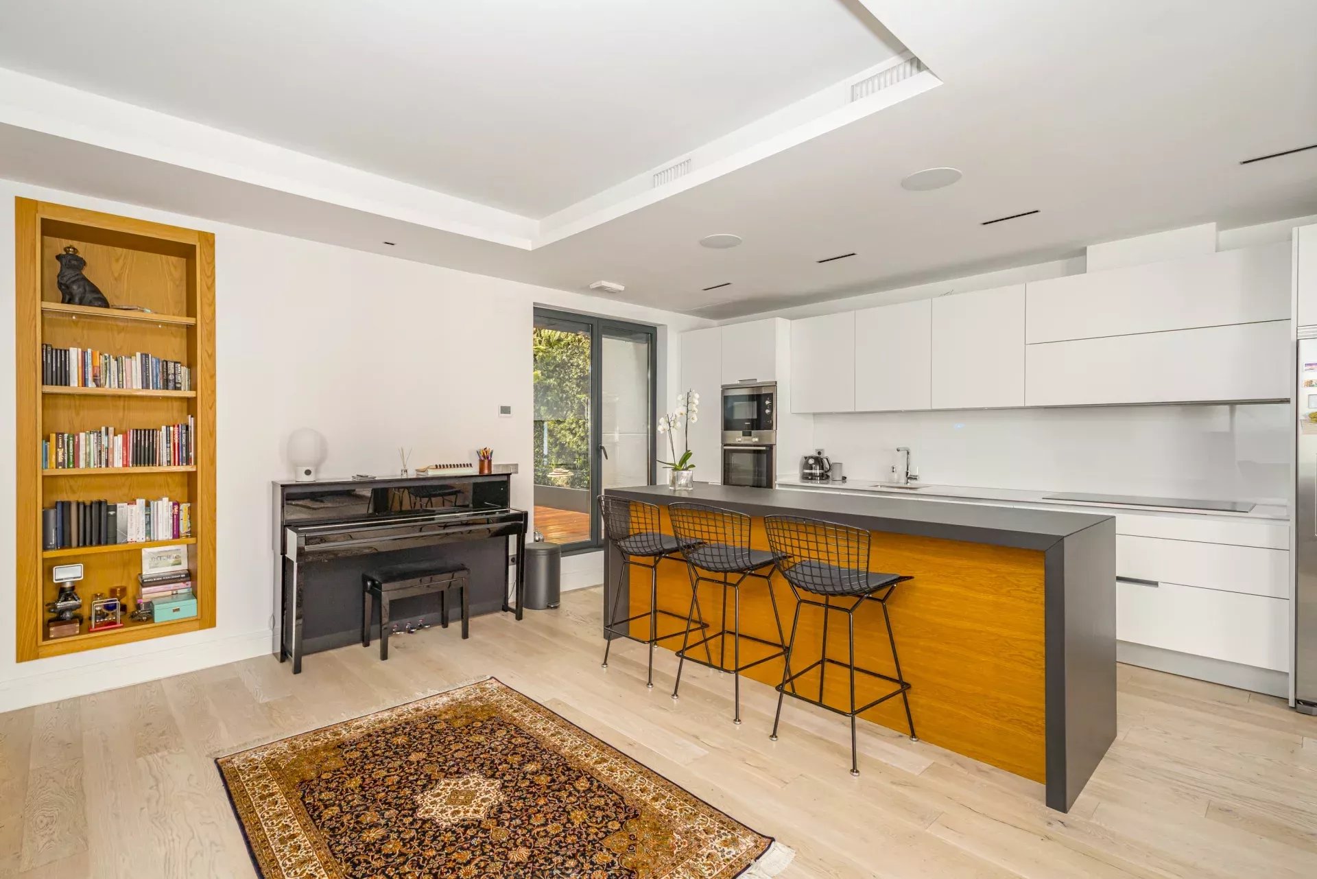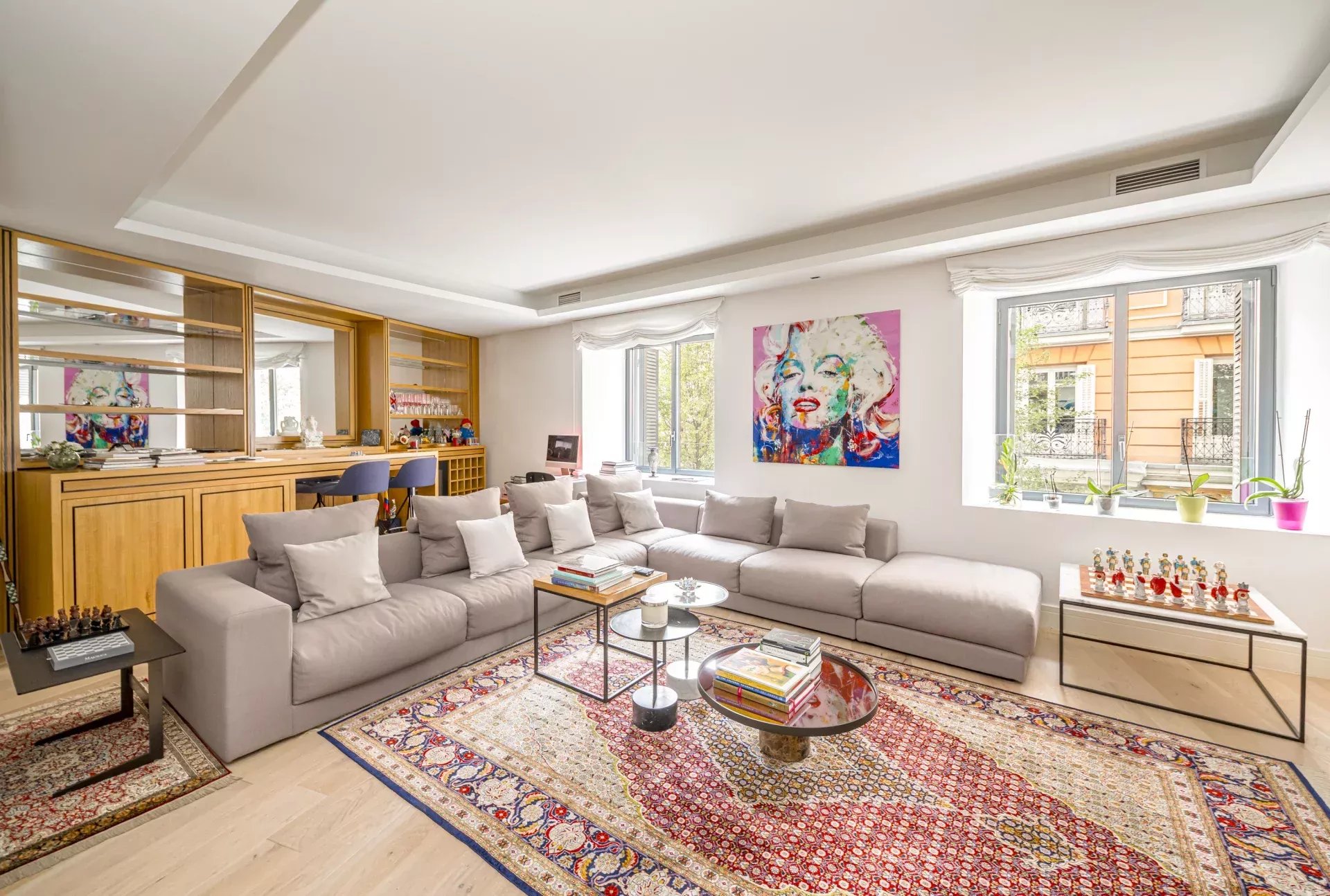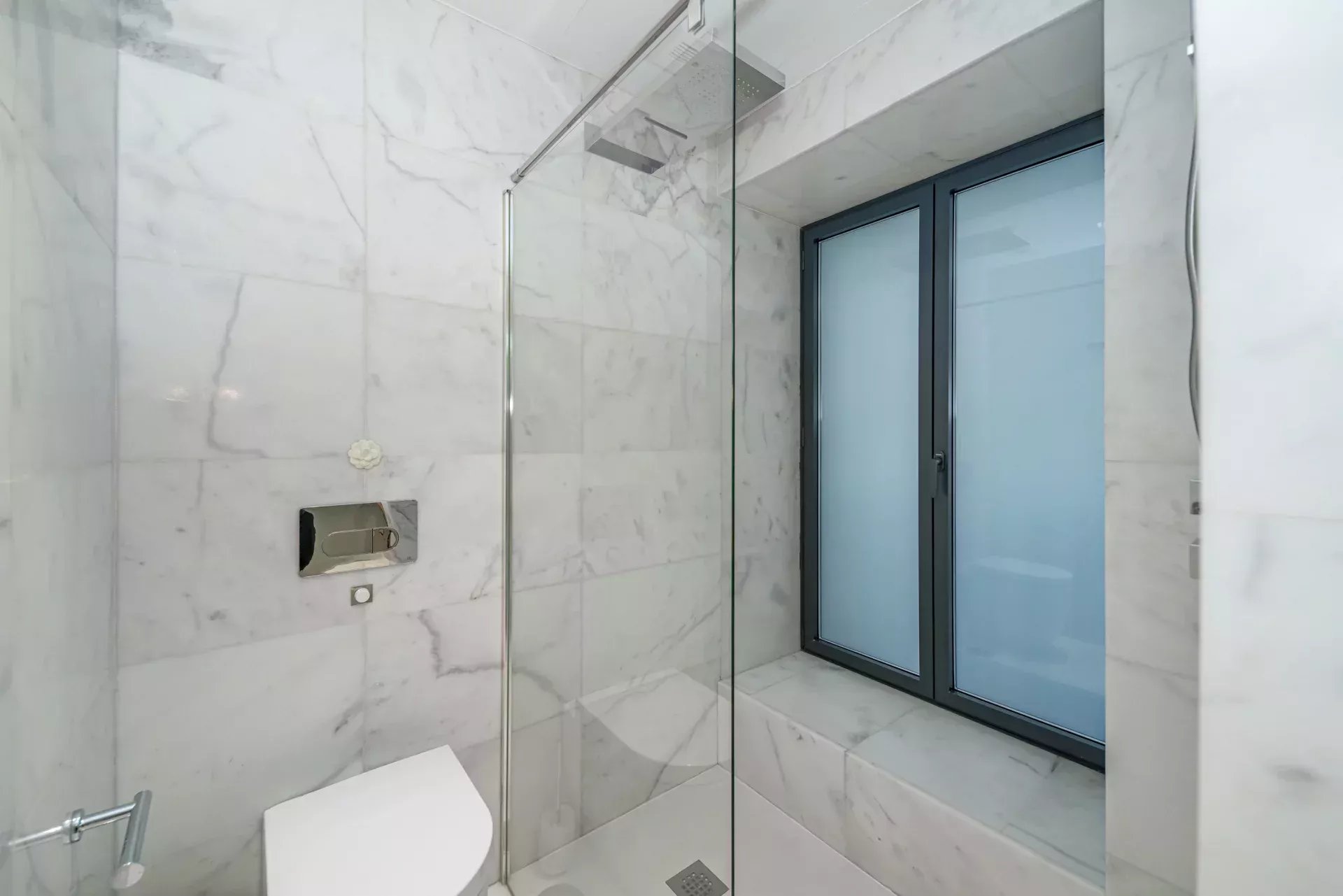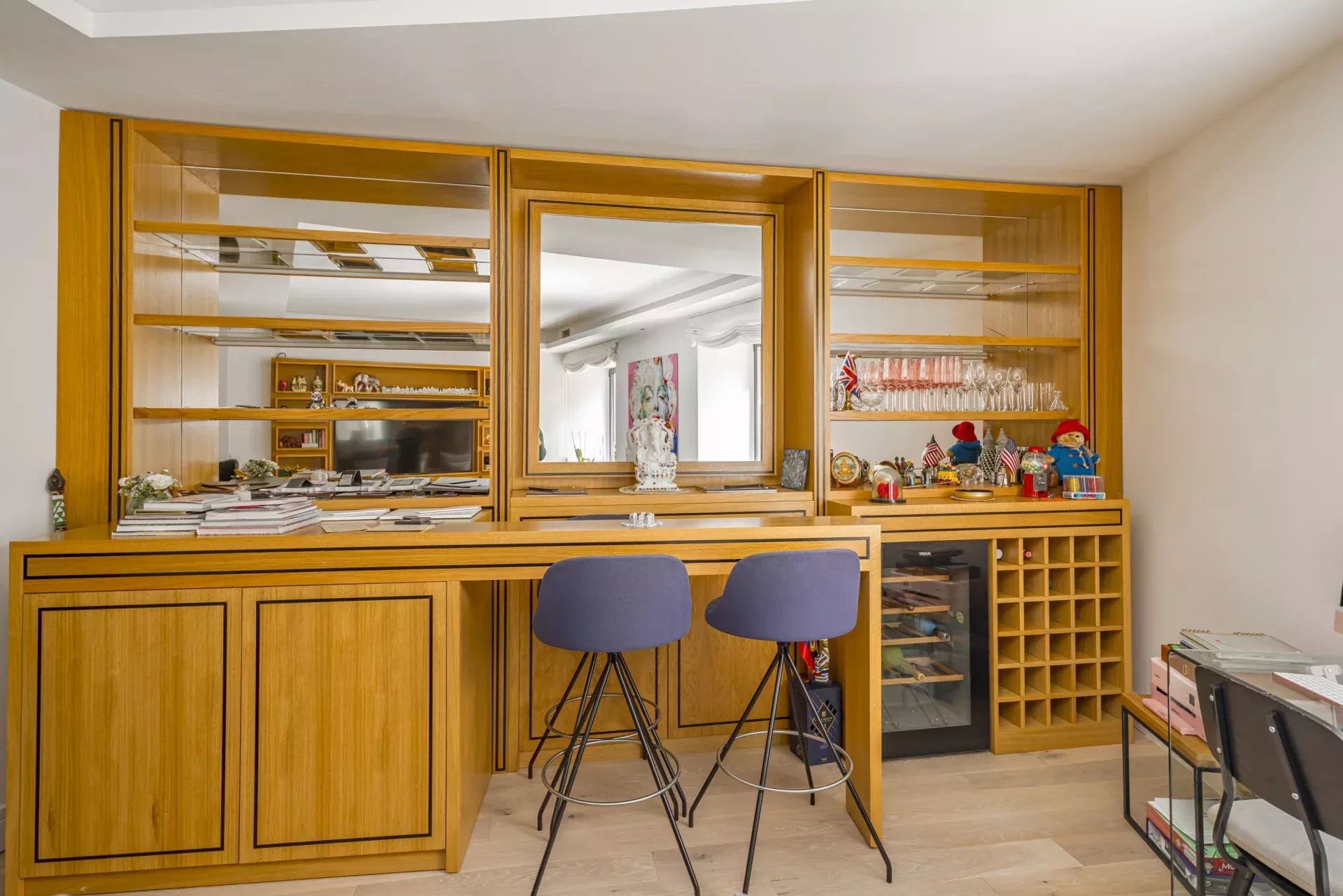 The furnished apartment with home automation technology, consists of 2 bedrooms (formerly 3) with en suite bathroom and a guest toilet. The third bedroom was renovated into a spacious and luxurious dressing room.