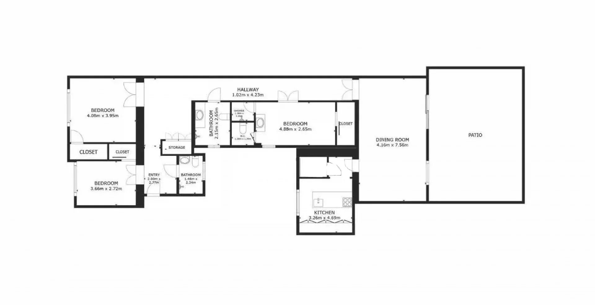 The living area consists of a spacious, light-filled living and dining room, designed to maximize both comfort and functionality.