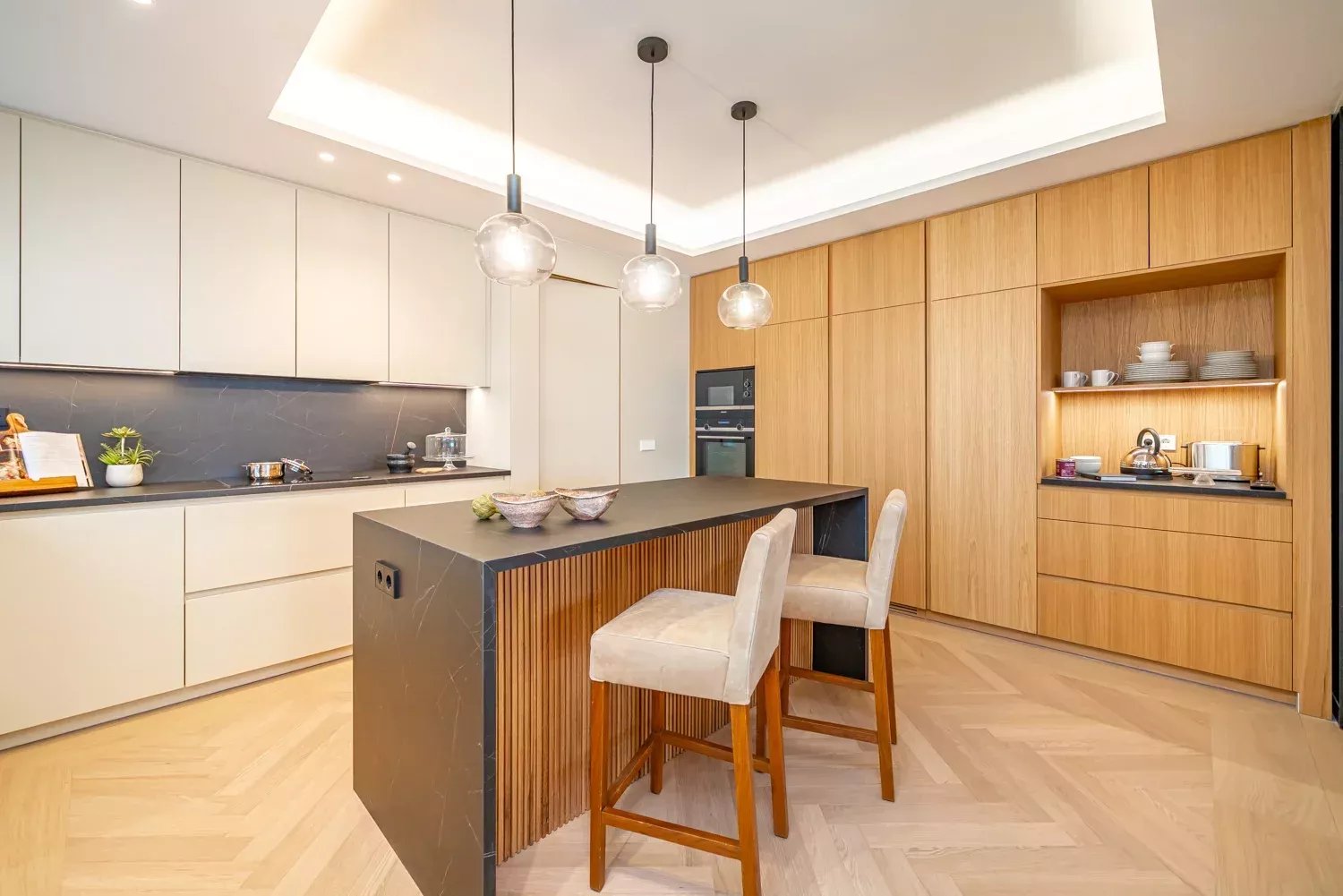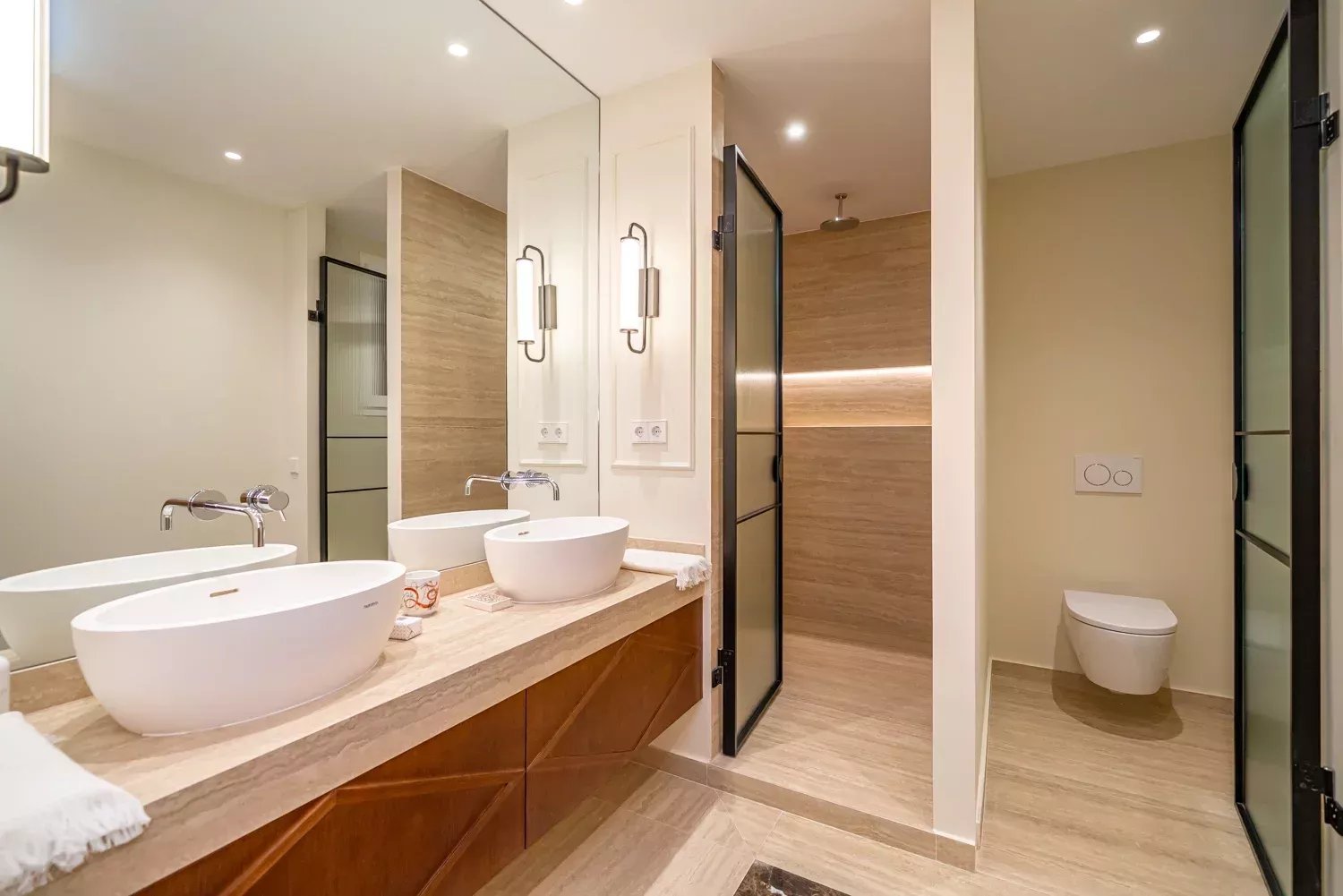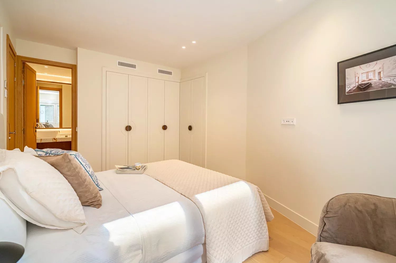 The resting area offers three spacious bedrooms, all with en-suite bathrooms and walk-in closets. The master bedroom, with direct terrace access, includes a private sitting area for moments of relaxation.