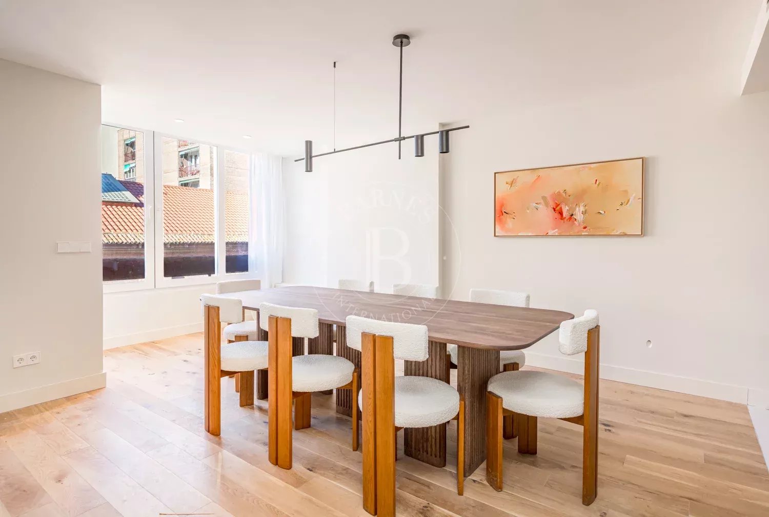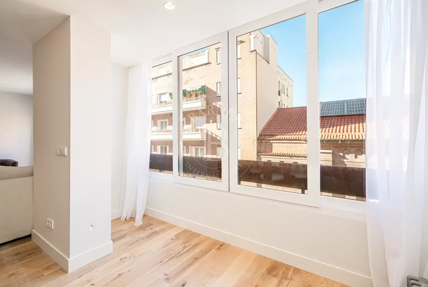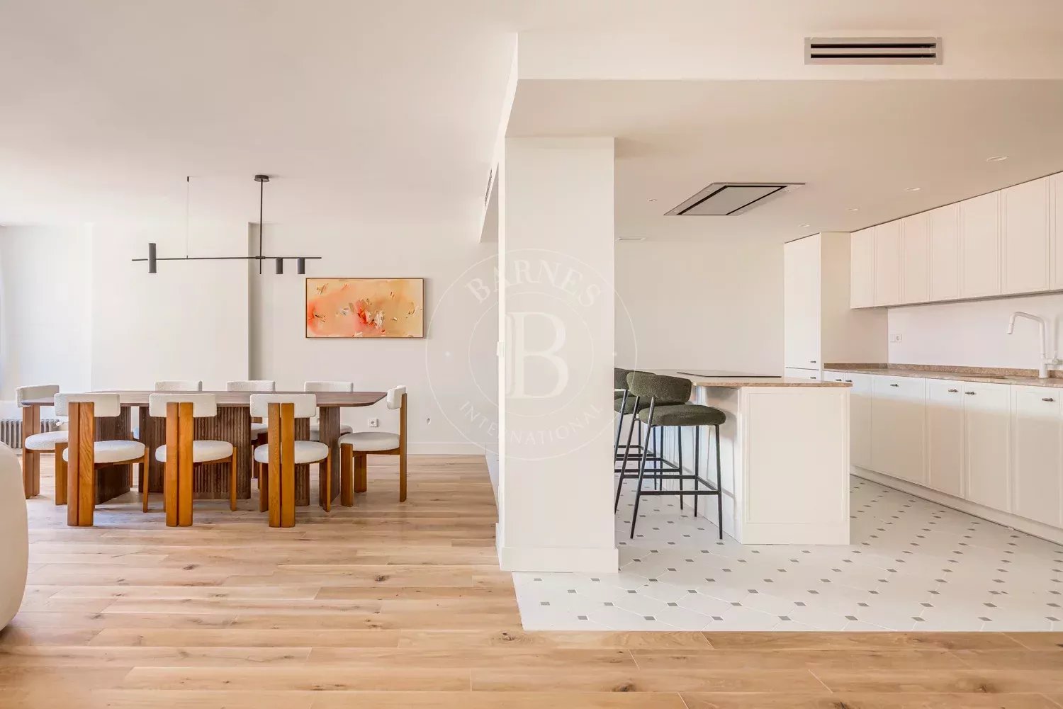 BARNES Madrid presents a spectacular property that has been completely renovated to a medium-high standard, designed by an architectural firm to offer spaciousness, light and a contemporary aesthetic with clean lines. With a generous floor area and a very balanced layout, the property stands out for its large open social area, where the living room, dining room and kitchen are integrated into a fluid and bright space, enhanced by its pleasant open views, which provide a constant feeling of spaciousness and connection with the outside.