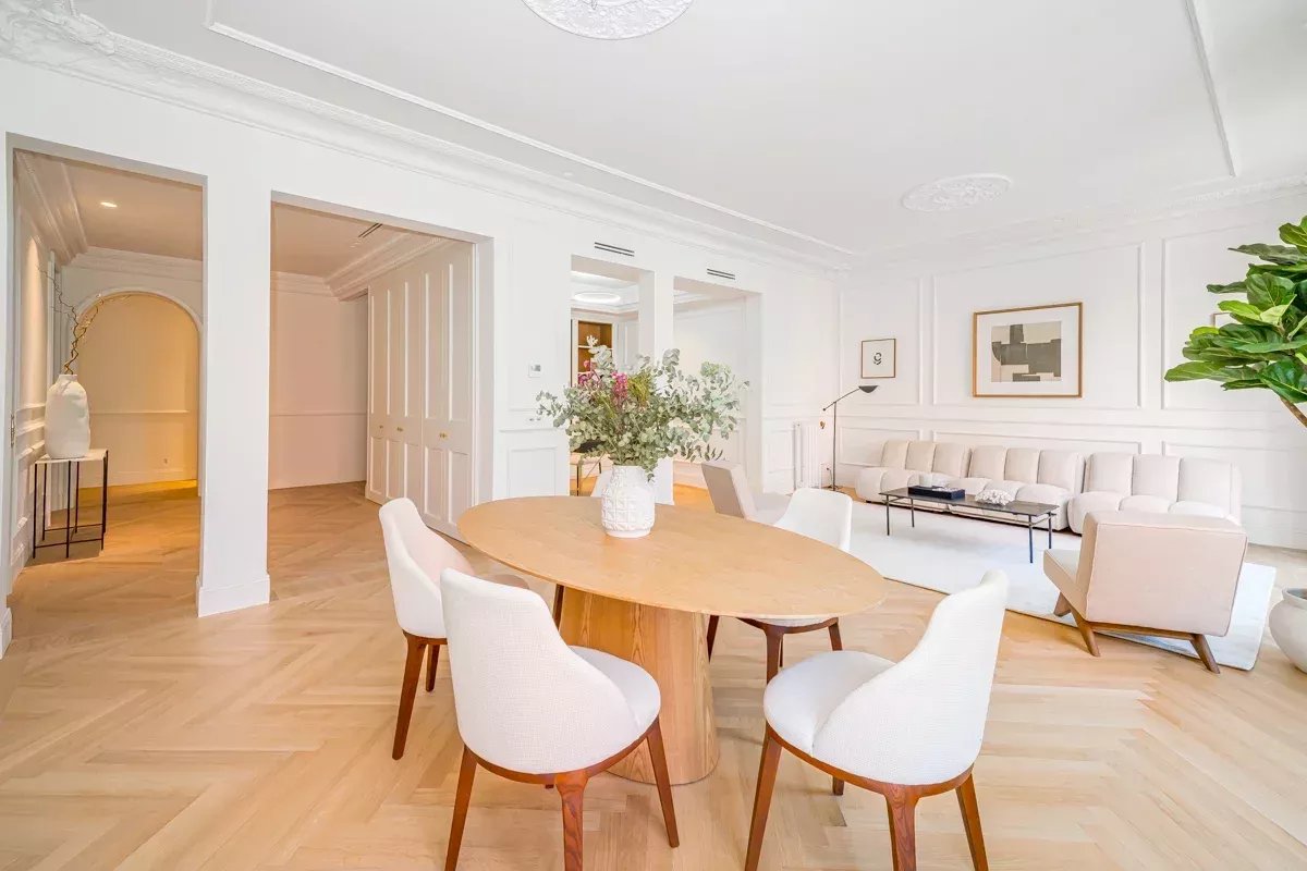 Located in an elegant 19th-century stately building with a classic facade and a resident doorman, this residence stands out for its high ceilings, four exterior balconies facing south, and abundant natural light throughout all its spaces. It combines timeless elegance, functionality, and exceptional finishes.