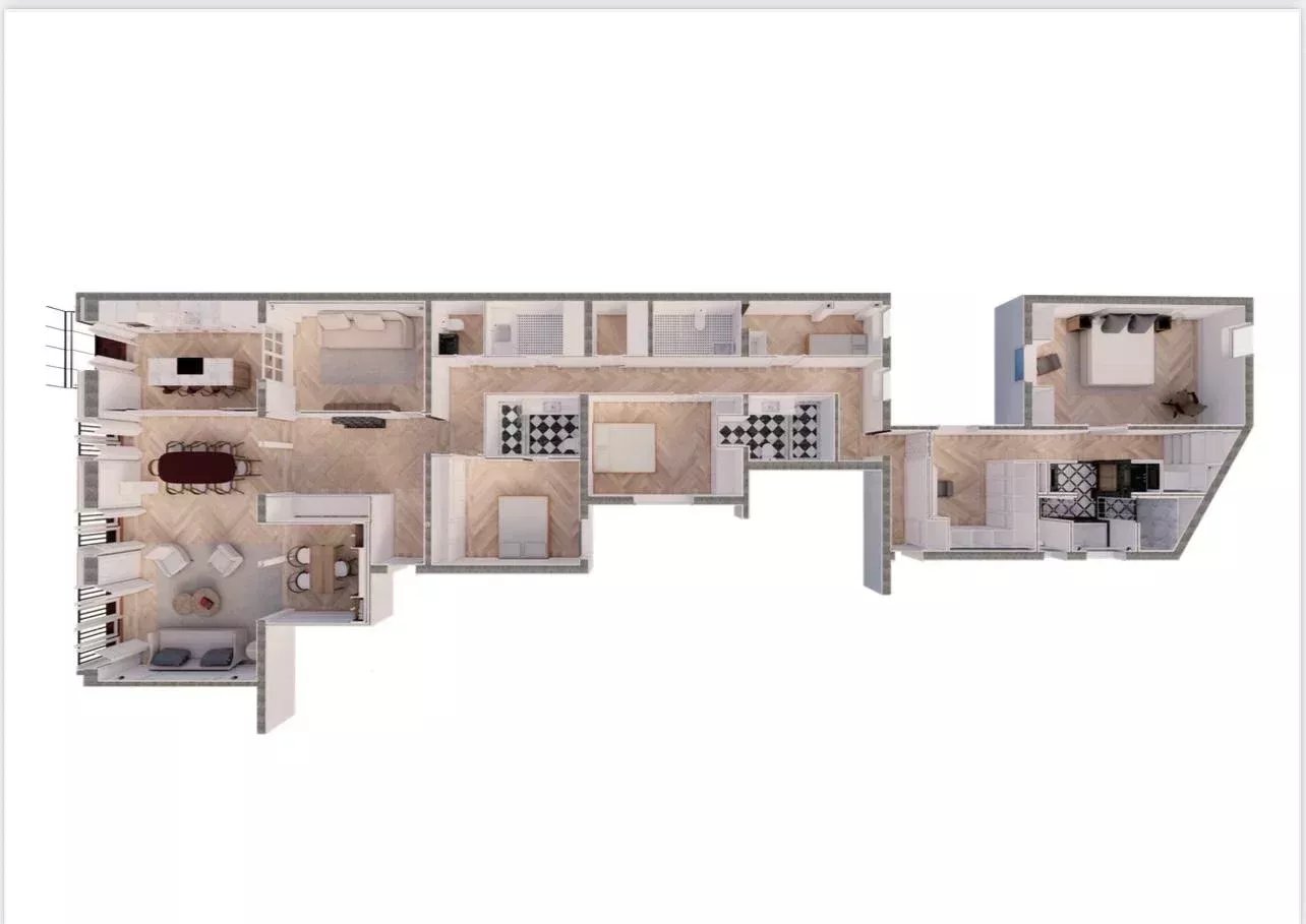 Upon entering, an oak herringbone floor hall leads to a sequence of spacious and sophisticated rooms: living room, dining room, and kitchen connected by elegant sliding doors, all opening onto balconies overlooking the street. The kitchen, clad in Carrara marble, blends contemporary design with professional functionality. It also includes an adjacent space perfect as an informal dining area, TV room, or playroom, as well as an independent library or office.