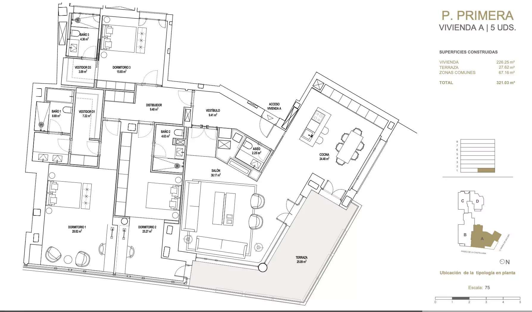BARNES presents Vivienda A, a refined and voluminous residence on the 1st floor of IQONIQ Castellana 68, offering over 226 m² of interior space and a generous wraparound private terrace. Located on a bright corner of the building, this fully exterior apartment offers a rare combination of classical proportions, outdoor continuity, and a prestigious address—ideal for a cosmopolitan lifestyle or long-term investment.