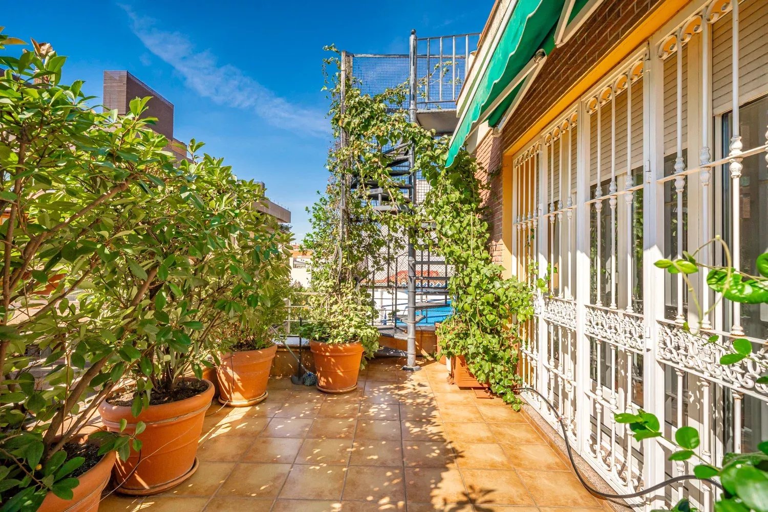 The second floor houses four large bedrooms, each with built-in wardrobes providing excellent storage space. Two of these bedrooms feature en-suite bathrooms for privacy and comfort. From this floor, you can access an impressive terrace — an outdoor oasis perfect for relaxing while enjoying city views.
