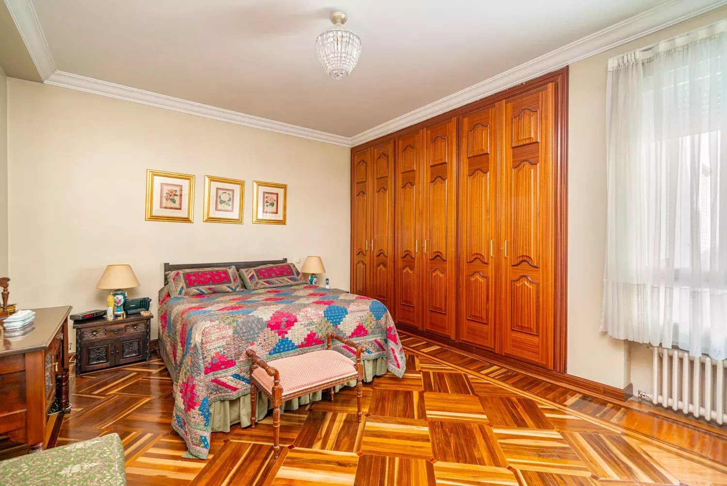 It features six bedrooms and four bathrooms, designed for those who value both space and functionality. Additionally, it includes a storage room in the same building and a large parking space in the adjacent building.