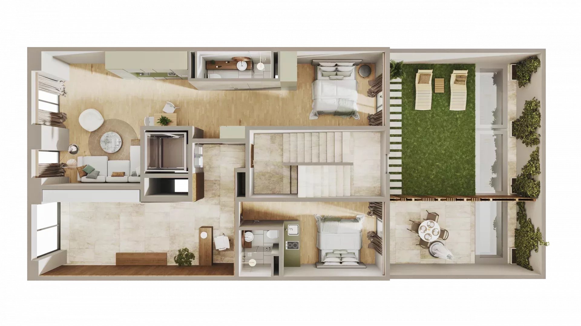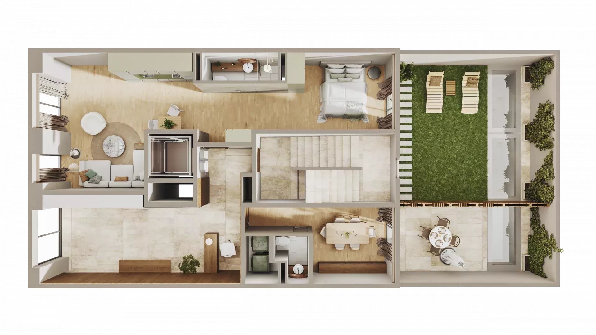 In addition, the crown jewel of the building: a spacious duplex penthouse of 175 m² with terrace and private pool, available for €1,898,810.