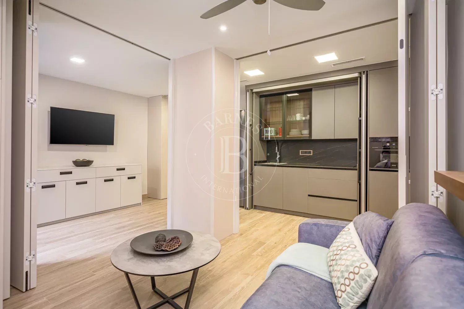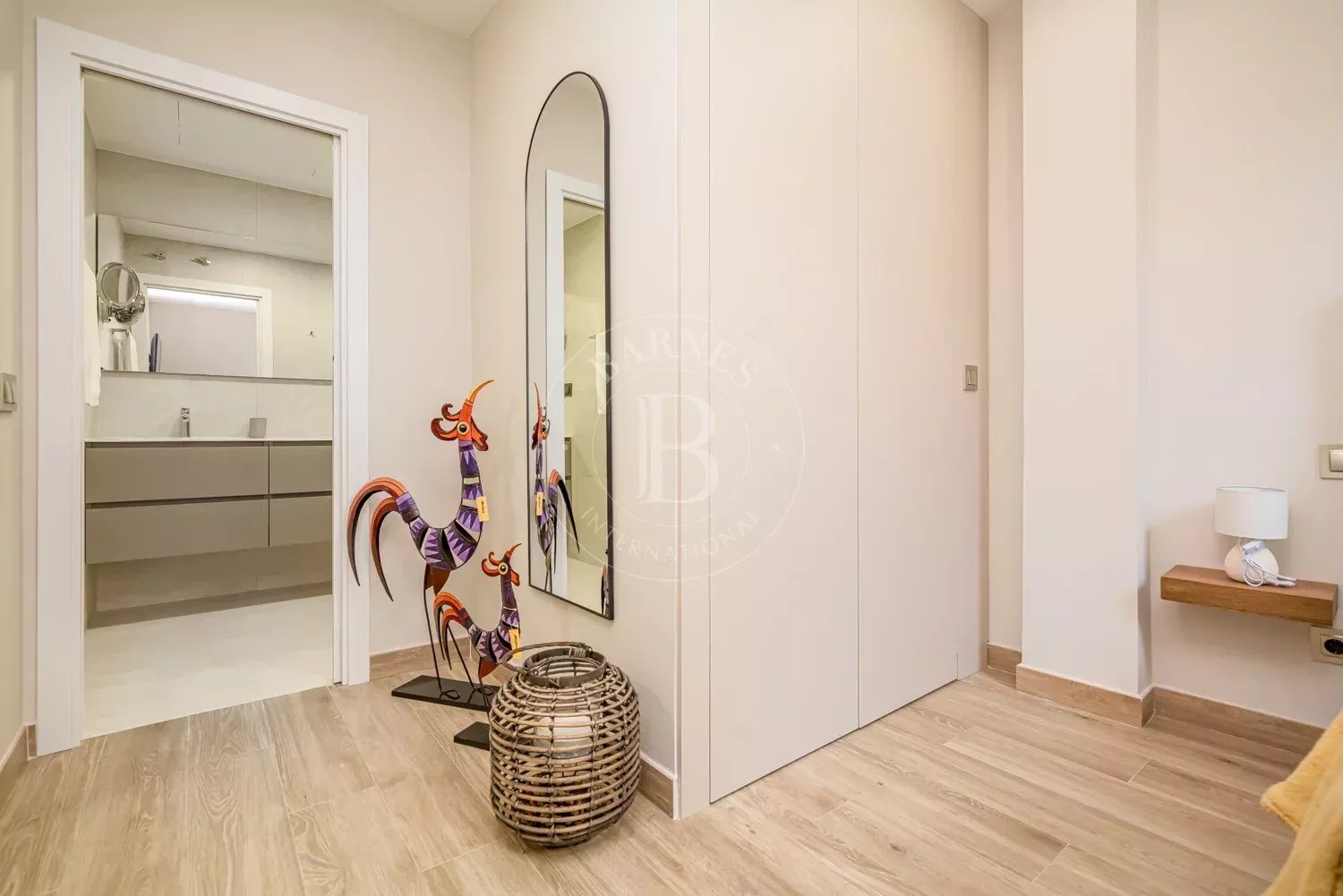 The master bedroom is a private oasis of calm and comfort. Its layout encourages rest and well-being, with clearly defined areas for sleeping, storage, and everyday living. The property is further complemented by two full bathrooms, a rare feature for an apartment of this size, adding significant value both for daily comfort and for hosting guests.