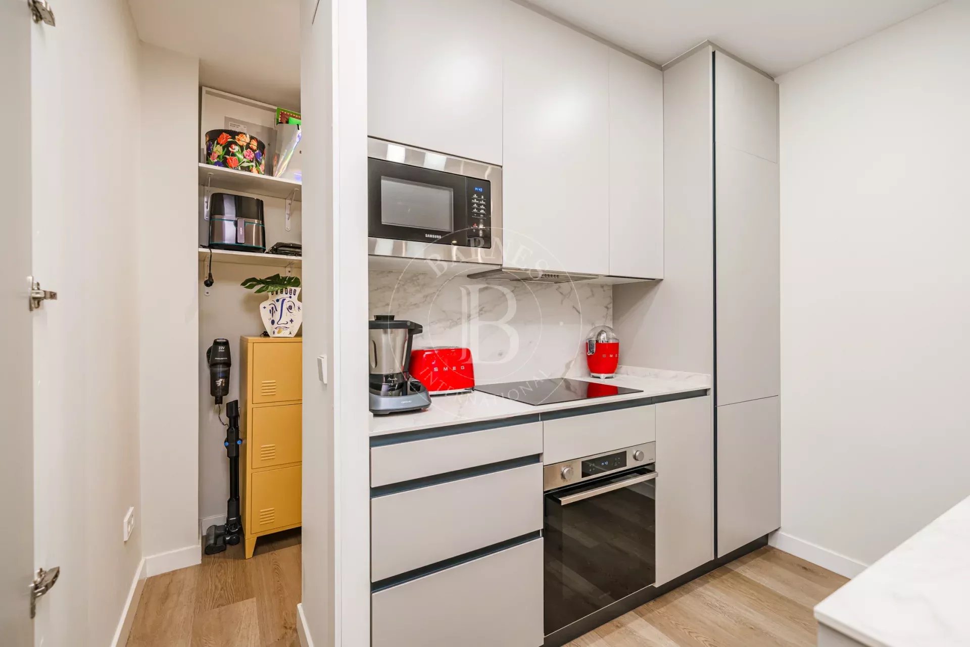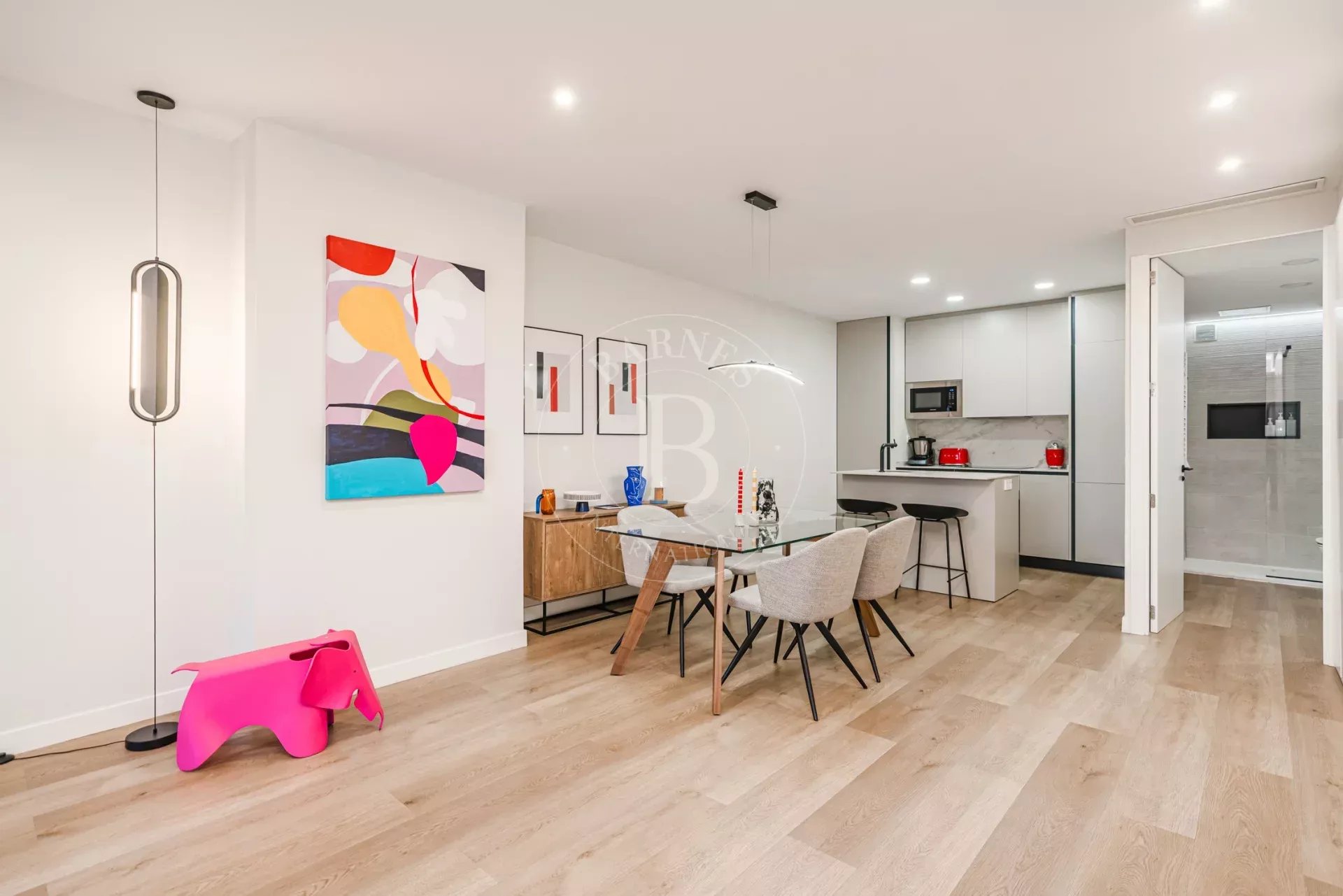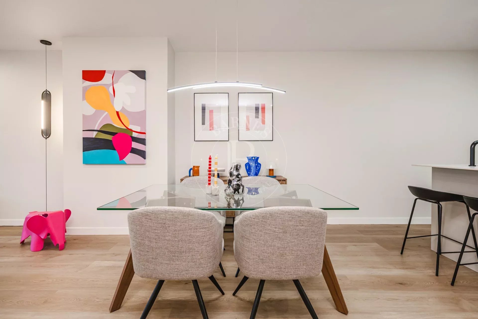 Recently fully renovated to a high standard, the property has been designed to optimize every space without compromising on aesthetics. The spacious and fluid living-dining area becomes the heart of the home, featuring an excellent layout. The open-plan kitchen is fully equipped with high-end appliances, offering both visual and functional continuity.