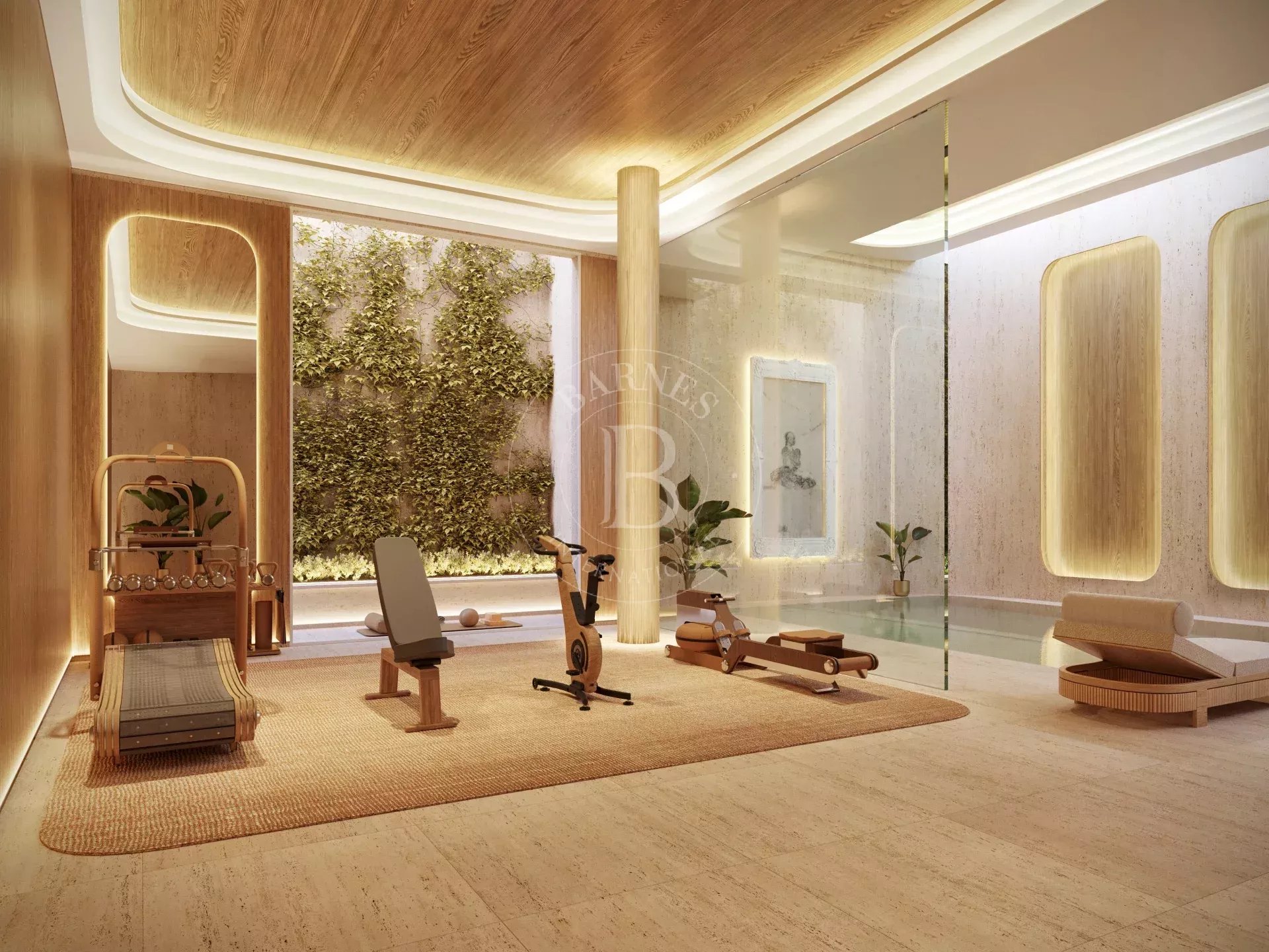 Highlights include its impressive 100 m² living room with garden views, a designer kitchen equipped with high-end appliances, and leisure and wellness areas, which include an outdoor pool surrounded by greenery, a large indoor pool with natural light, a gym, a wellness area, a cinema room, and a wine cellar. The property is completed by a solarium, outdoor dining and relaxation areas, an outdoor fireplace, a designer elevator, and an underground garage with a private elevator that can accommodate up to eight vehicles. All of this is integrated into a meticulously landscaped setting, where water and vegetation provide privacy, serenity, and an exceptional residential experience.