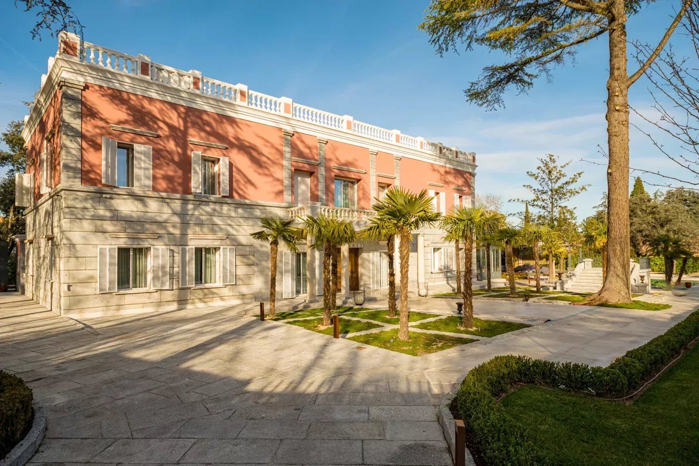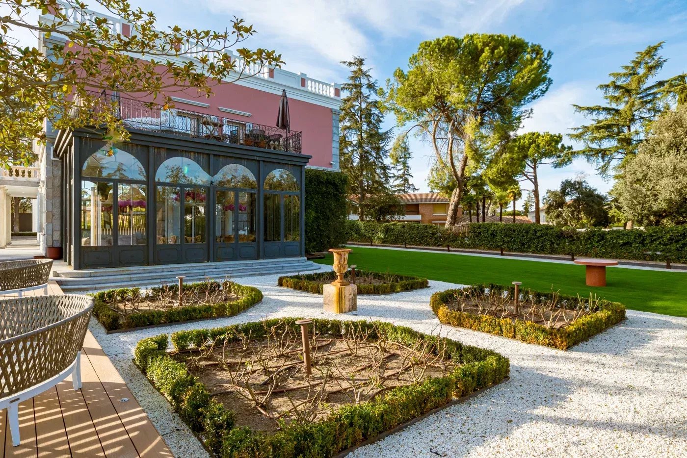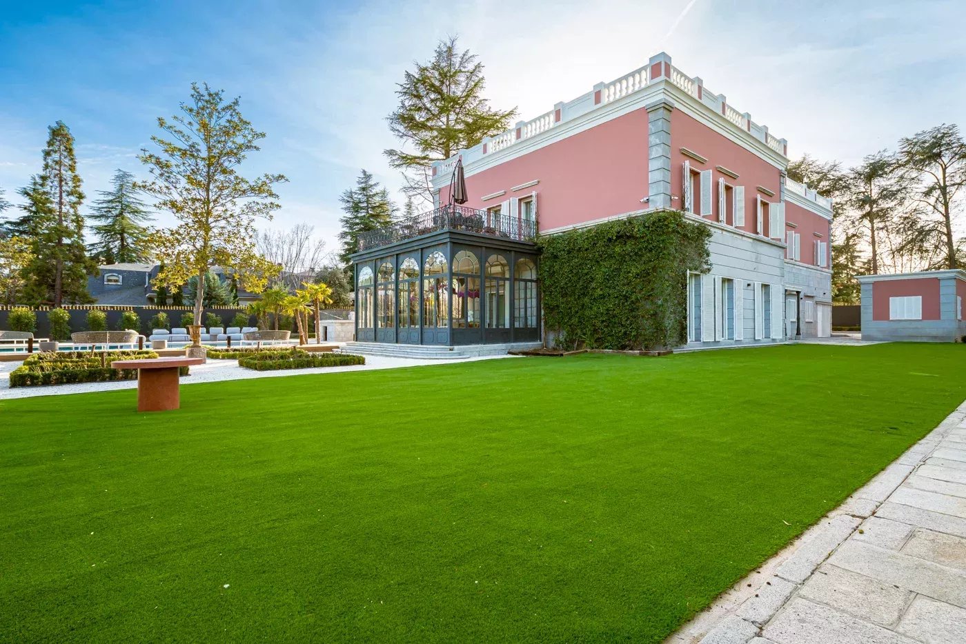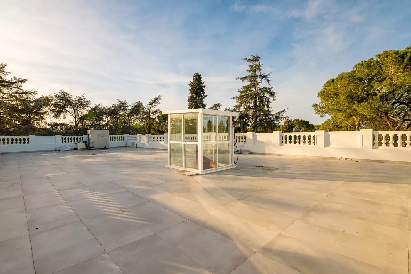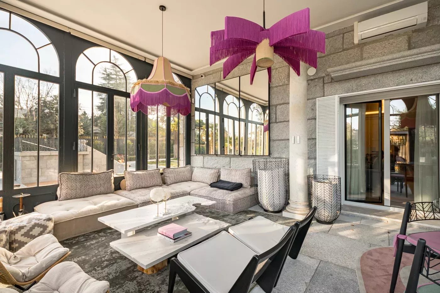 This exclusive home blends historical elements rescued from a former palace on Paseo de la Castellana with a contemporary luxury aesthetic. It offers total privacy, surrounded by a beautifully landscaped garden enclosed by an iconic original wrought-iron fence.