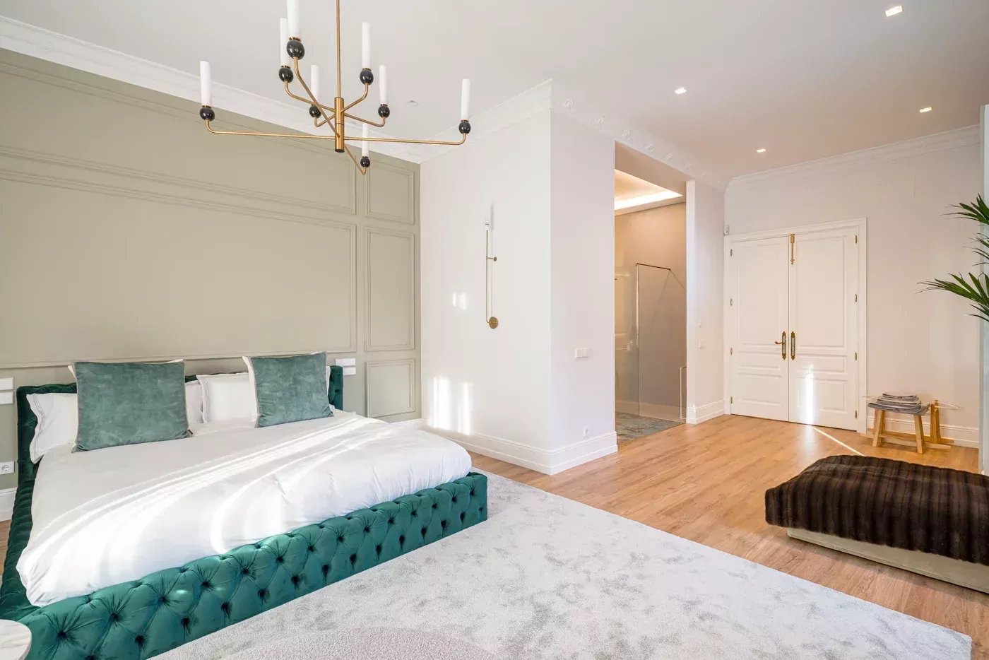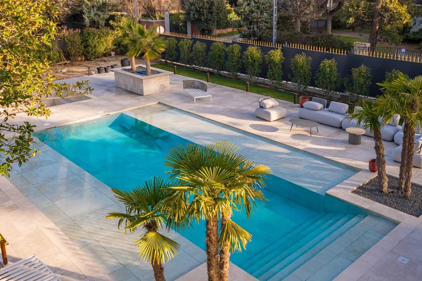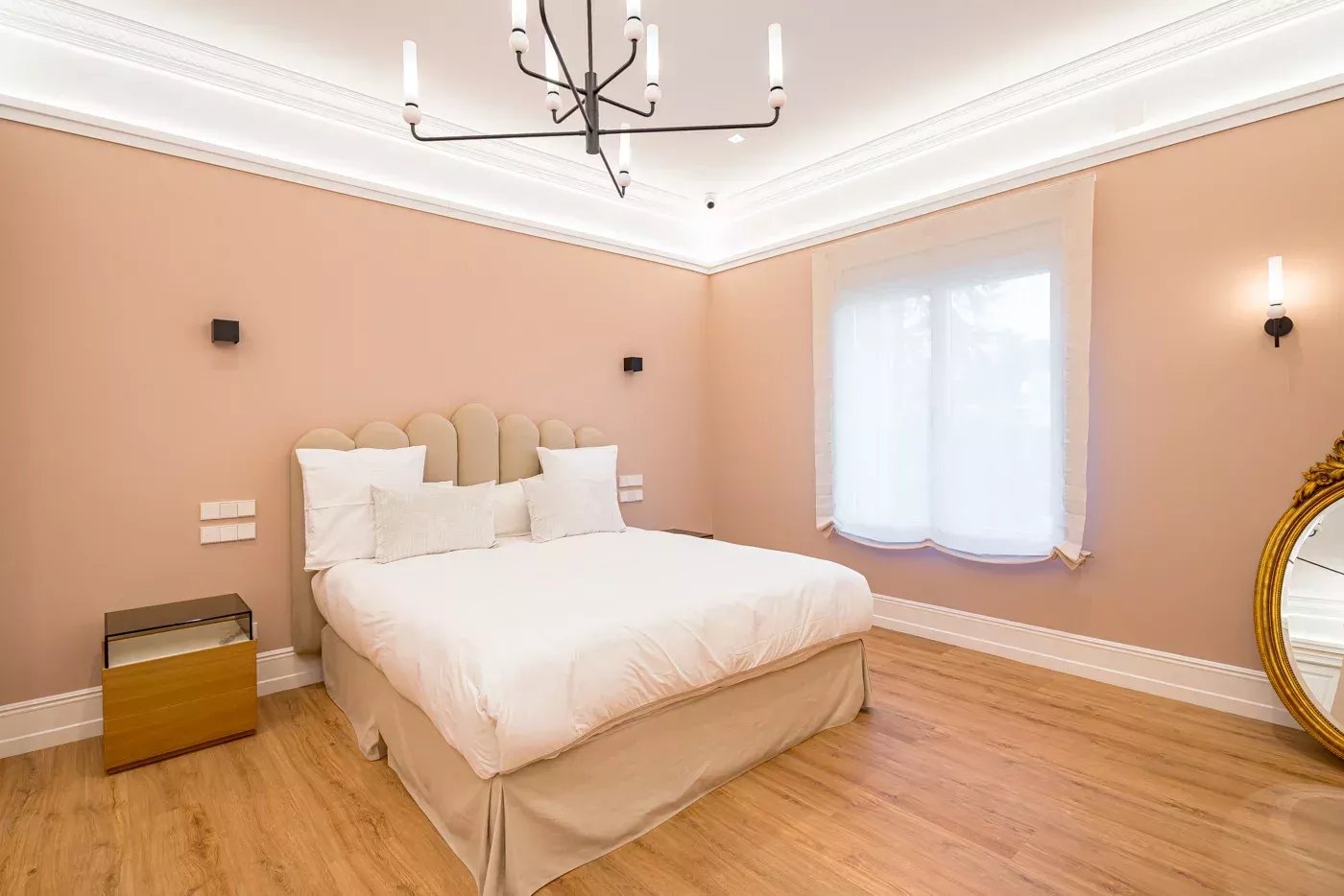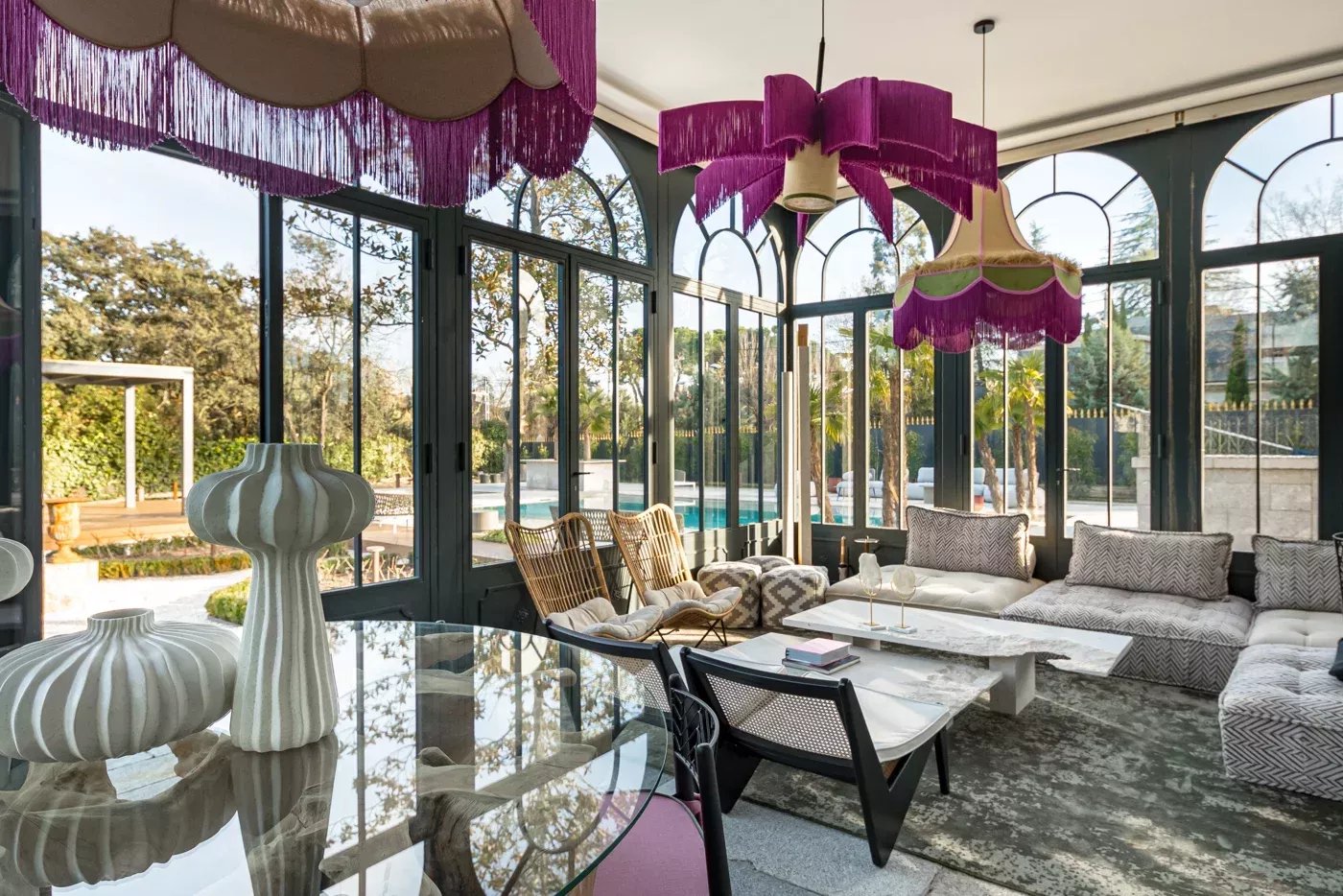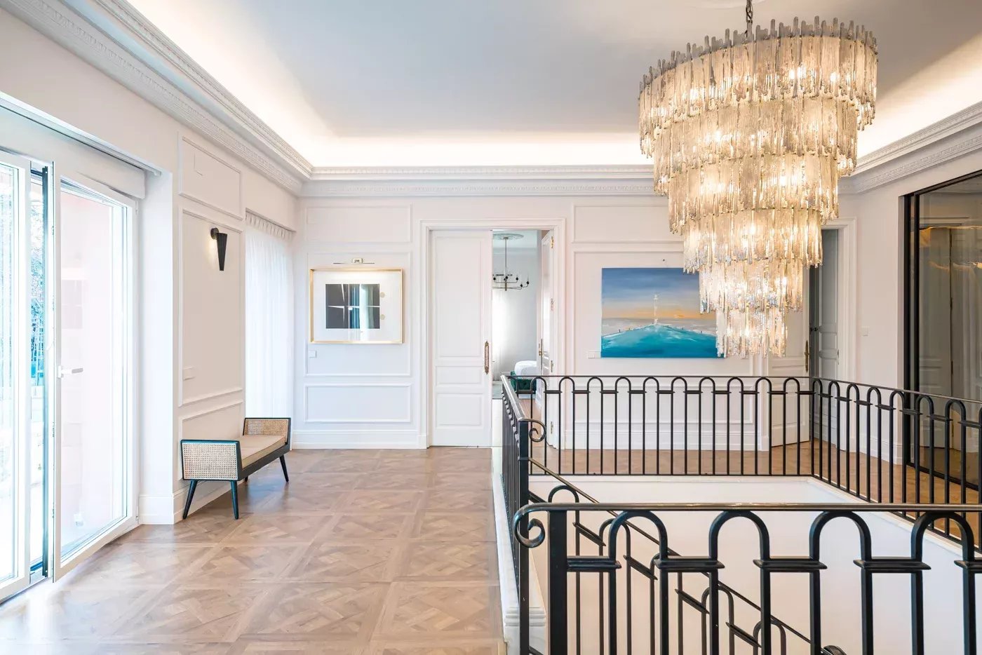 This exclusive home blends historical elements rescued from a former palace on Paseo de la Castellana with a contemporary luxury aesthetic. It offers total privacy, surrounded by a beautifully landscaped garden enclosed by an iconic original wrought-iron fence.