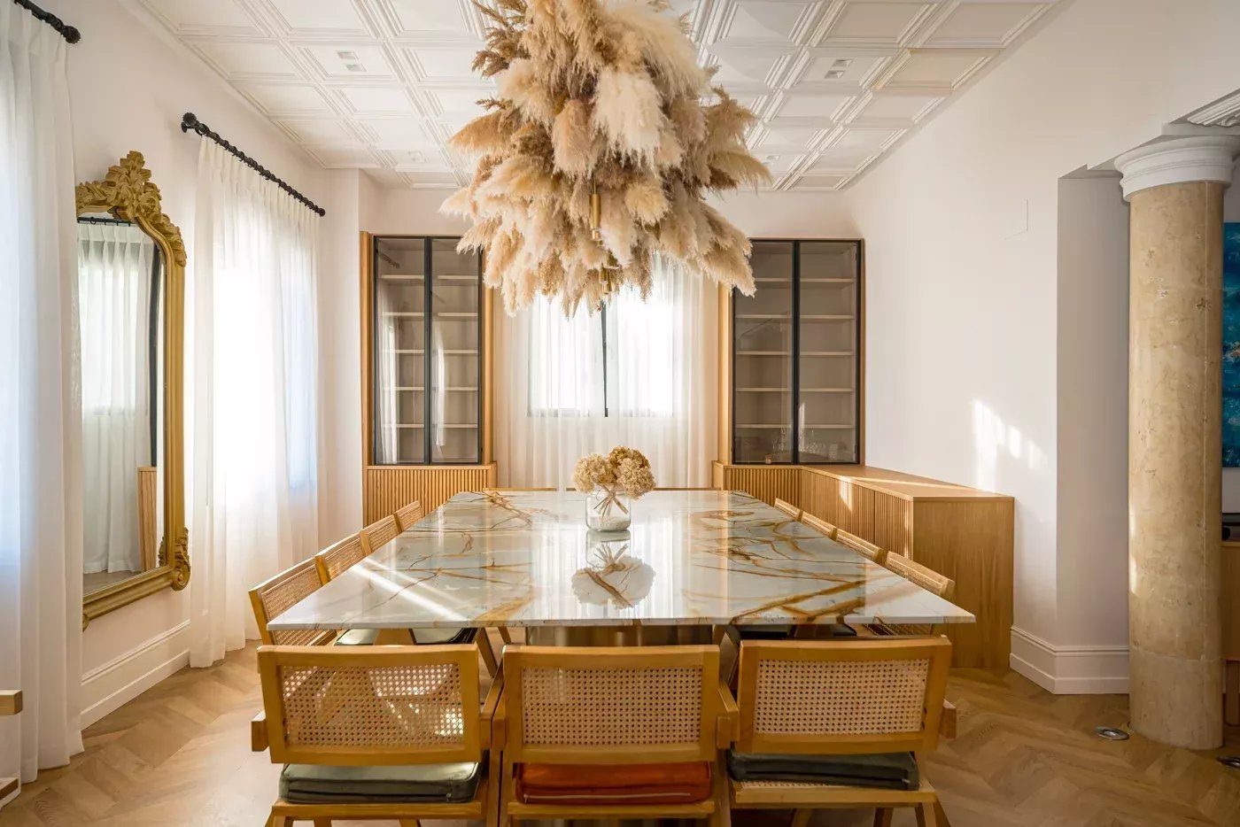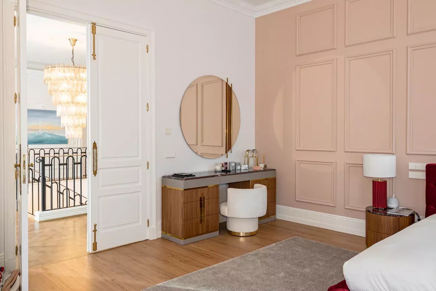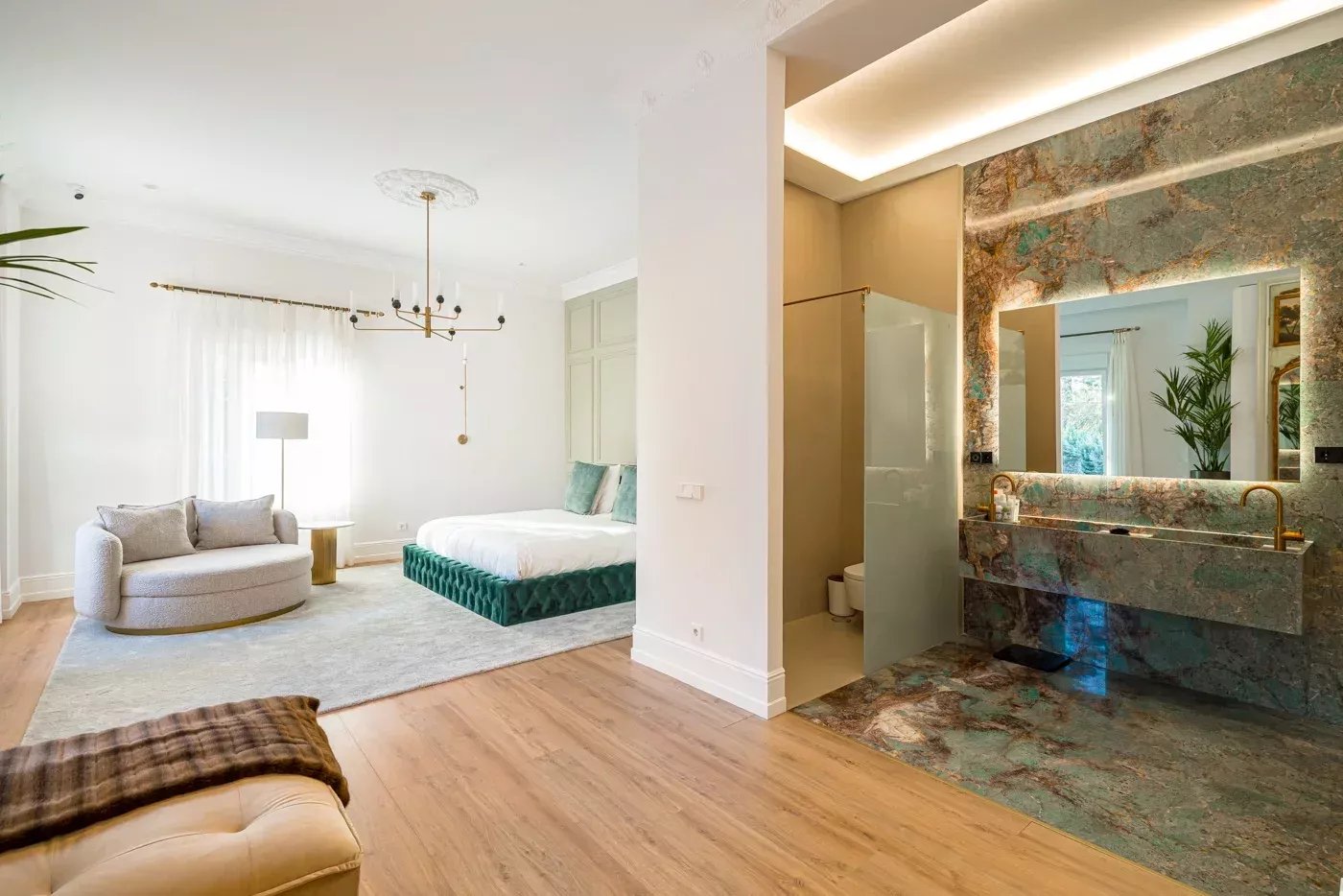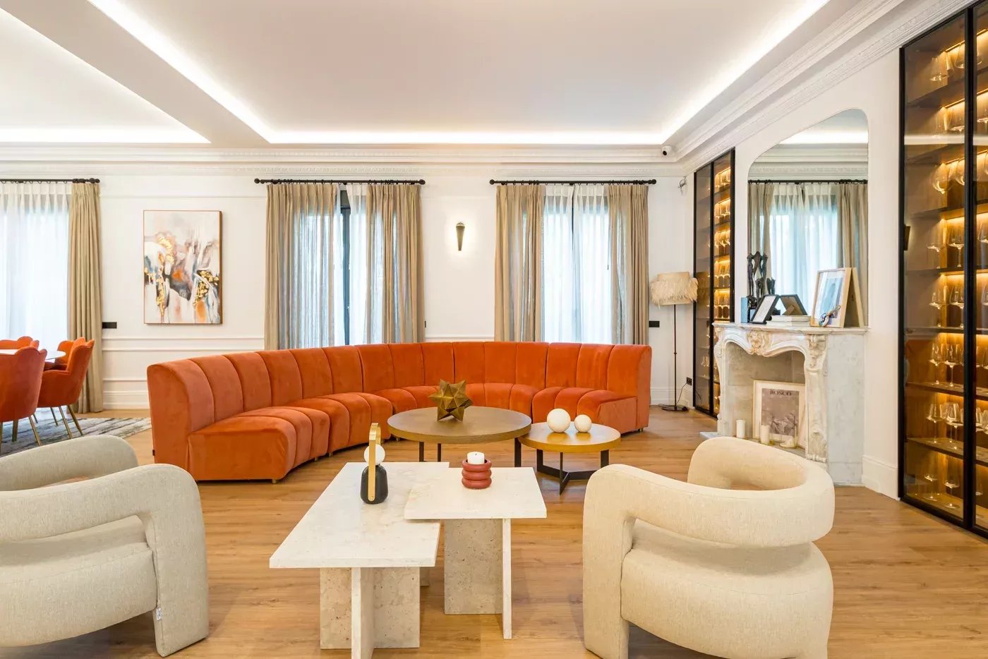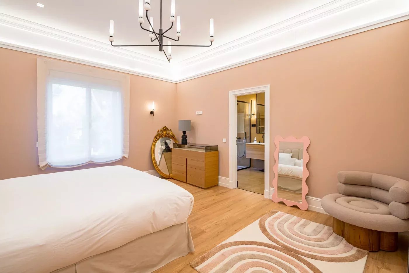 This exclusive home blends historical elements rescued from a former palace on Paseo de la Castellana with a contemporary luxury aesthetic. It offers total privacy, surrounded by a beautifully landscaped garden enclosed by an iconic original wrought-iron fence.