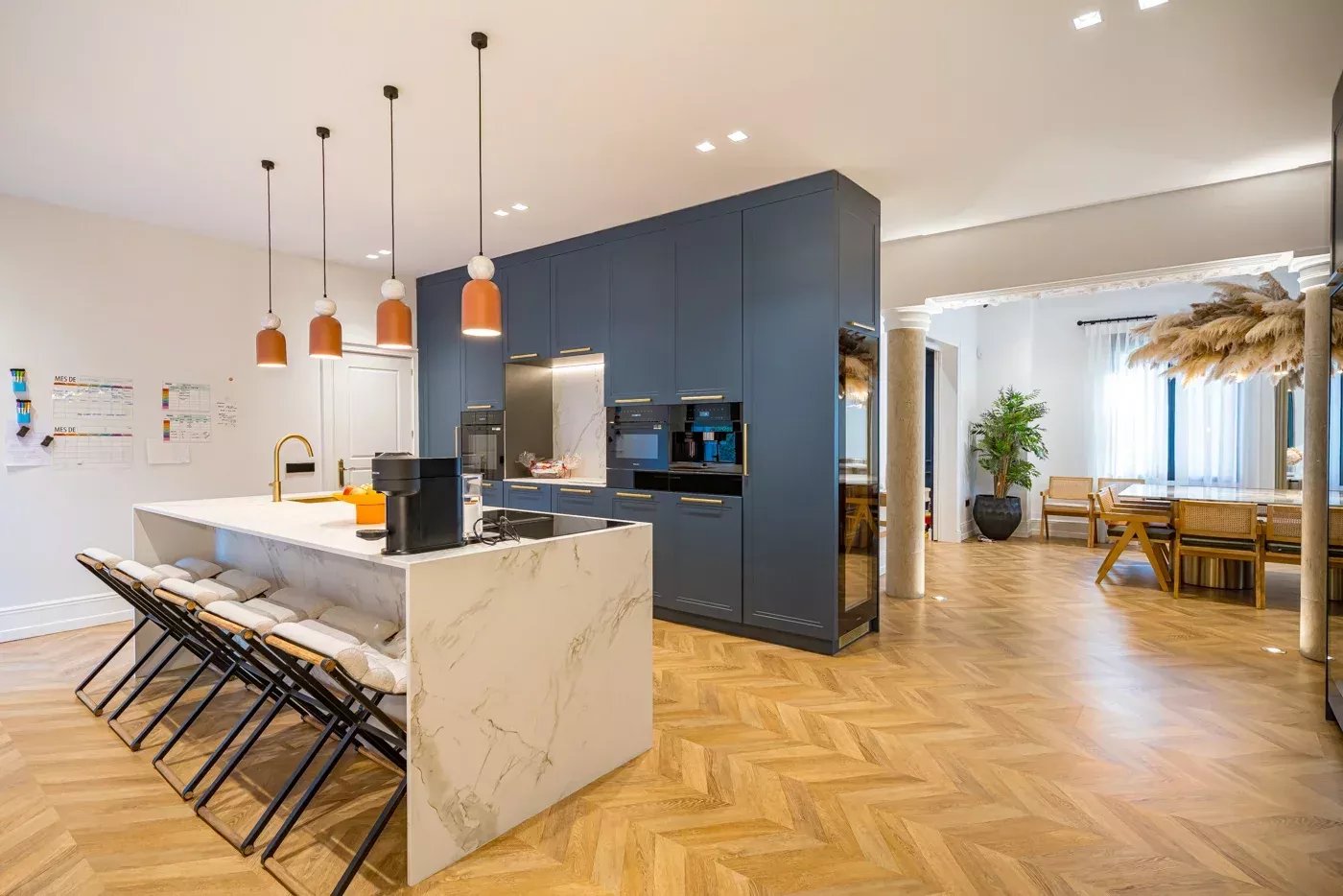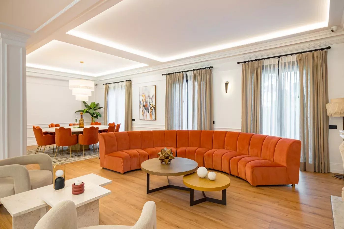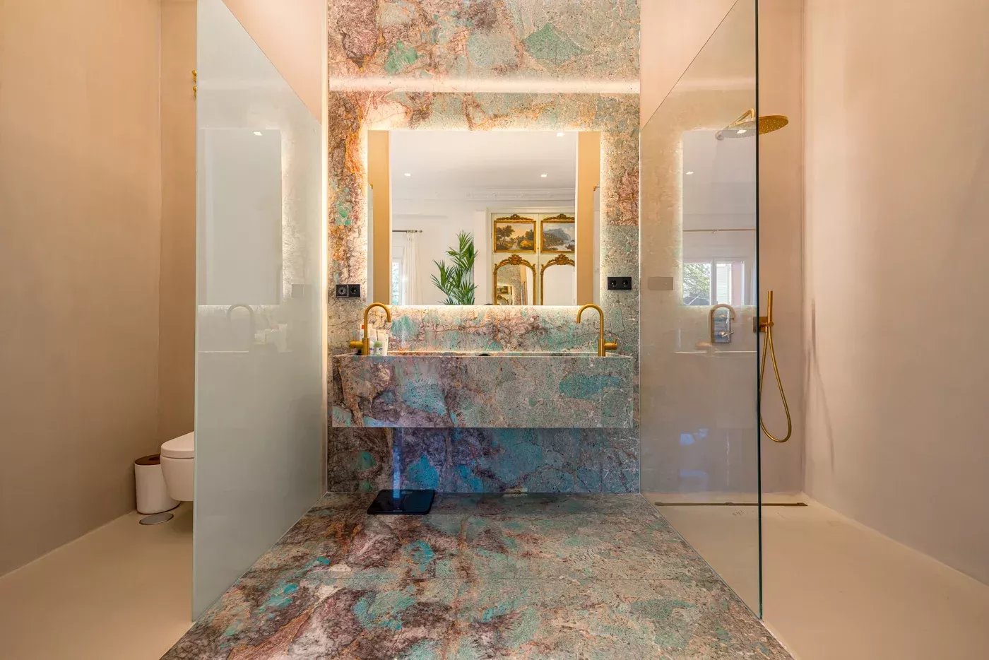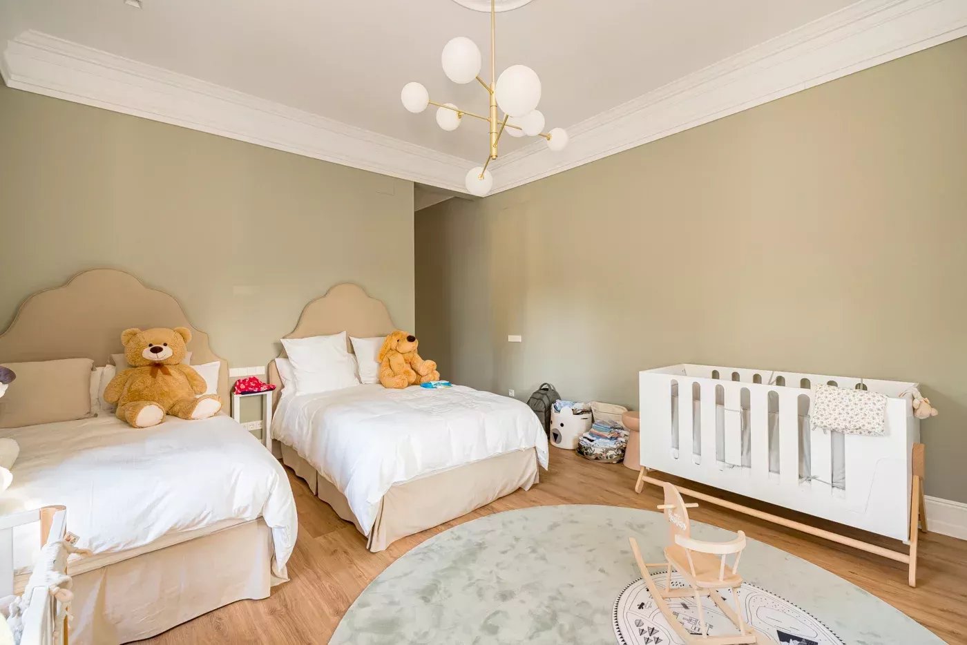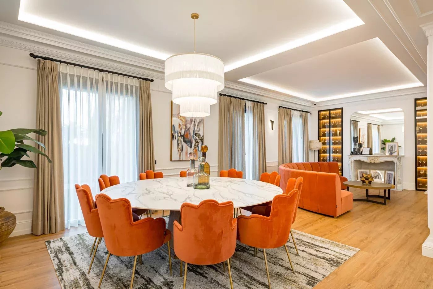 This exclusive home blends historical elements rescued from a former palace on Paseo de la Castellana with a contemporary luxury aesthetic. It offers total privacy, surrounded by a beautifully landscaped garden enclosed by an iconic original wrought-iron fence.